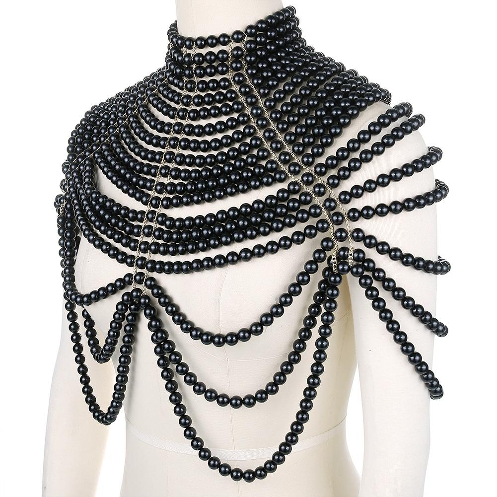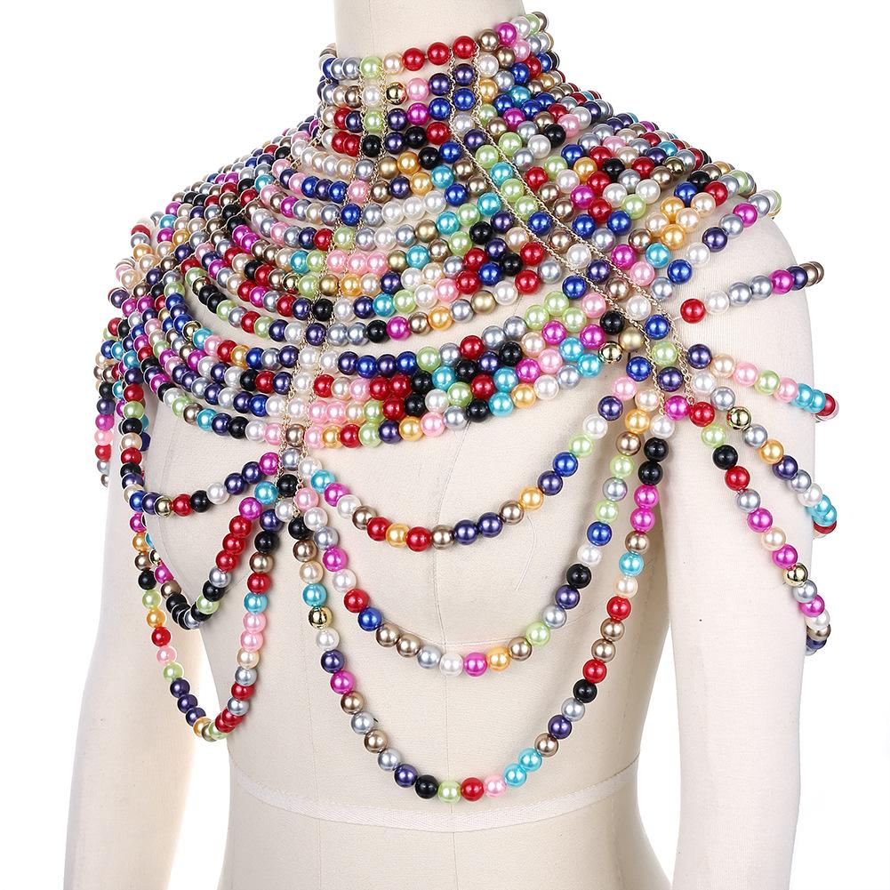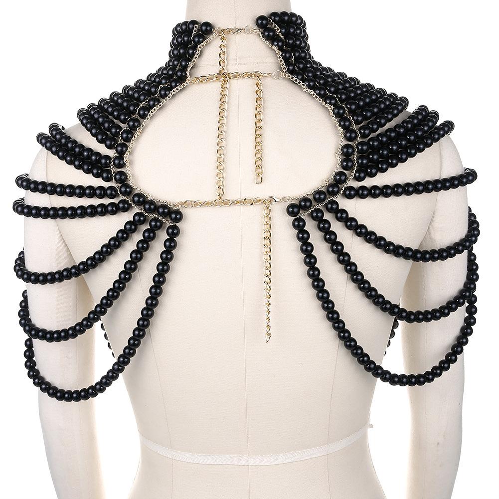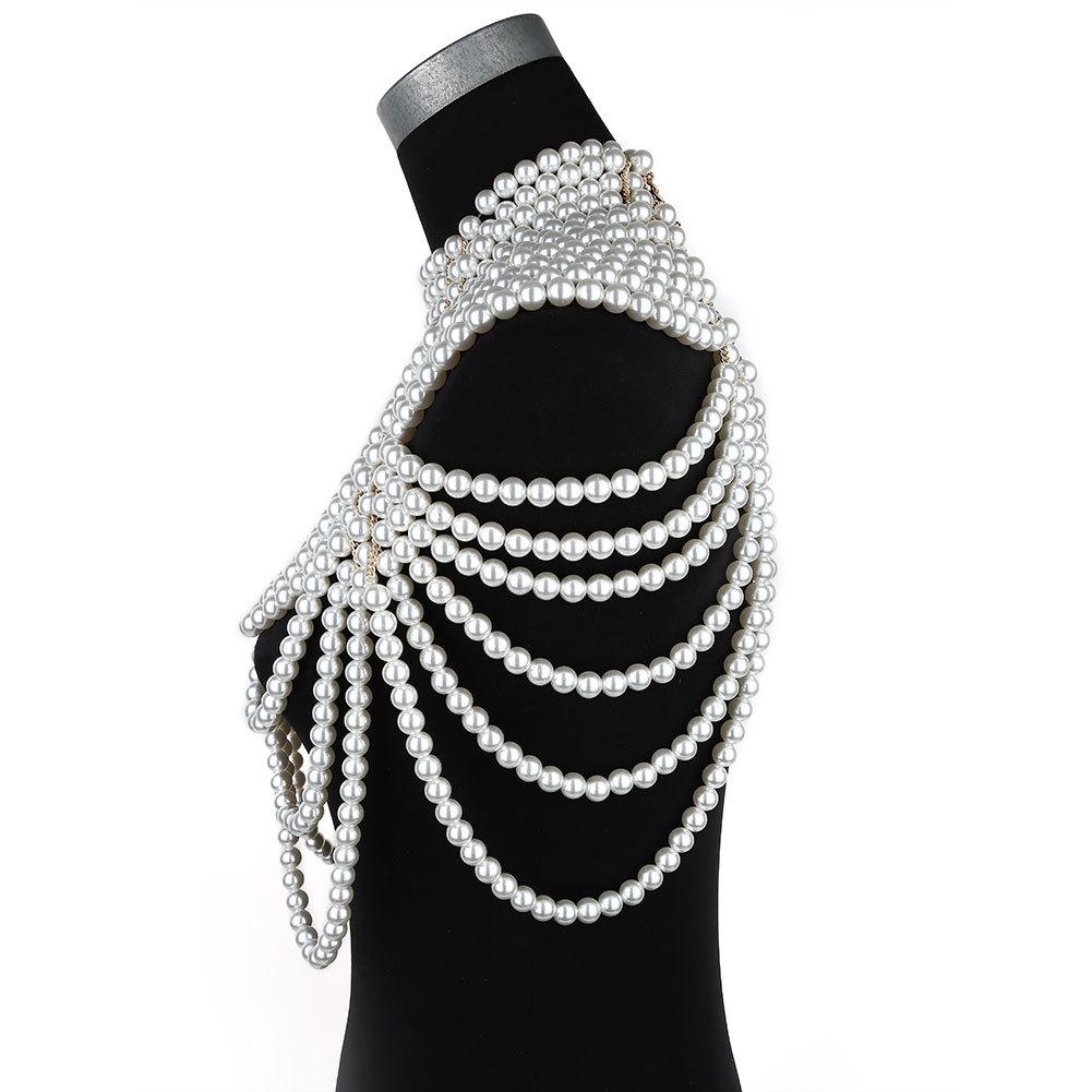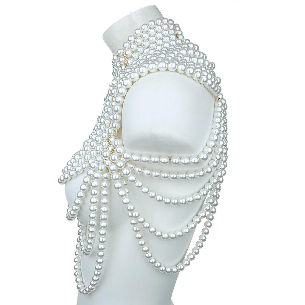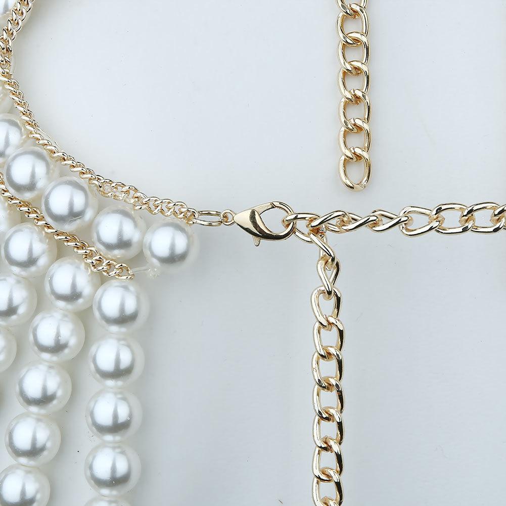 Joyería corporal tipo chal europeo y americano, cadena para el pecho de perlas estilo INS, moda femenina para fiesta, cadena de hombro de perlas, accesorios explosivos