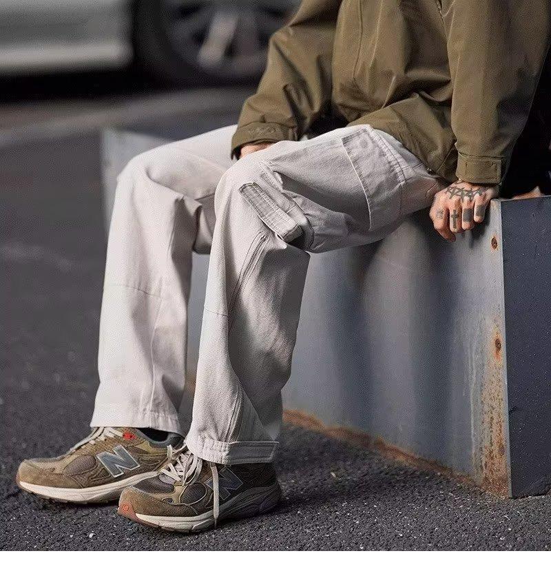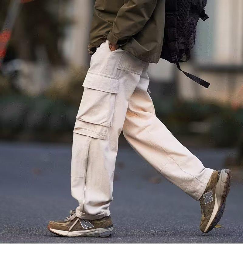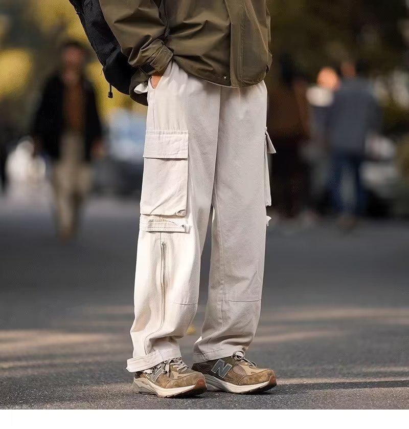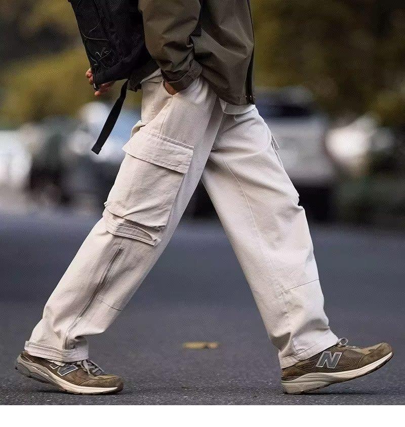 Monos multibolsillos americanos finos de primavera y otoño para parejas, pantalones deportivos casuales rectos de marca de moda holgados y combinables