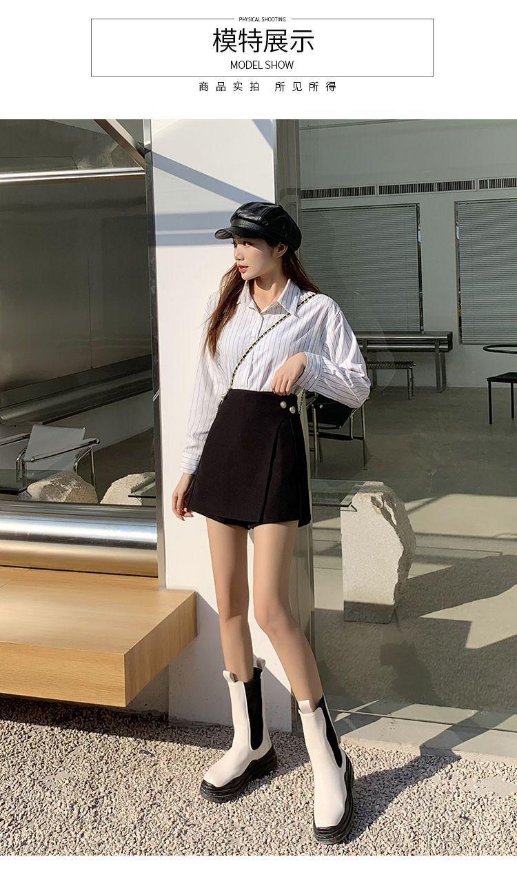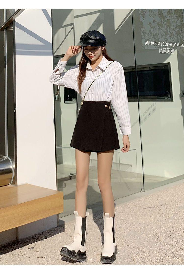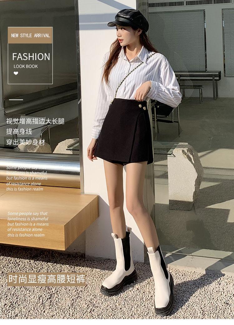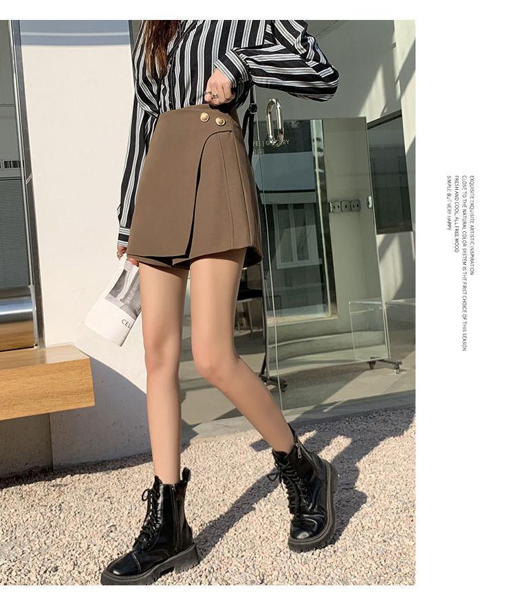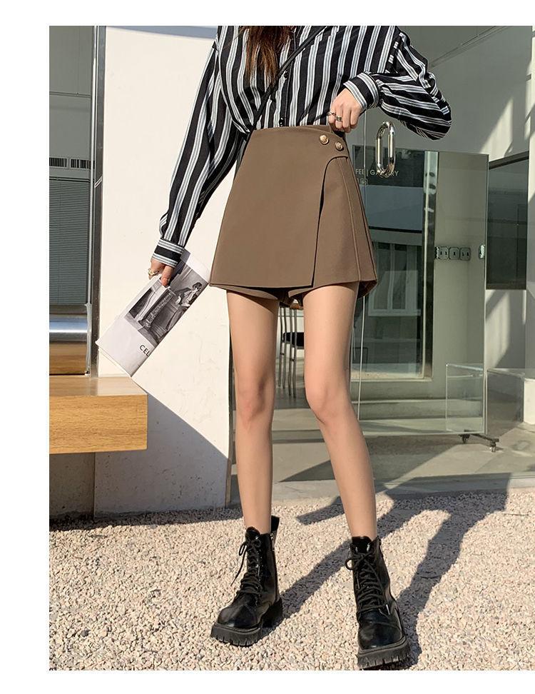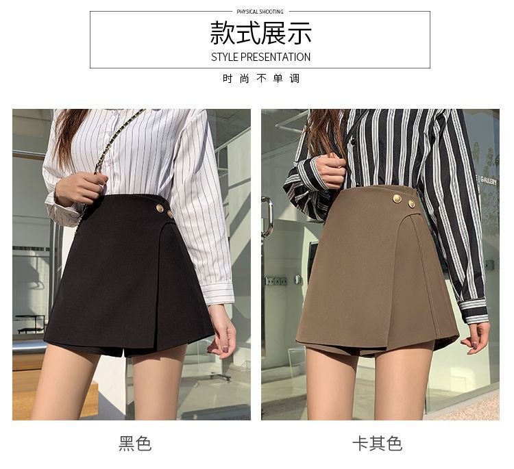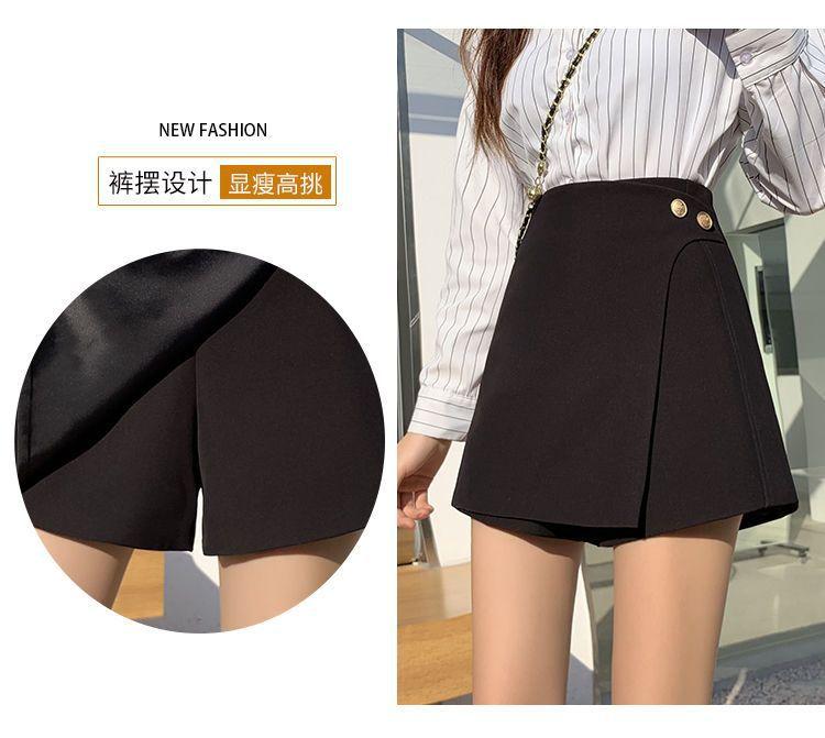Pantalones cortos de mujer para otoño e invierno 2023, estilo coreano, informales, holgados, de corte A, con pierna ancha, pantalones acampanados, traje adelgazante de cintura alta, falda corta
