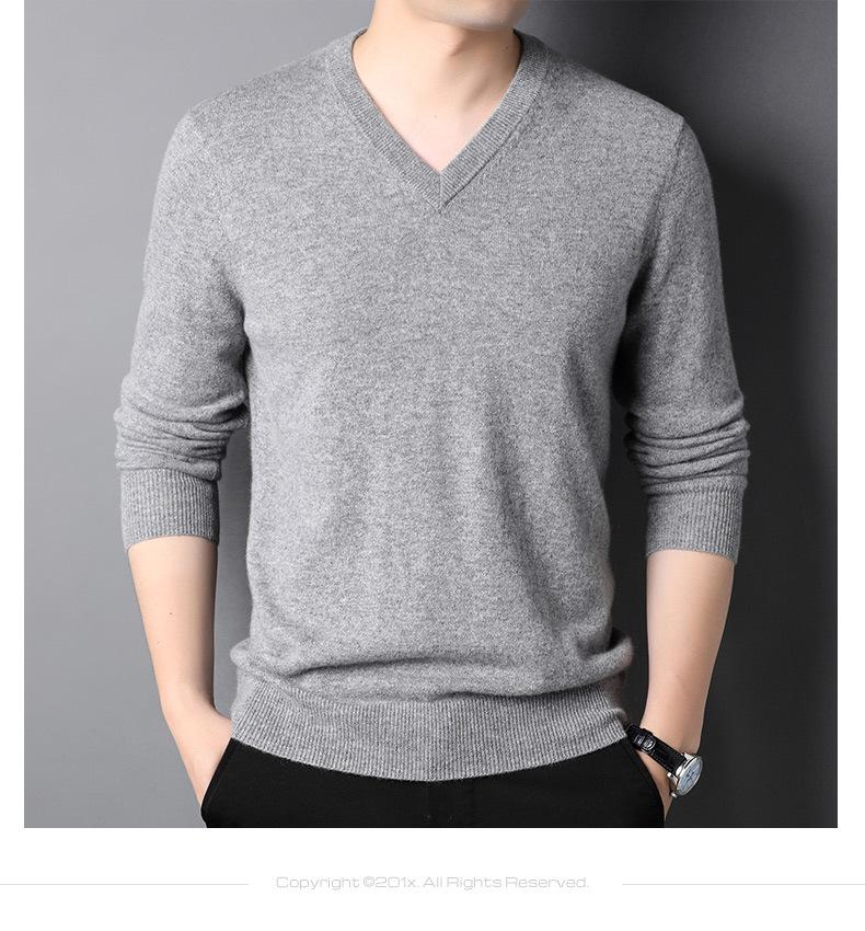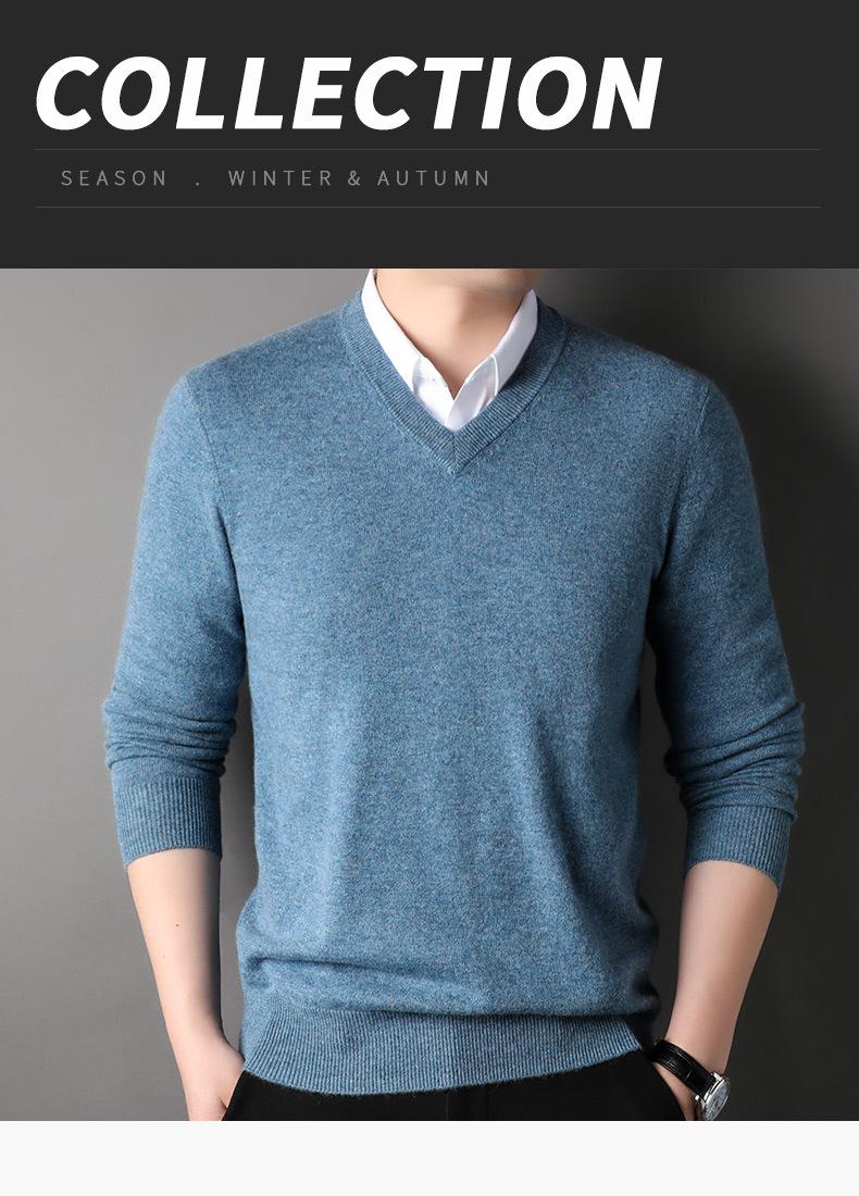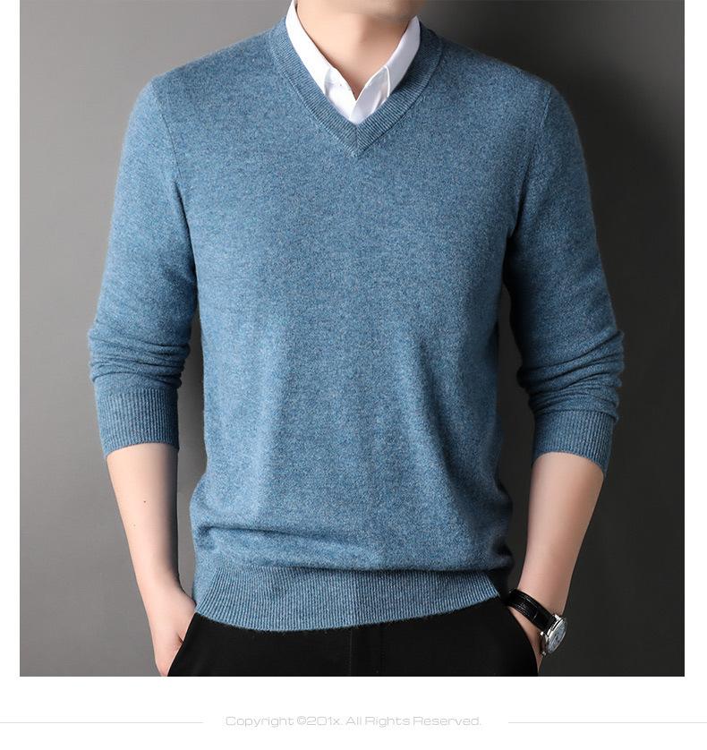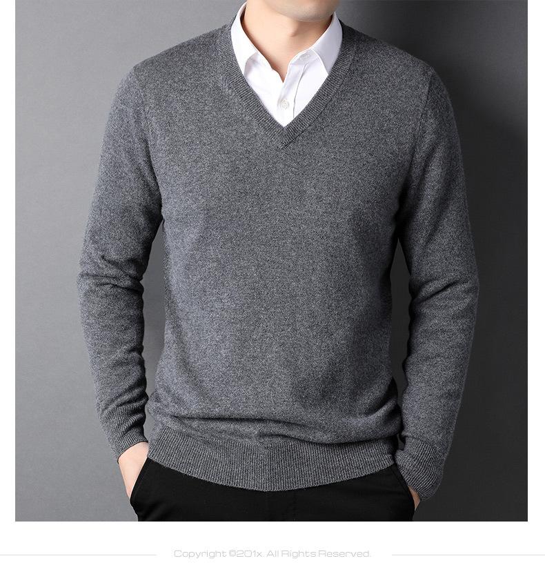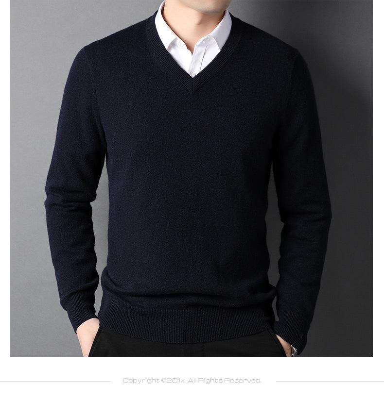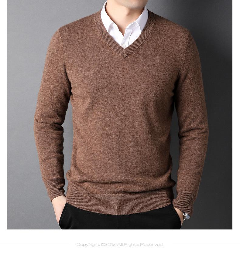 Suéter de cachemira 100% de alta gama para hombre, cuello en V, informal, cálido, de Puyuan, para otoño e invierno, parte superior gruesa que combina con todo.