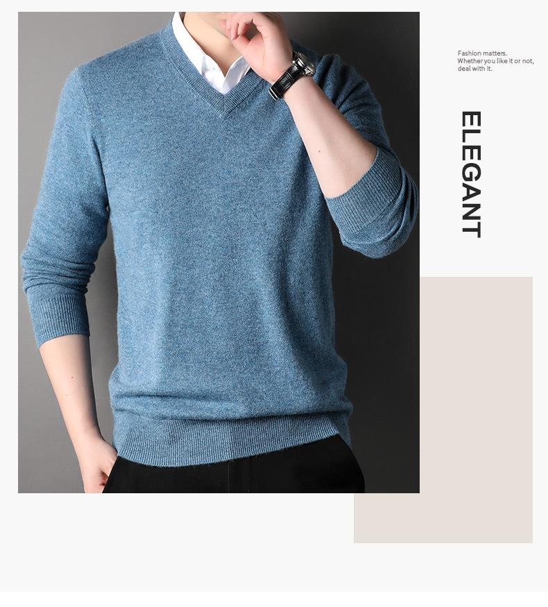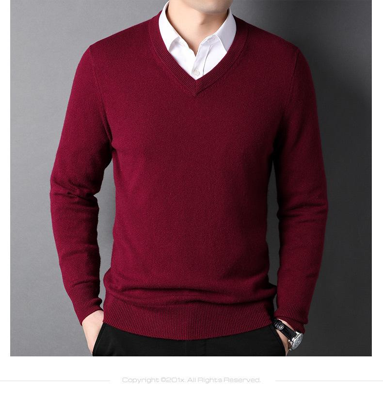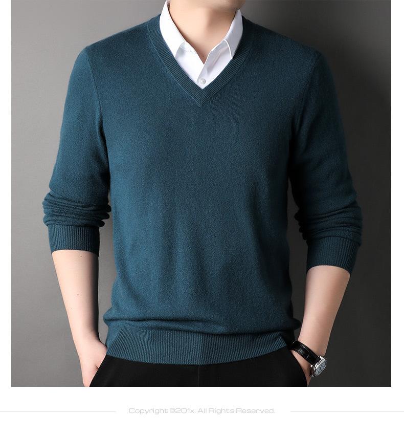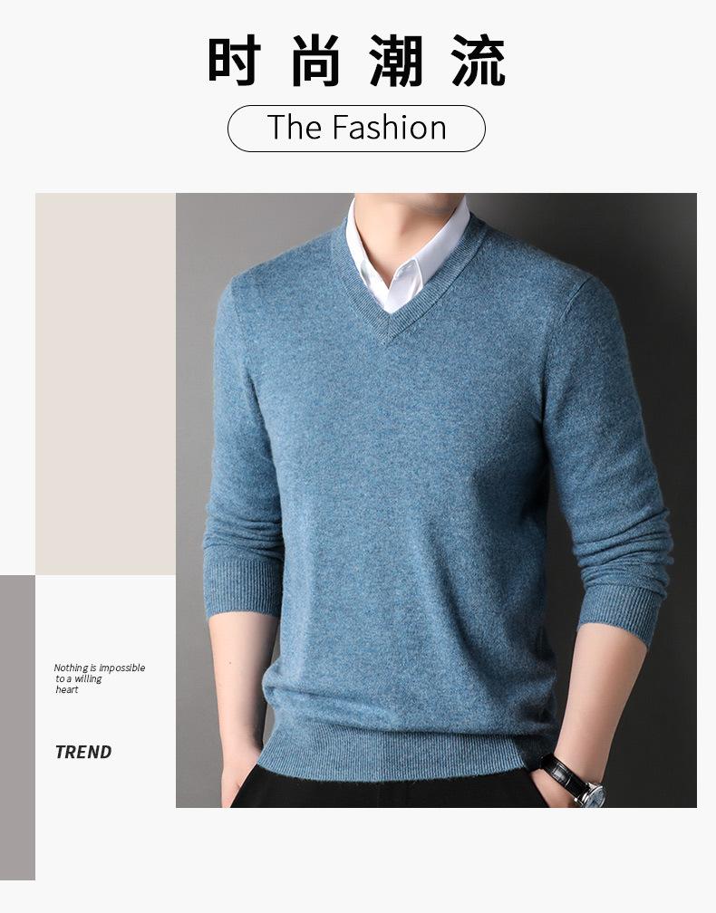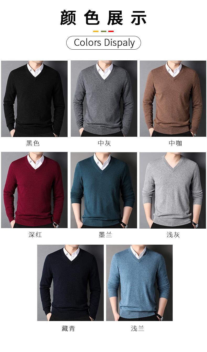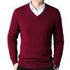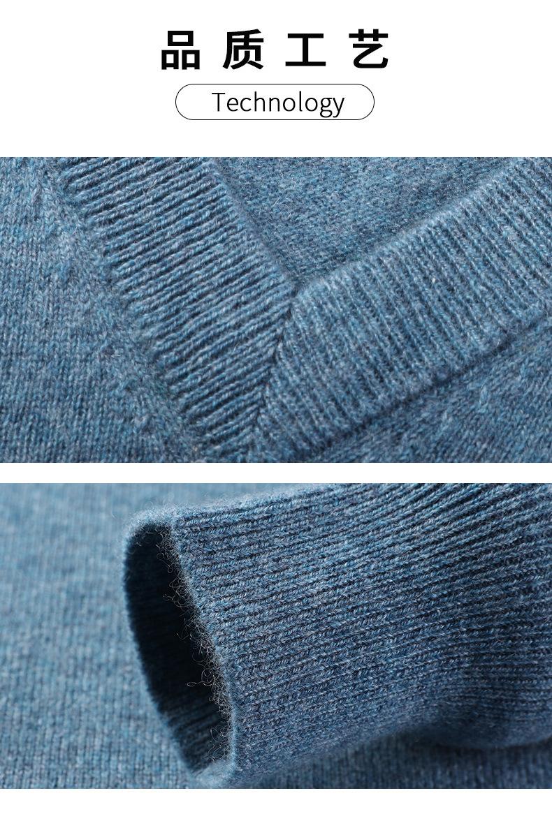 Suéter de cachemira 100% de alta gama para hombre, cuello en V, informal, cálido, de Puyuan, para otoño e invierno, parte superior gruesa que combina con todo.