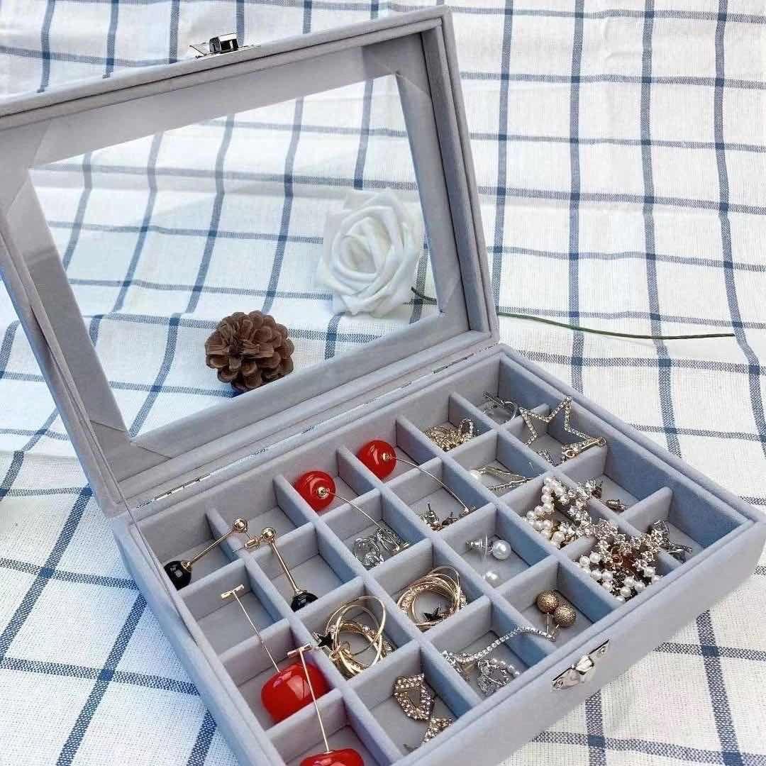Fabricante en stock caja de almacenamiento de joyas pendientes de botón collar de joyería pulsera compartimento de franela a prueba de polvo con tapa organizador de almacenamiento