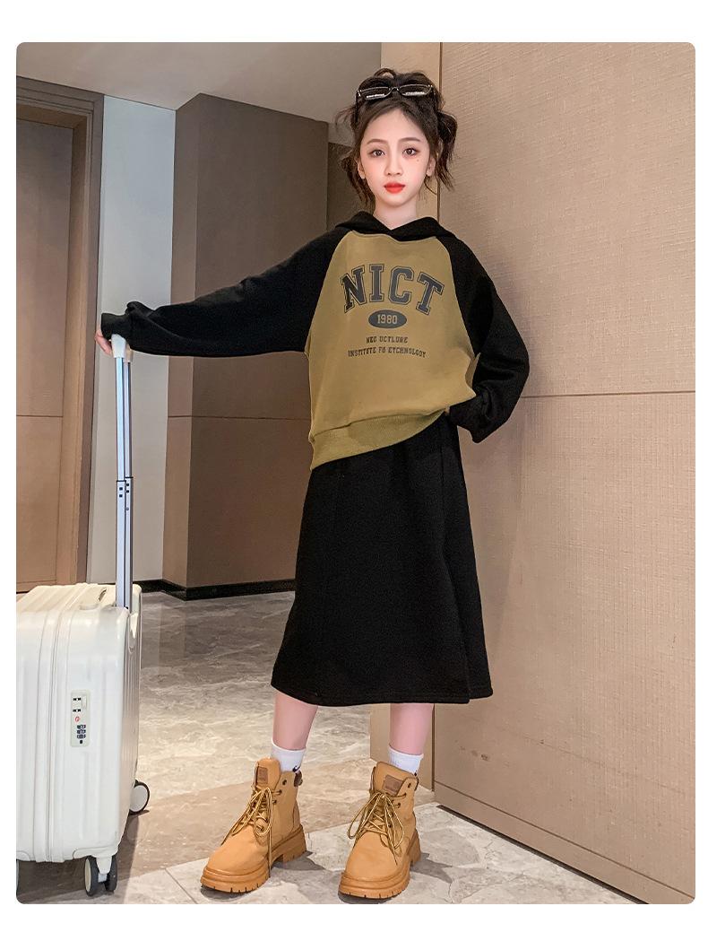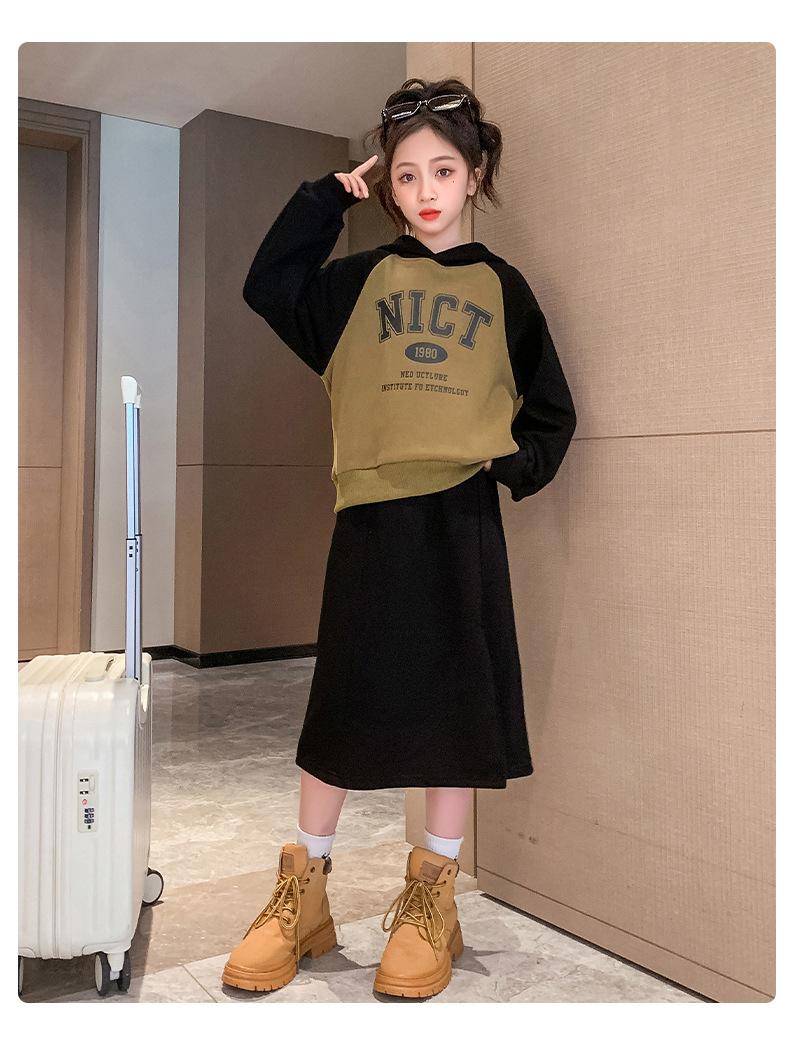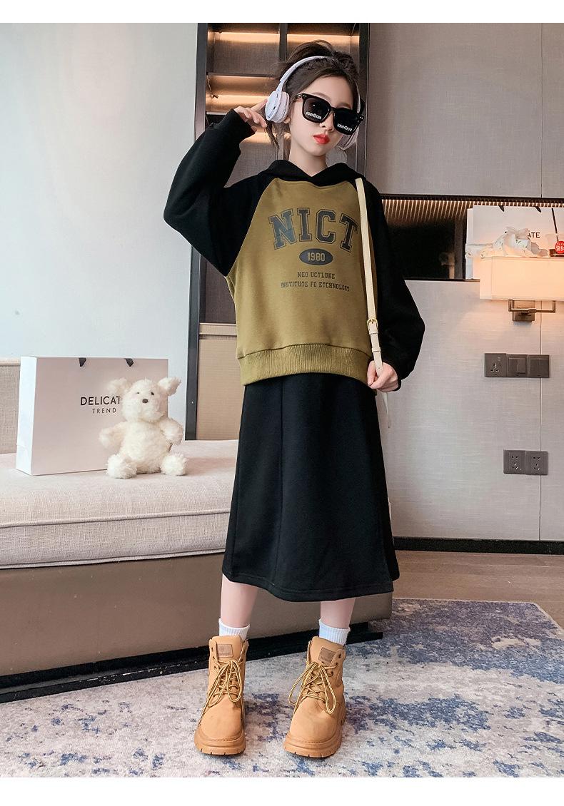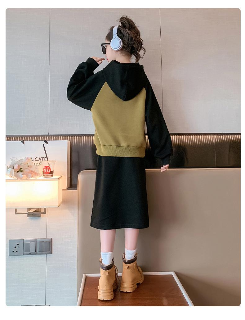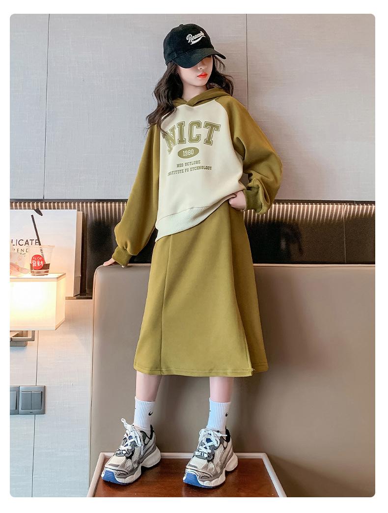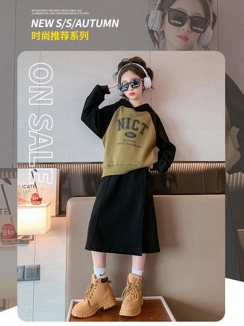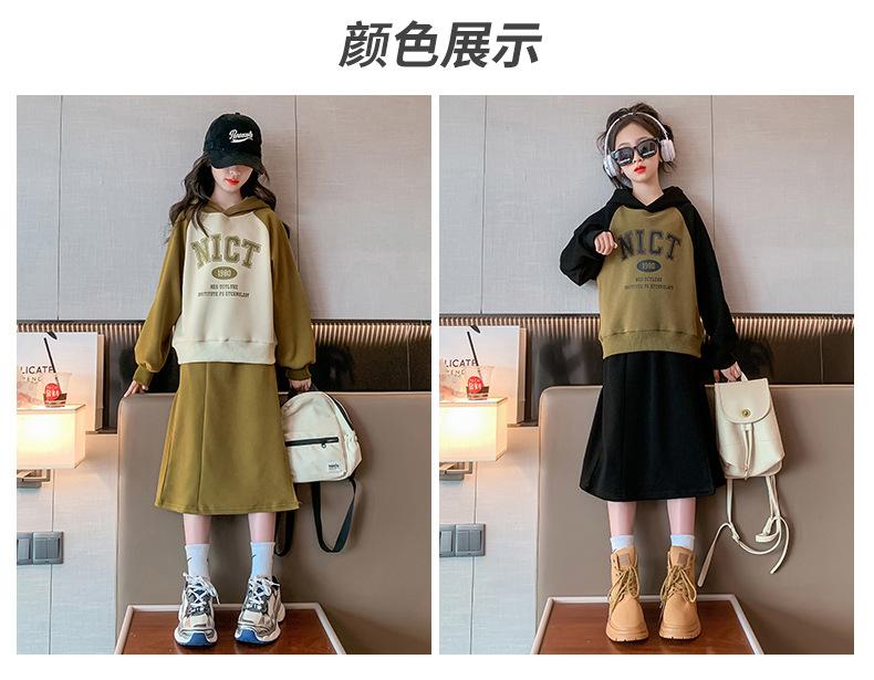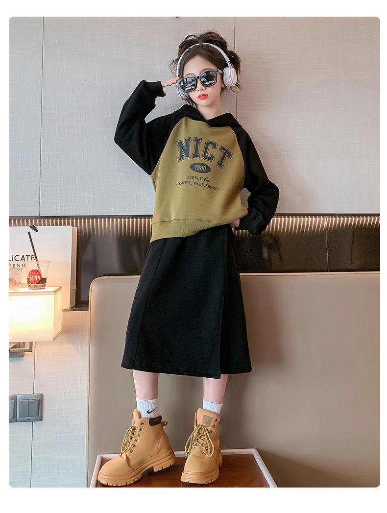 Falda de traje para niñas, primavera y otoño, nuevo traje de suéter con capucha de estilo occidental para niños, falda de manga larga de moda para niñas pequeñas