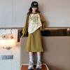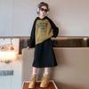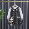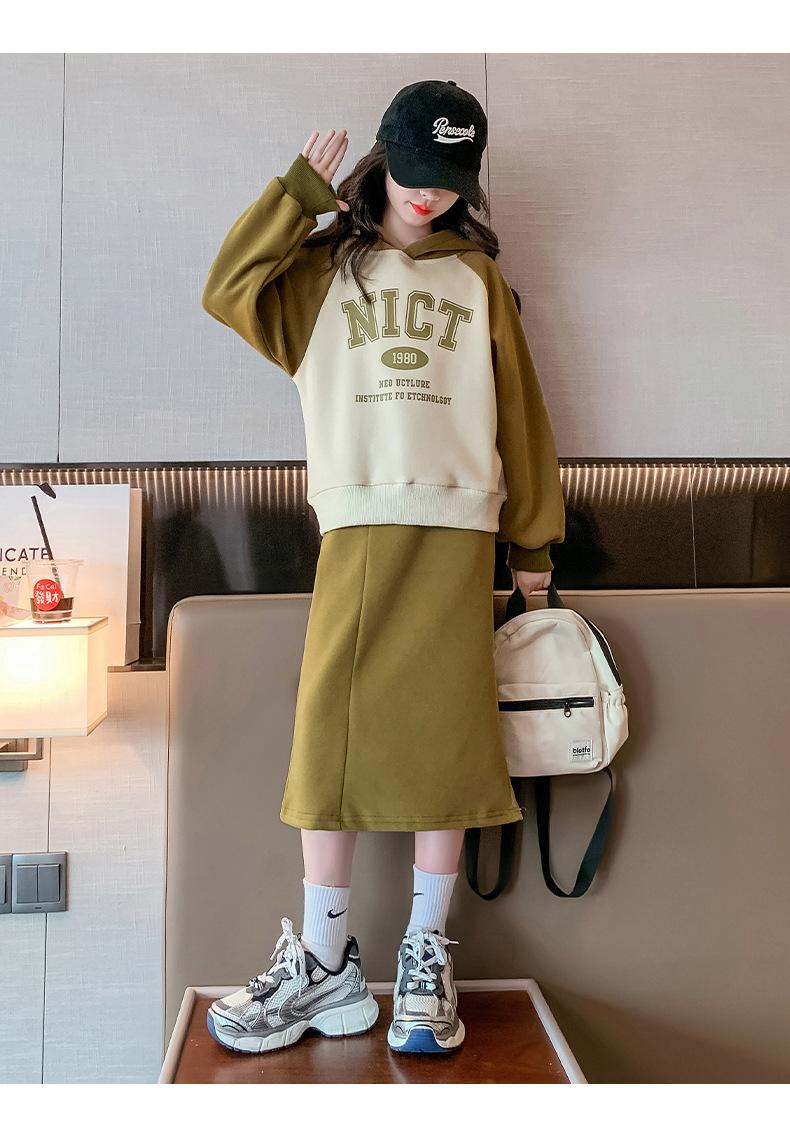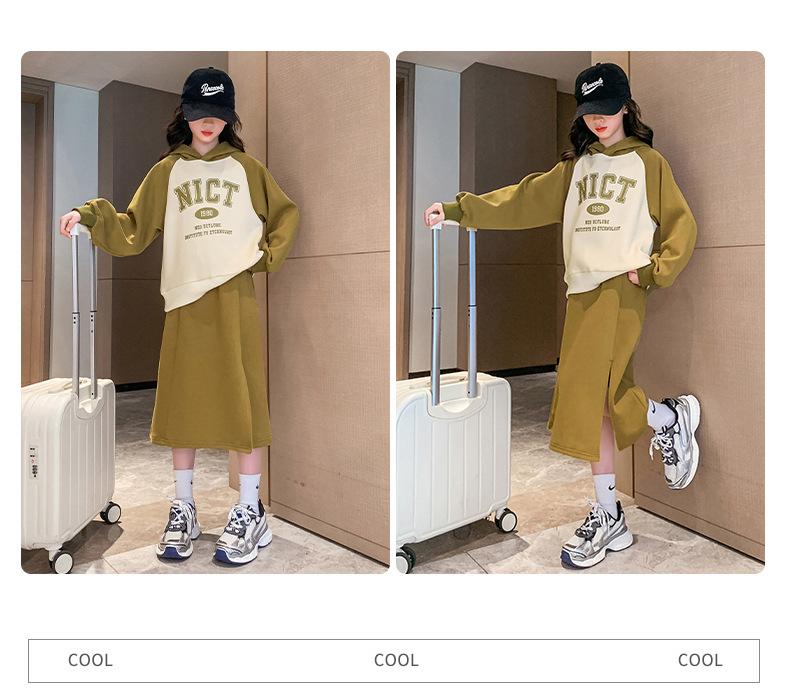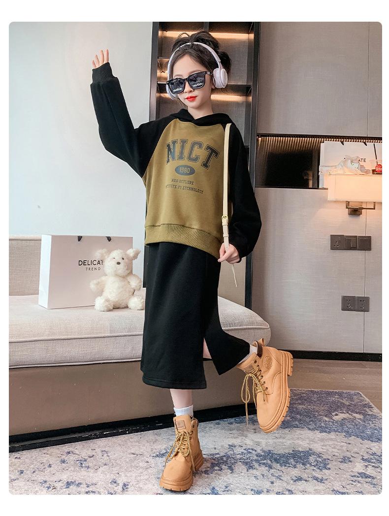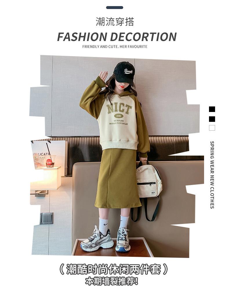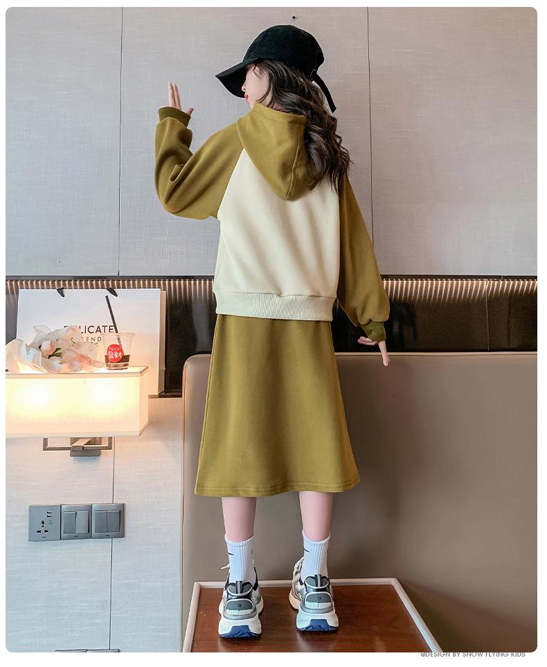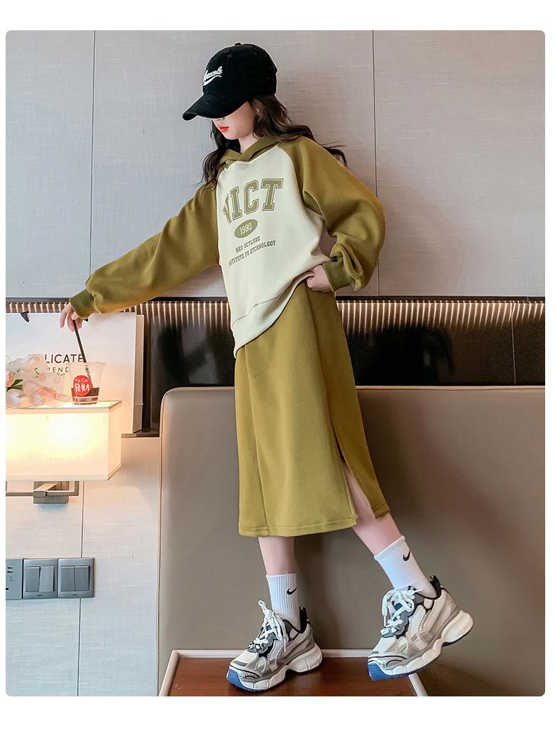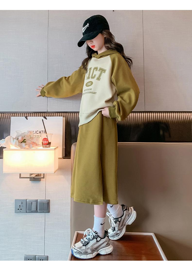 Falda de traje para niñas, primavera y otoño, nuevo traje de suéter con capucha de estilo occidental para niños, falda de manga larga de moda para niñas pequeñas