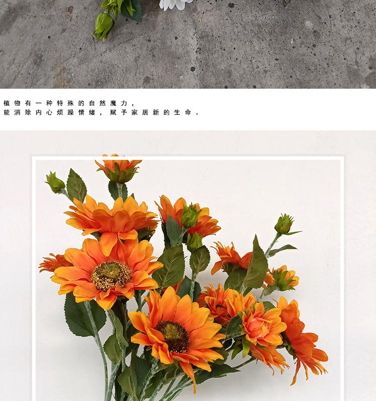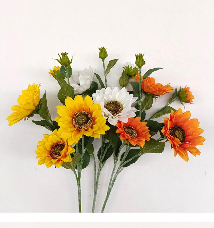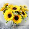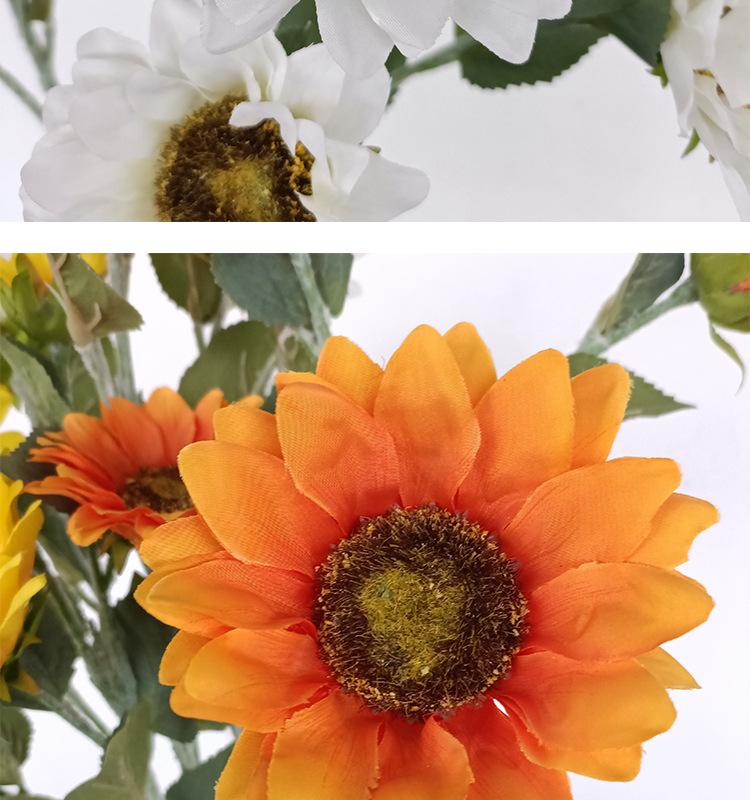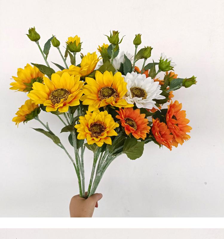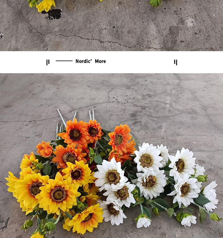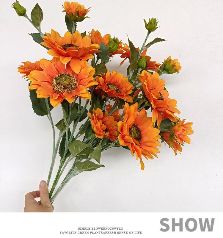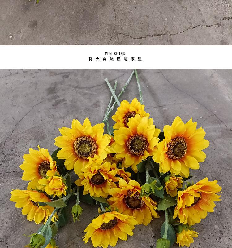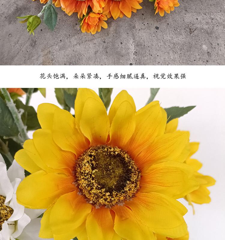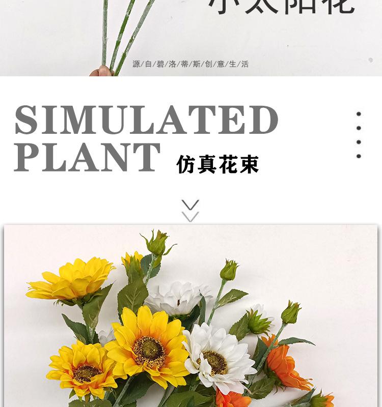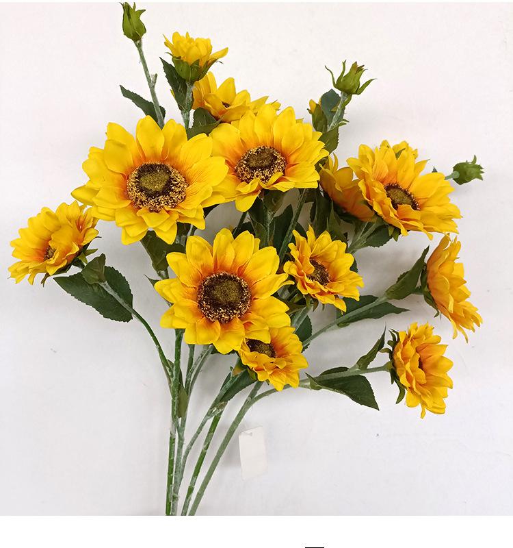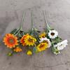 Venta al por mayor de fábrica de pequeñas flores artificiales de girasol, accesorios de fotografía para bodas, adornos de decoración de pared para el hogar