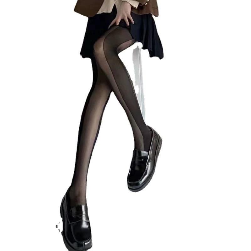 Medias de seda negra sexys con costuras negras y rayas verticales laterales de estilo japonés, tentación para primavera y verano, adelgazantes.