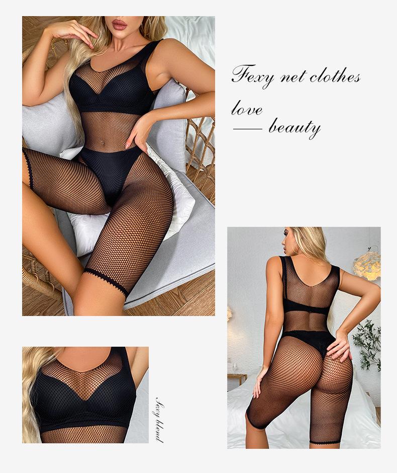 Ropa Interior Sexy Europea y Americana para Mujer Transparente Calada Ropa Interior Sexy Tentación Pijama Malla Vestido de Malla para Mujer Mono