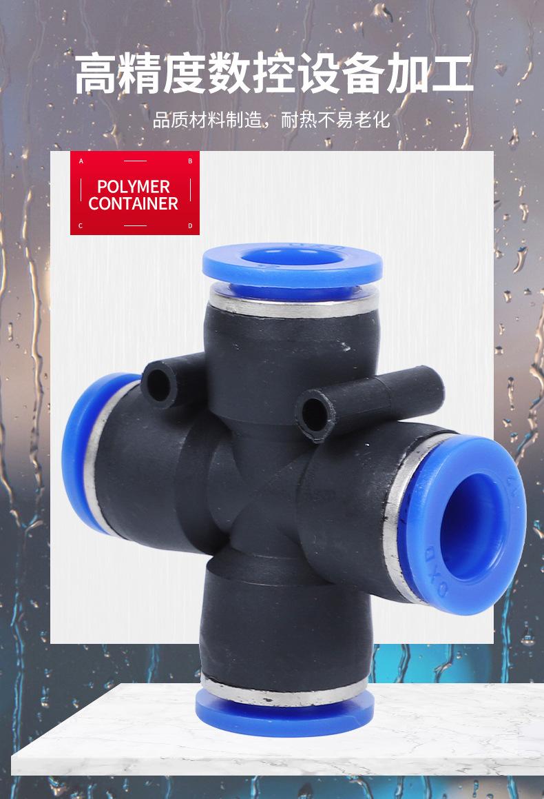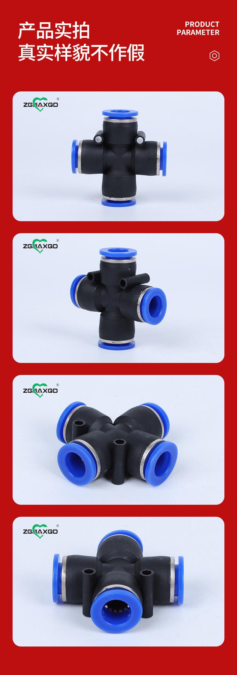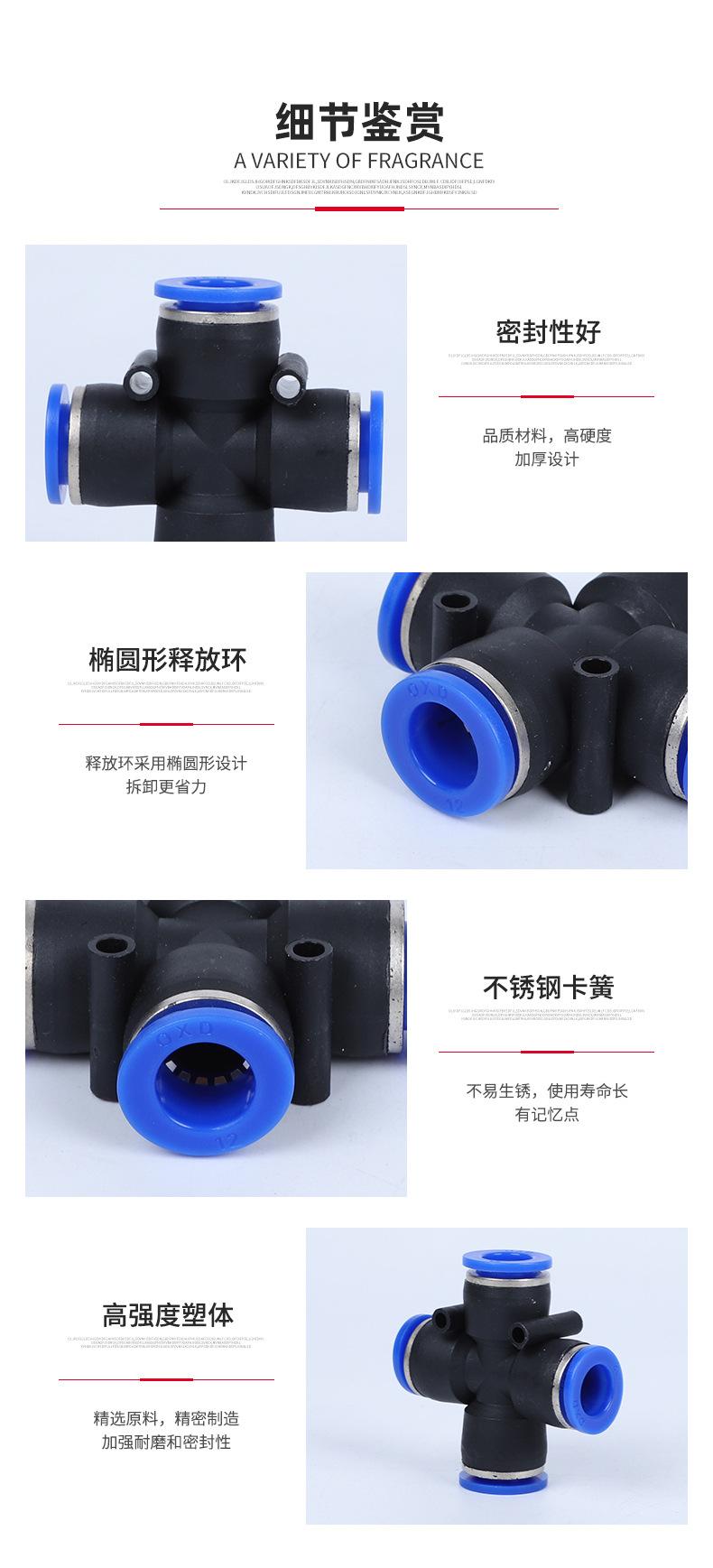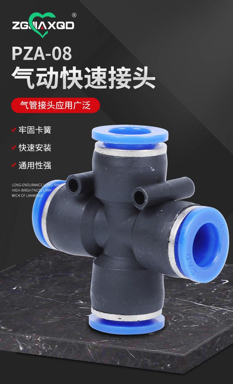 Conector rápido de enchufe cruzado de cuatro vías para manguera neumática, conector rápido de plástico de igual diámetro PZA-4/6/8/10 al por mayor