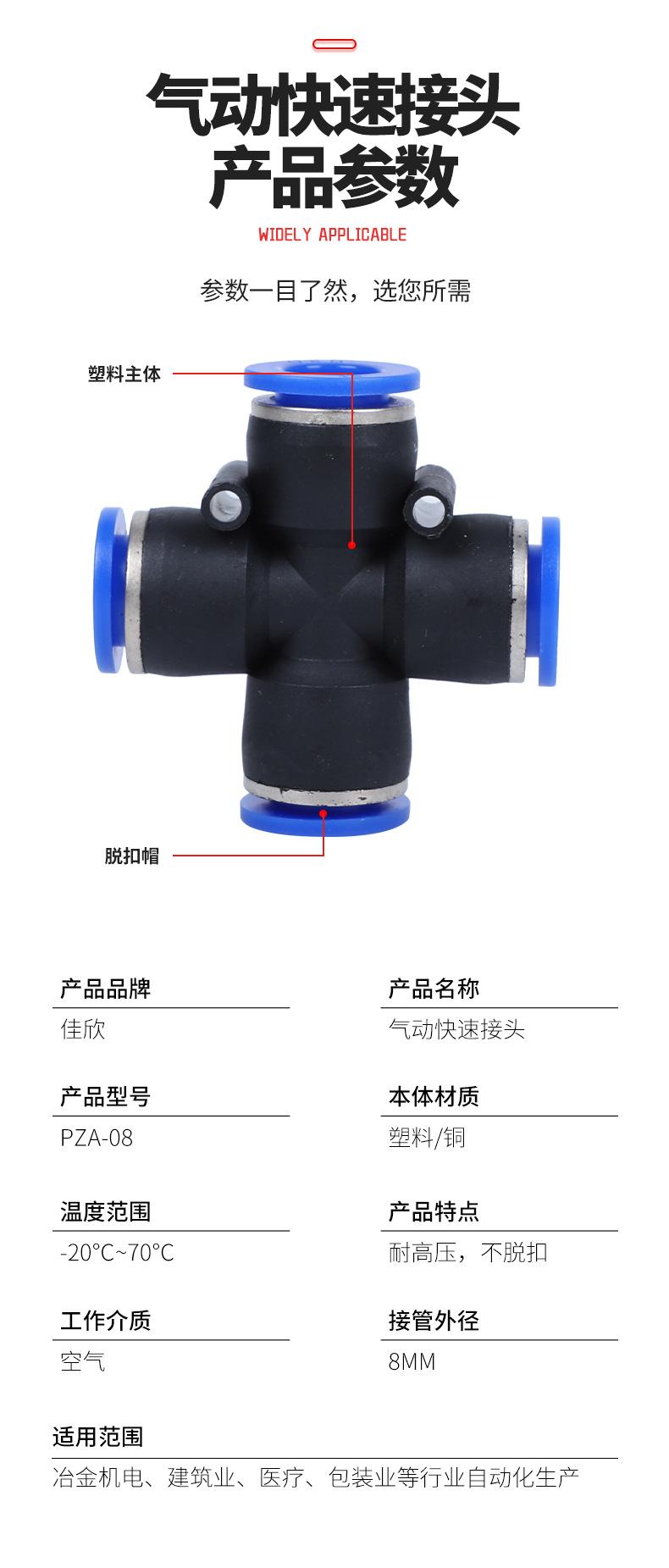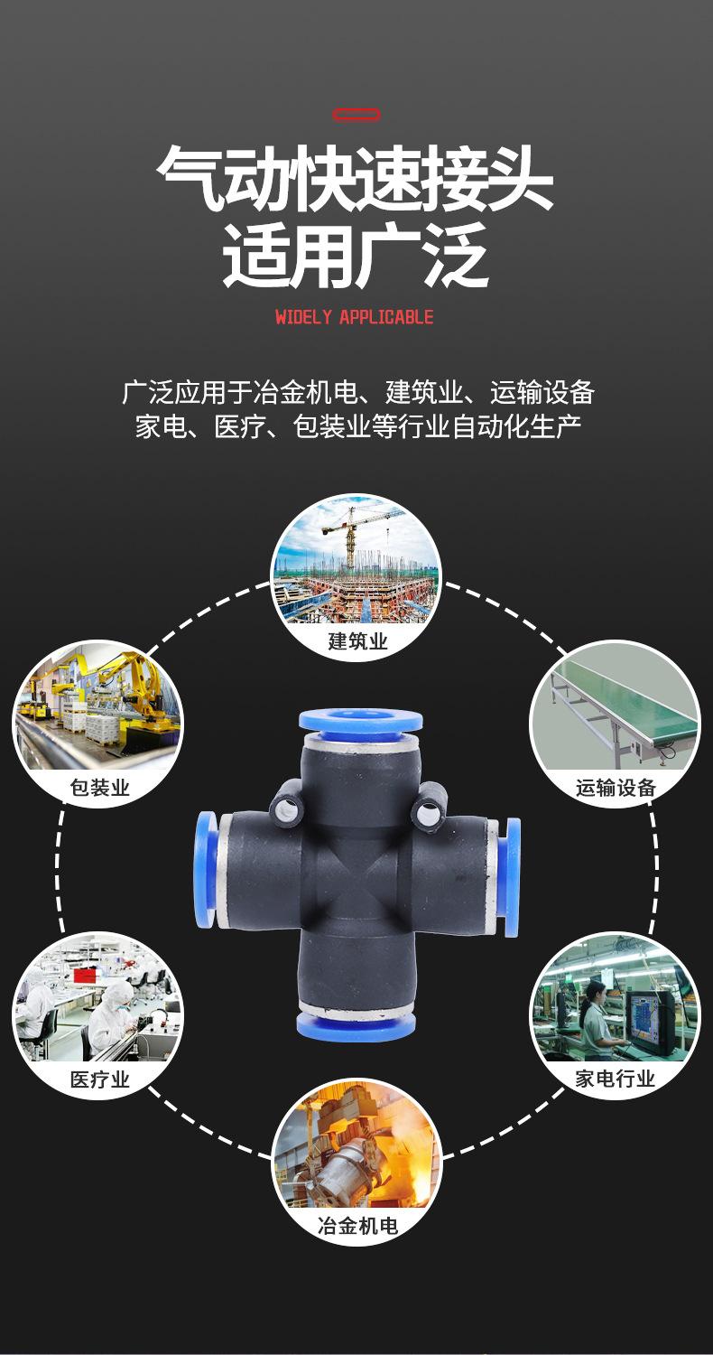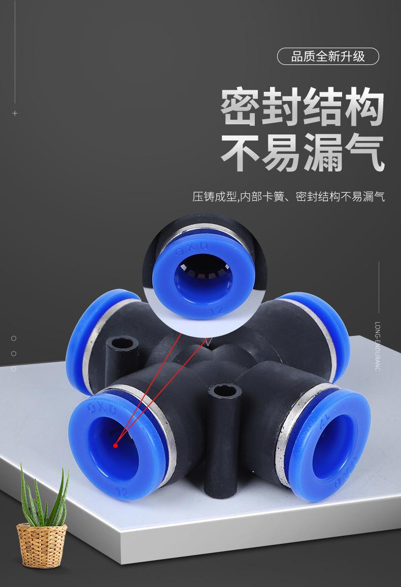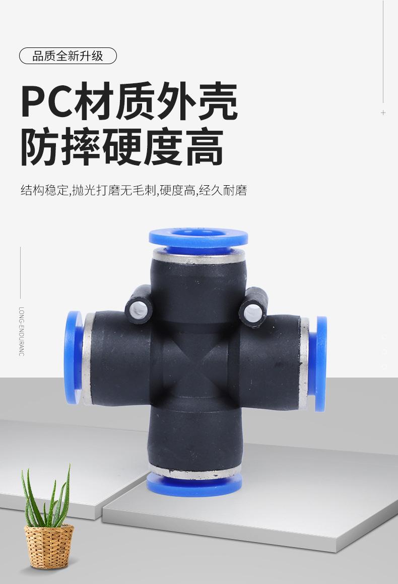 Conector rápido de enchufe cruzado de cuatro vías para manguera neumática, conector rápido de plástico de igual diámetro PZA-4/6/8/10 al por mayor