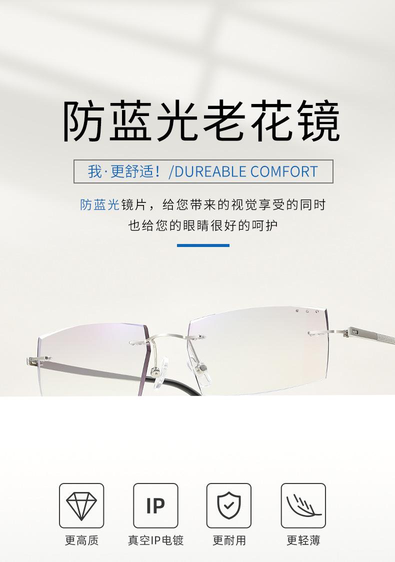 Lentes de Lectura para Hombre con Montura al Aire con Corte Diamante, Antiluz Azul, Antirradiación, Antifatiga Ocular, Modelo Nuevo 012023