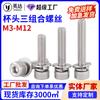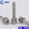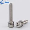 Cabeza de cilindro de acero inoxidable 304, combinación de tres pernos, cabeza de copa, cabeza hueca hexagonal con almohadilla plana, almohadilla de resorte, tornillo combinado M3M4M5