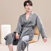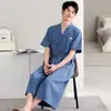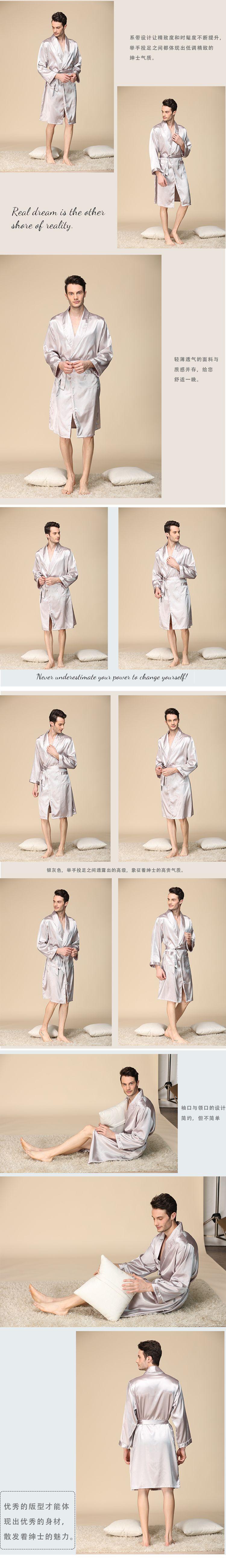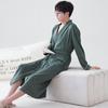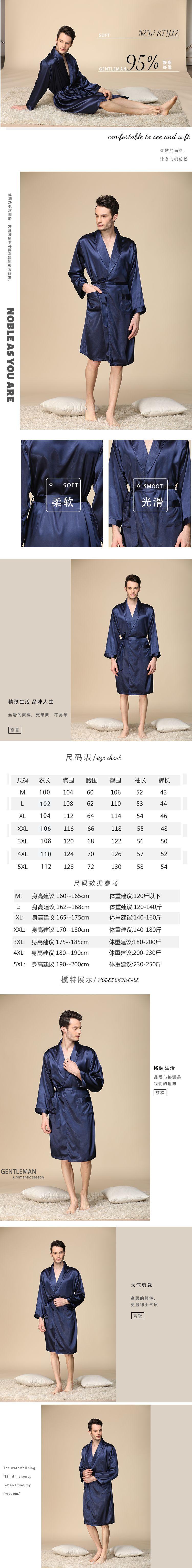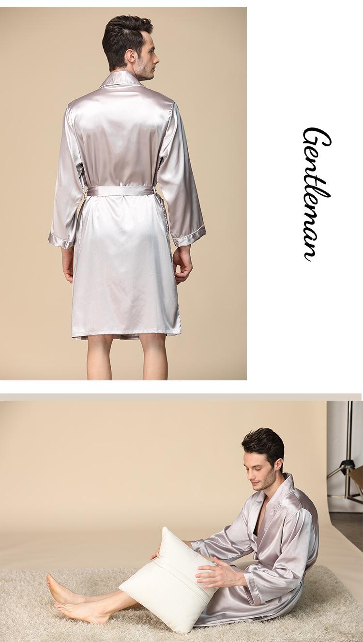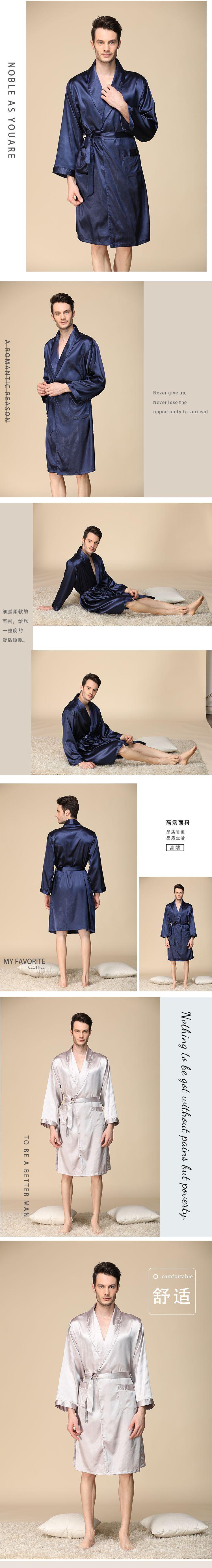 Comercio Exterior Verano Bata de Noche de Seda de una Pieza para Hombre Delgada Imitación Seda Manga Larga Pijama para Hombre Verano Talla Extra Bata de Baño de Seda de Hielo