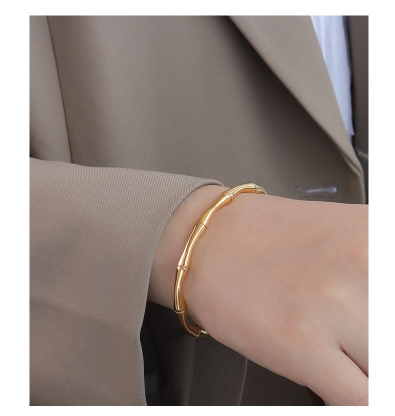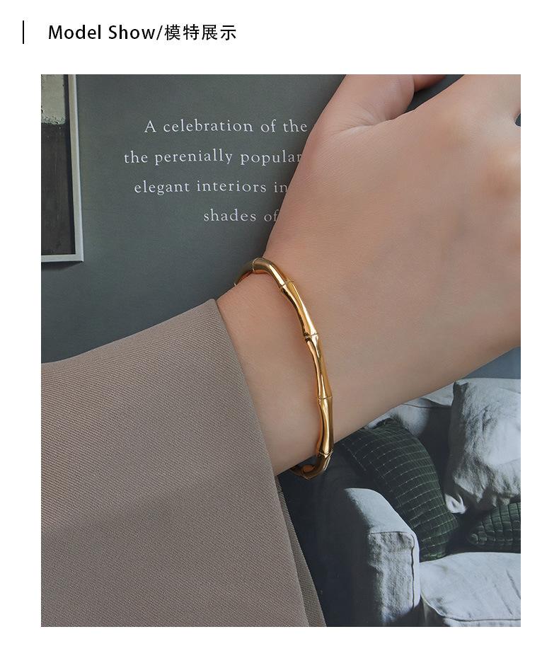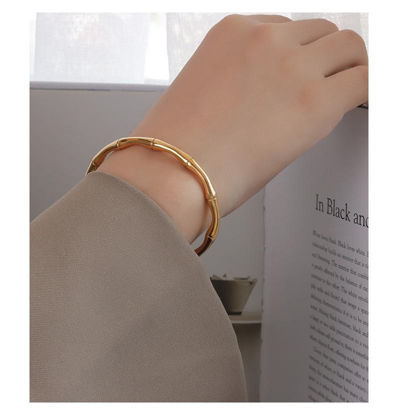 Pulsera abierta de bambú retro simple versátil estilo ins pulsera de bambú para mujer joyería acero de titanio al por mayor joyería transfronteriza