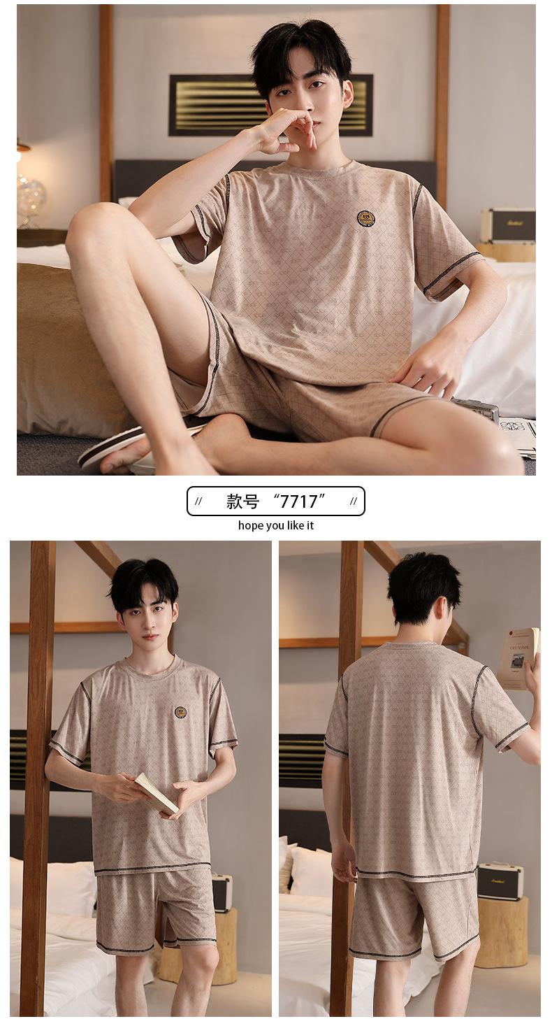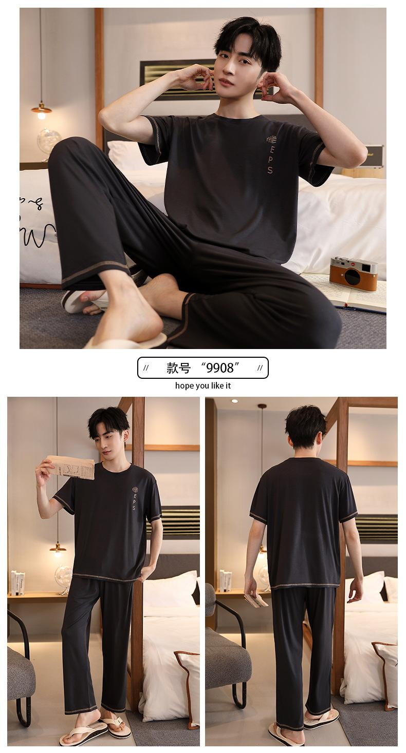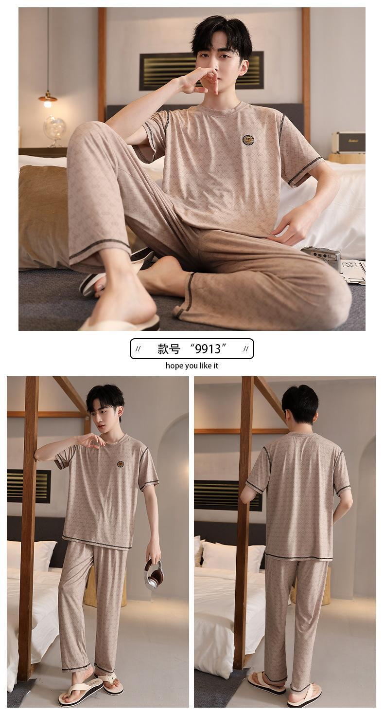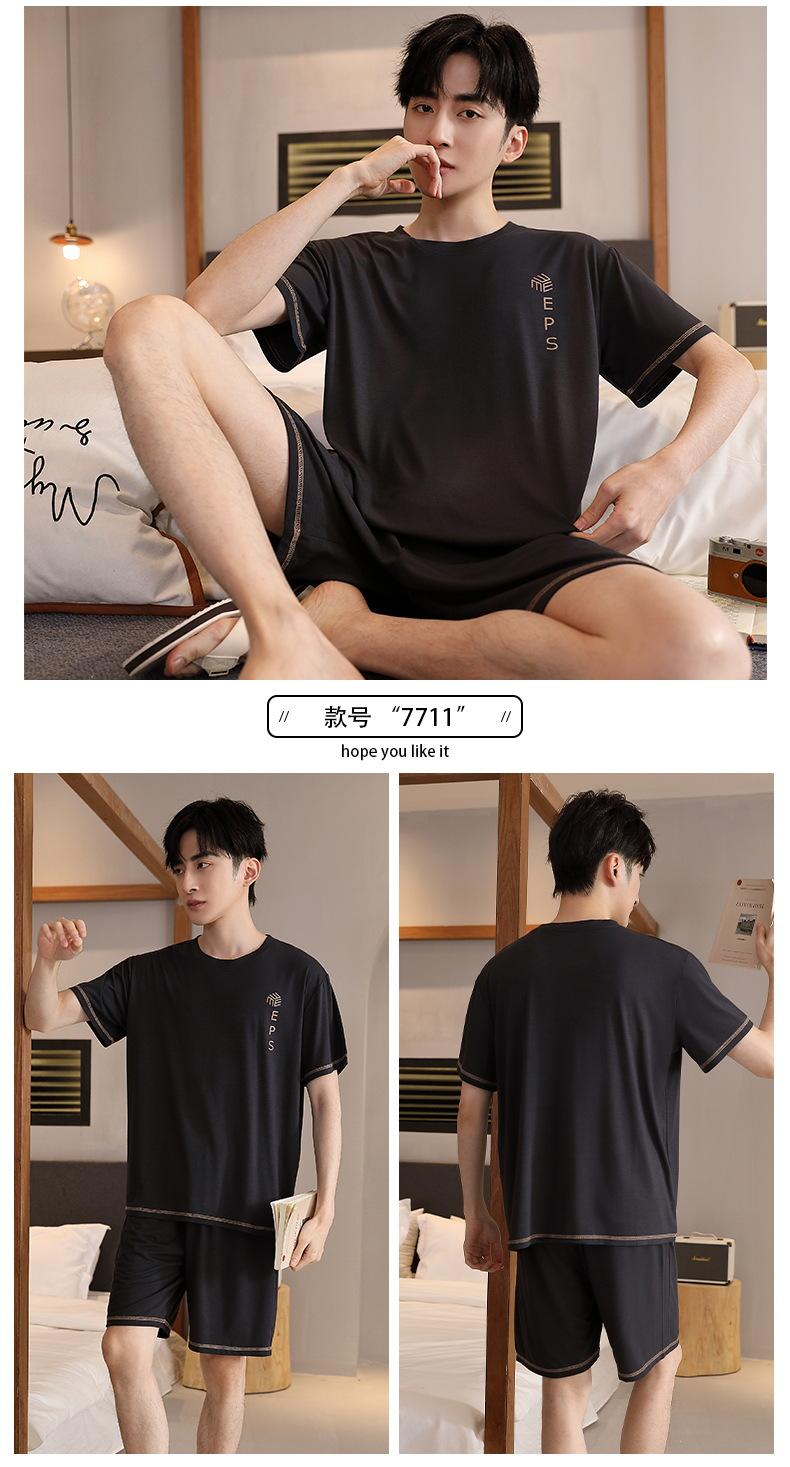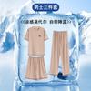 Pijama de verano para hombre, de manga corta, de modal, con pantalones finos, conjunto de tres piezas, de seda de hielo, talla grande