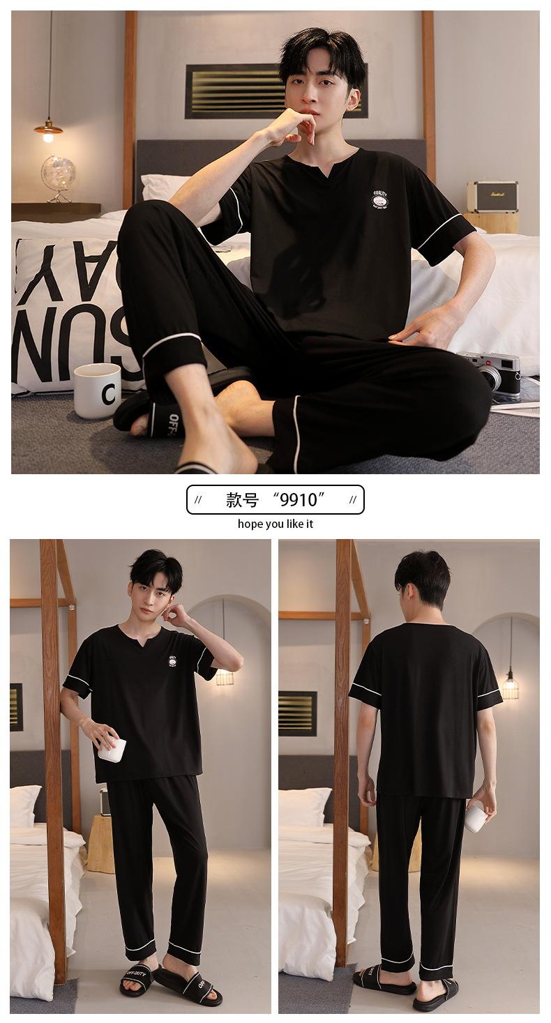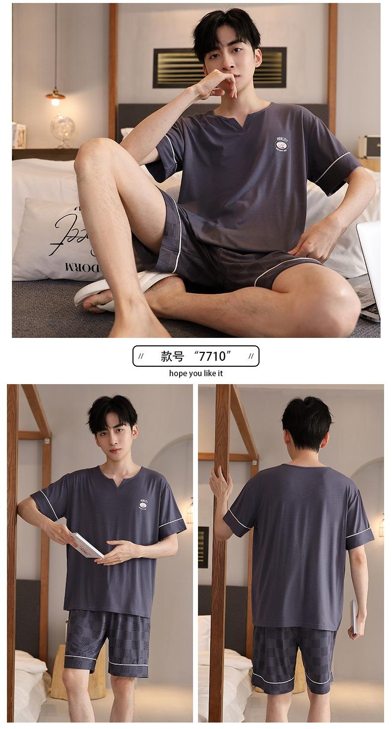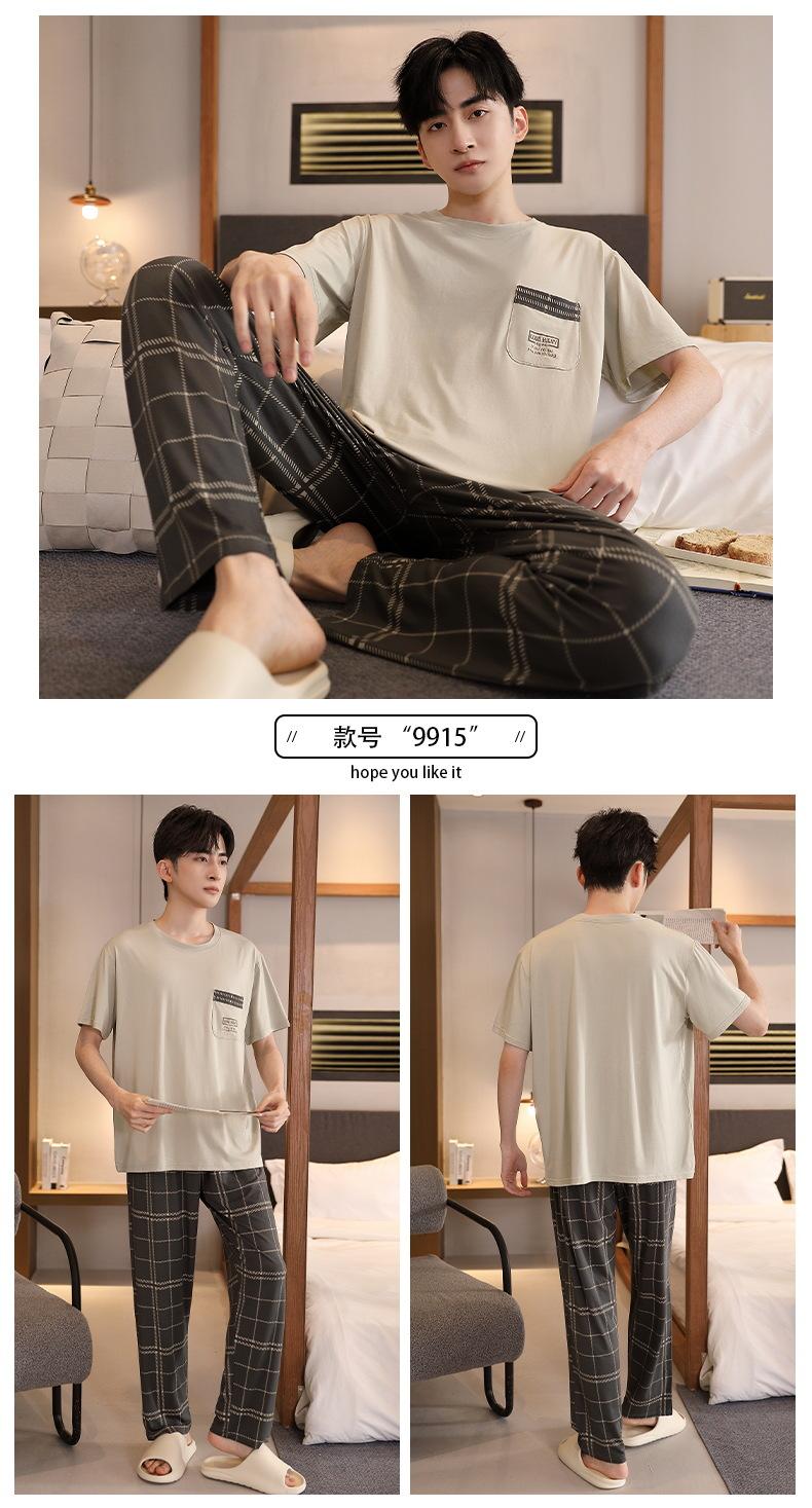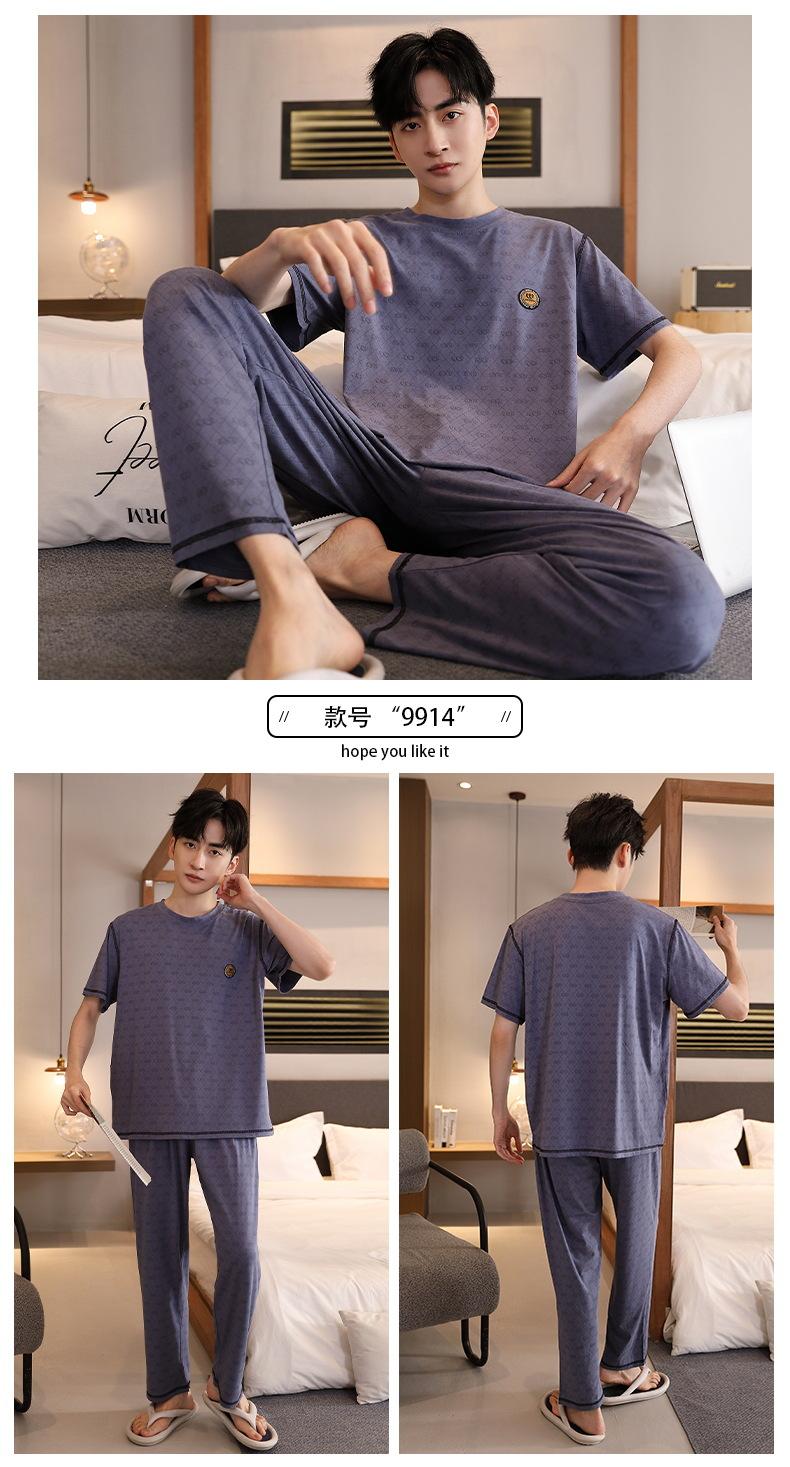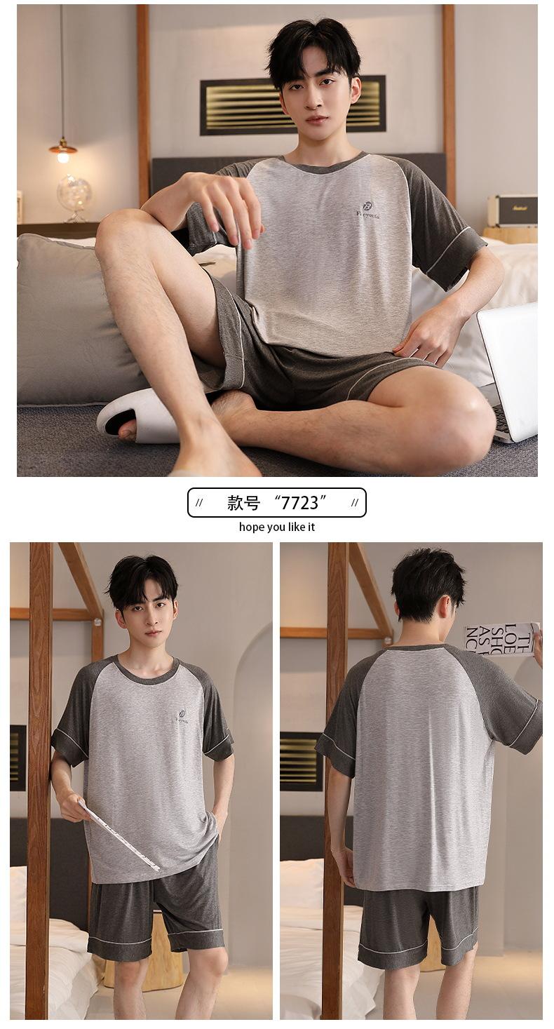 Pijama de verano para hombre, de manga corta, de modal, con pantalones finos, conjunto de tres piezas, de seda de hielo, talla grande