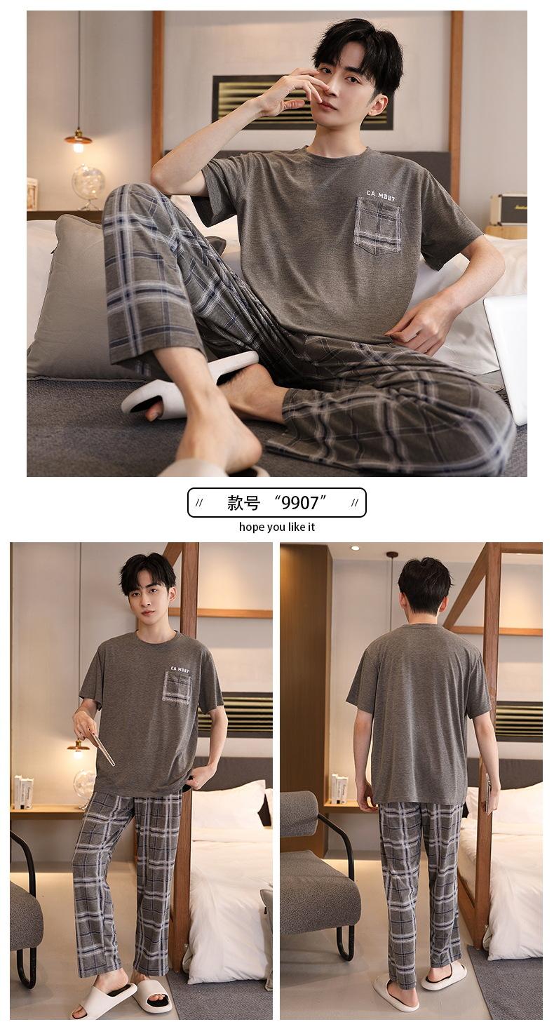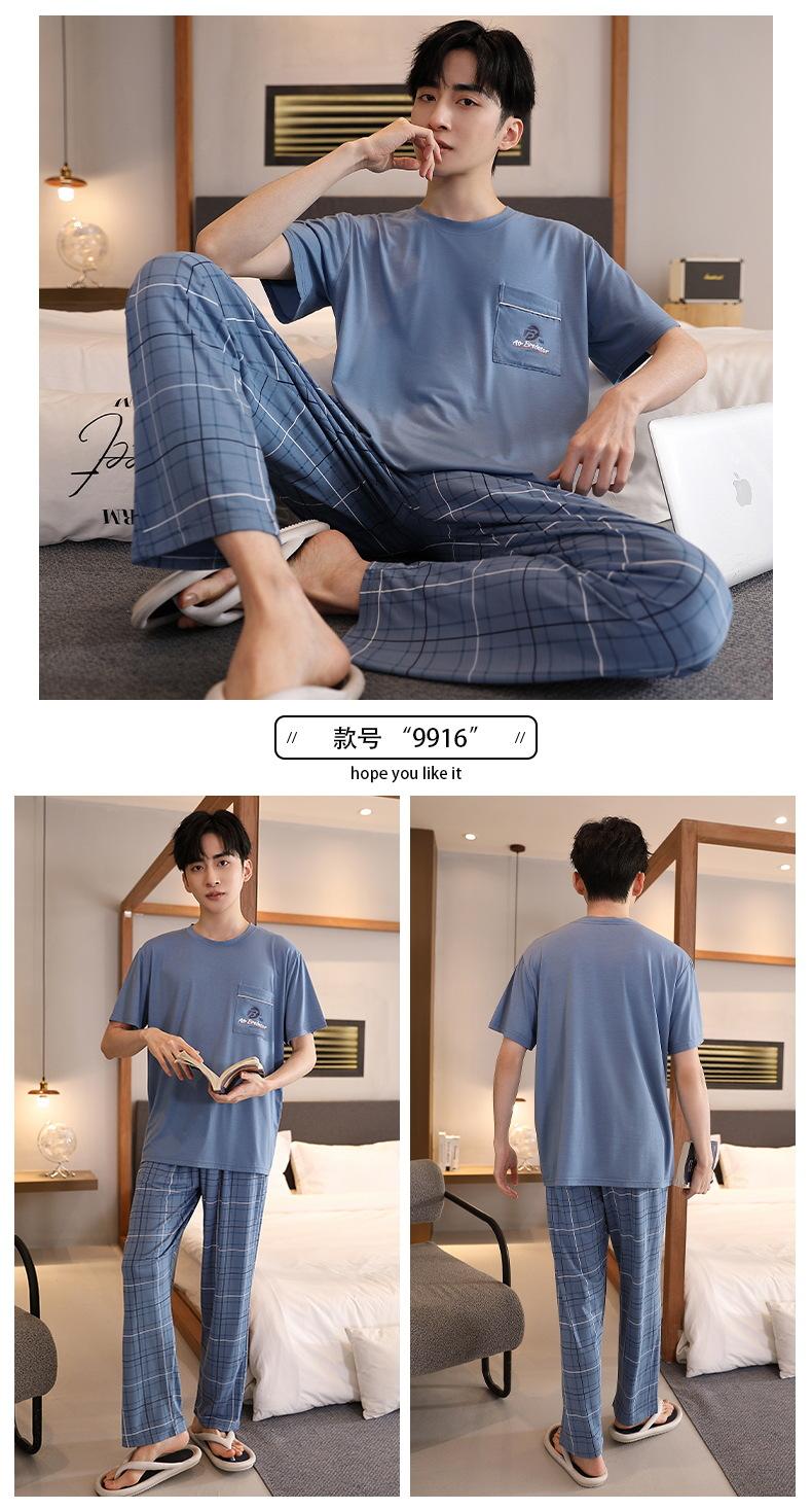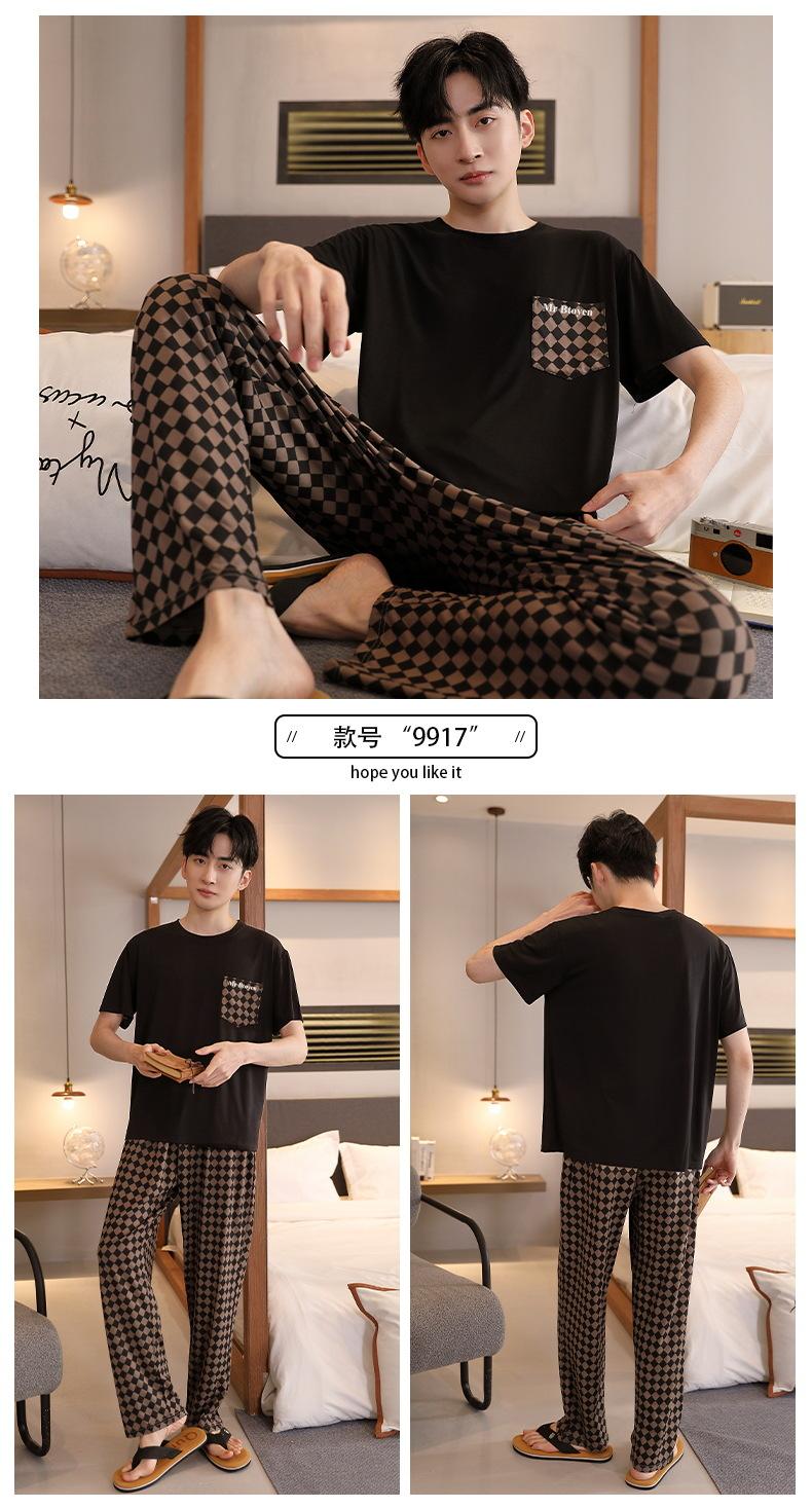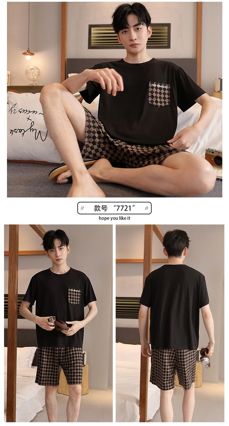 Pijama de verano para hombre, de manga corta, de modal, con pantalones finos, conjunto de tres piezas, de seda de hielo, talla grande