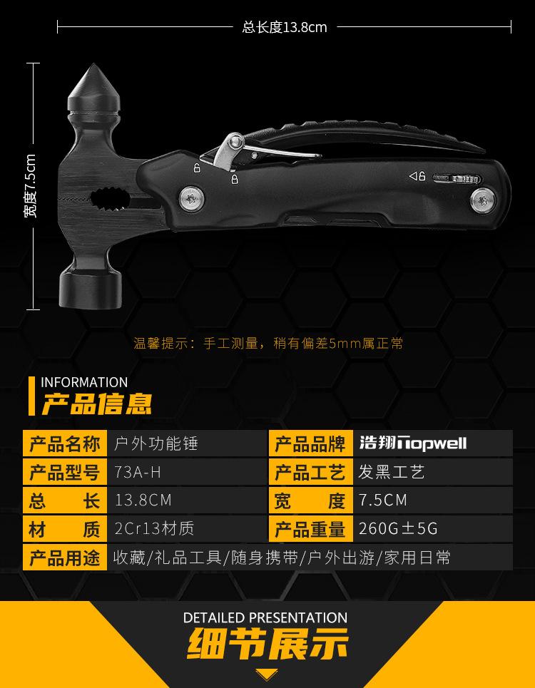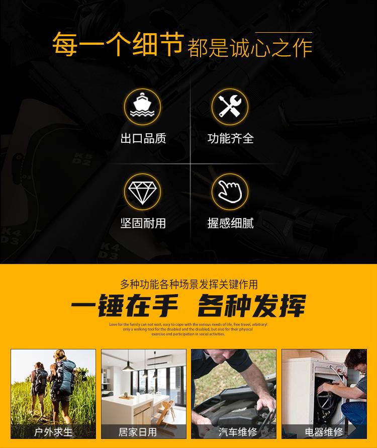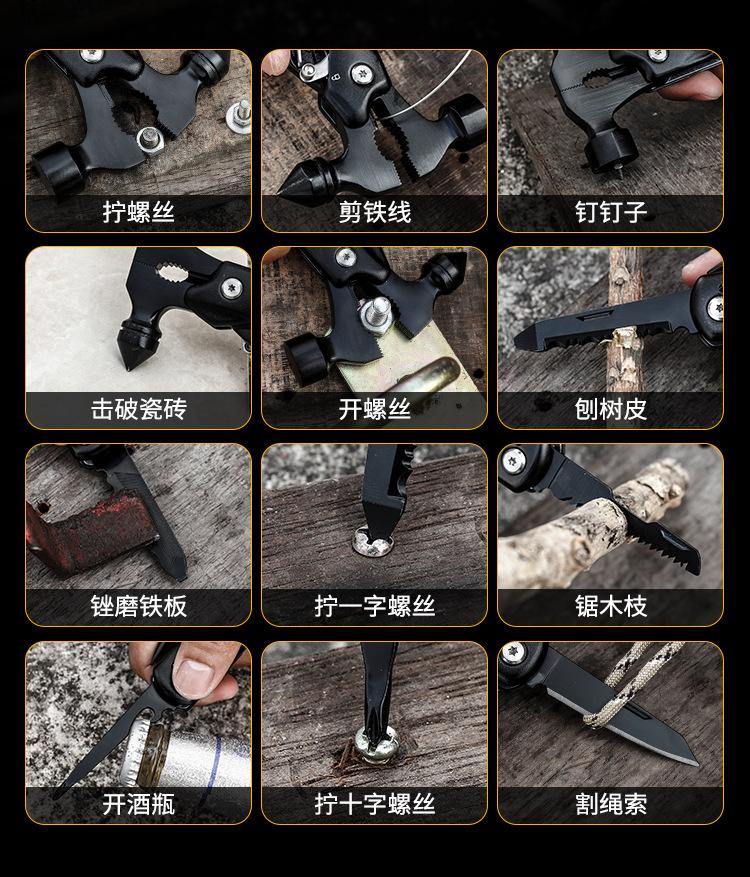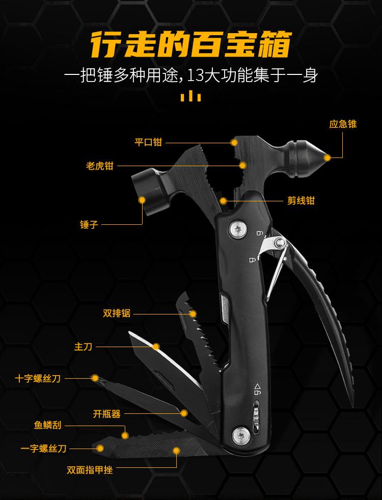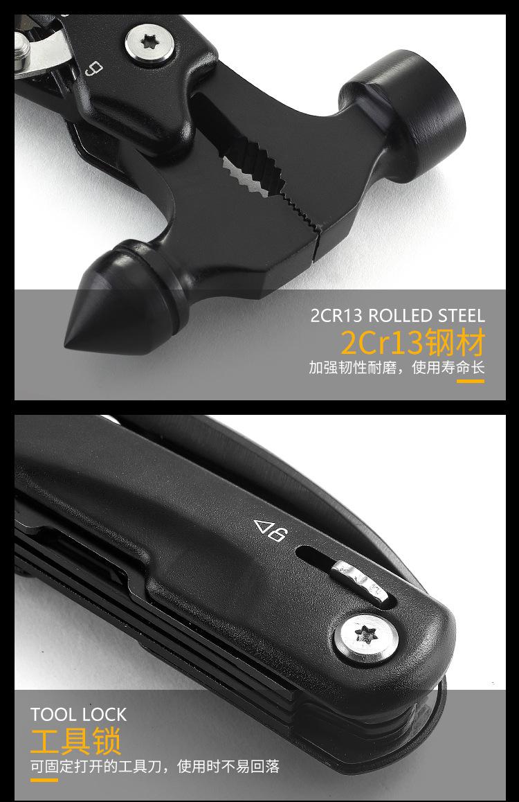 Venta caliente, martillo multifunción, herramienta portátil para vehículos, martillo salvavidas multifunción, herramienta para acampar, martillo