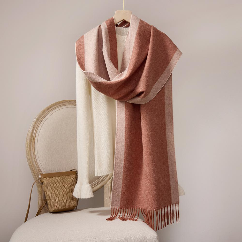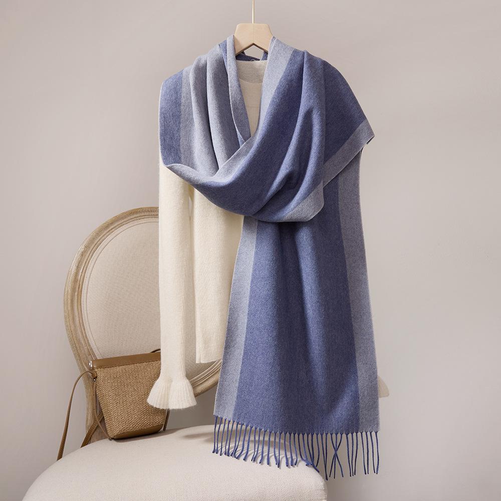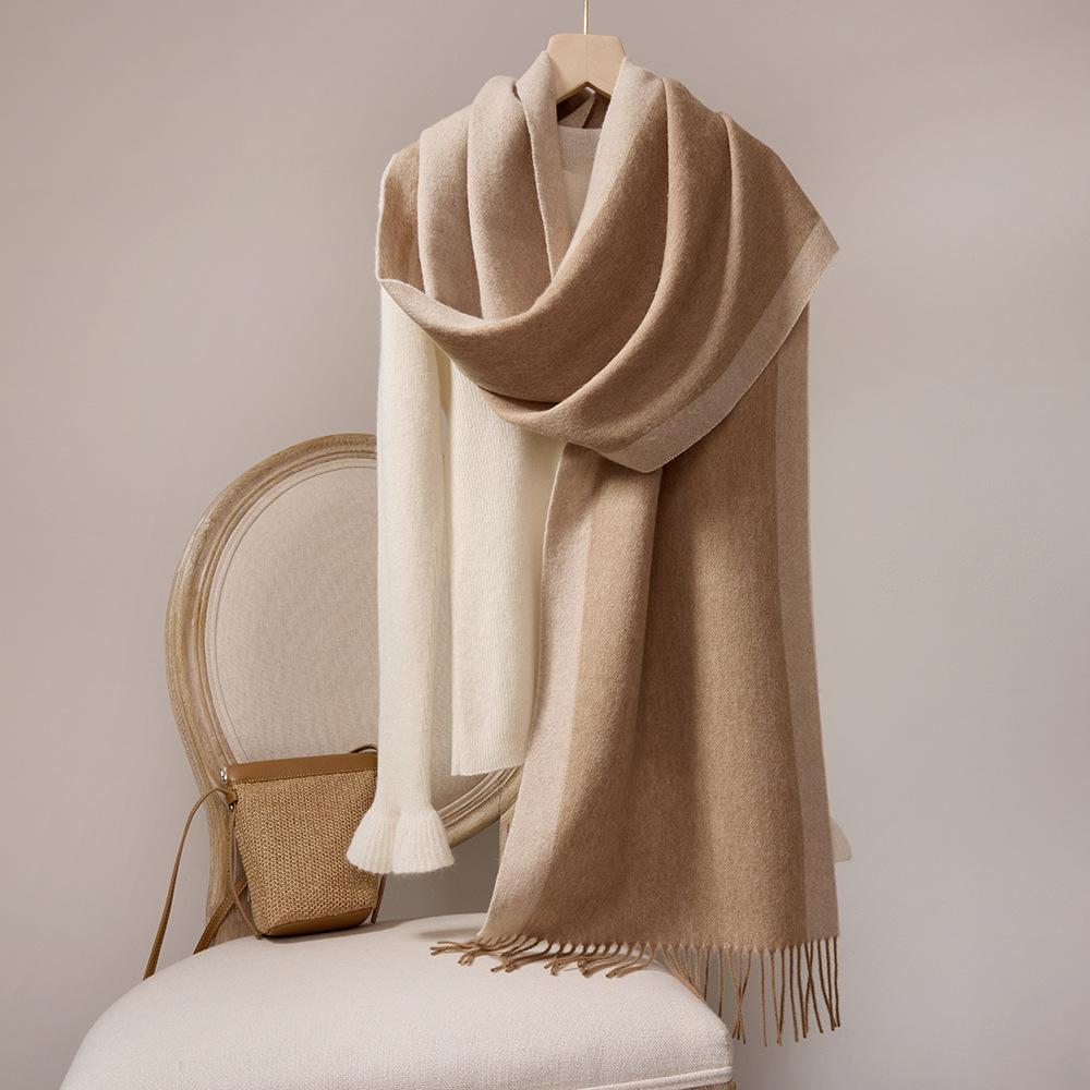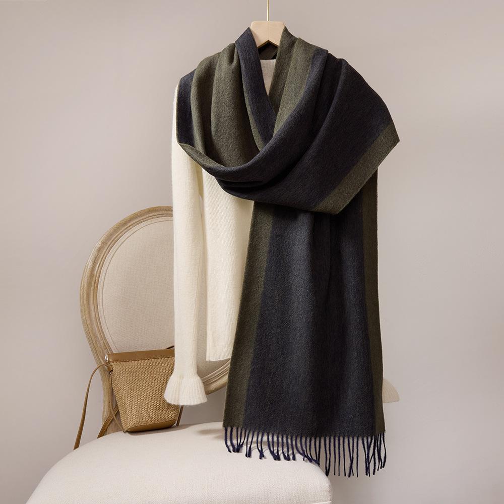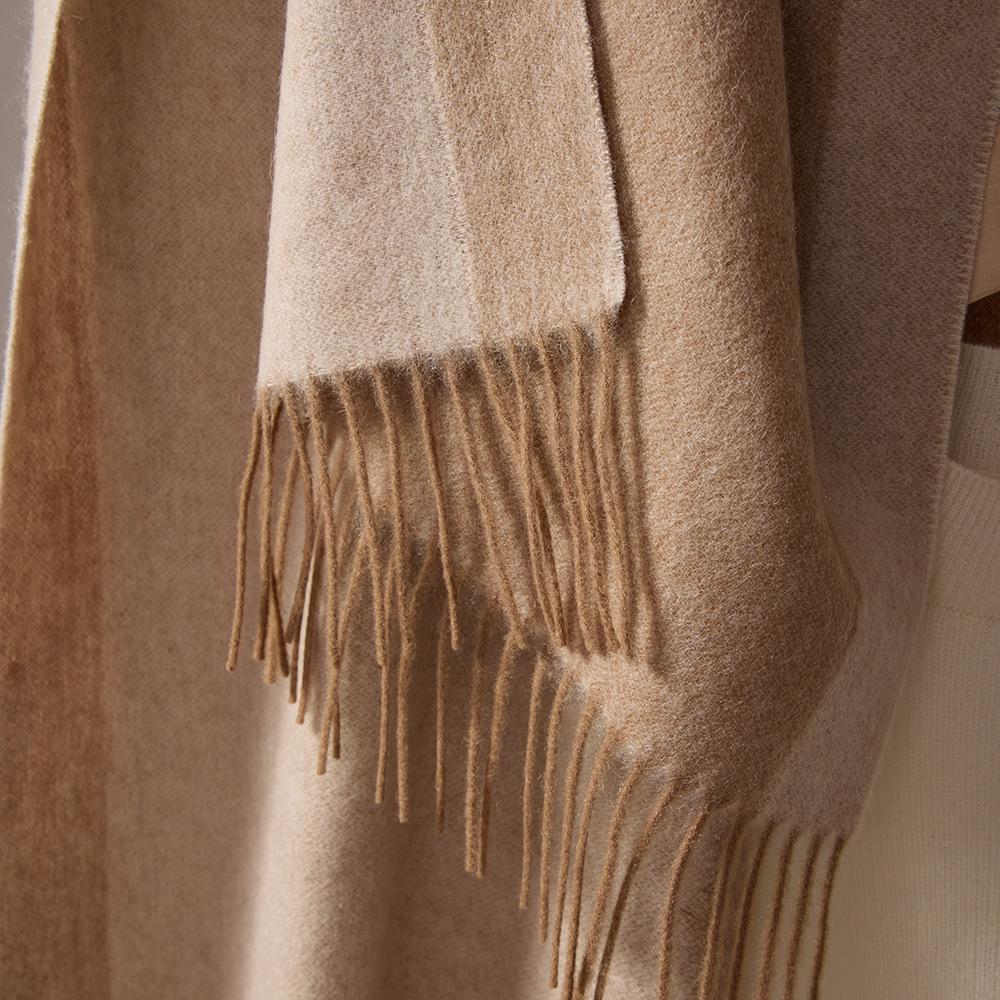 Bufanda de lana de Mongolia Interior con diferentes colores de urdimbre y trama.