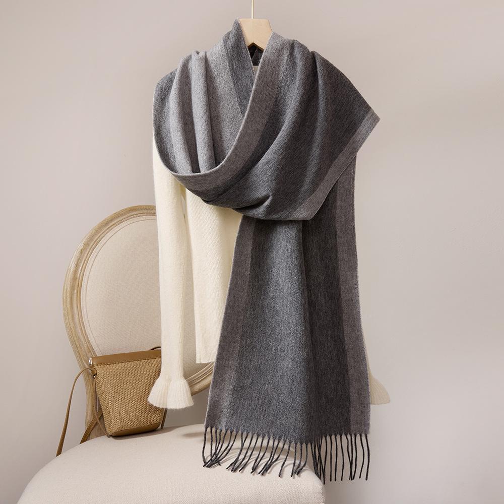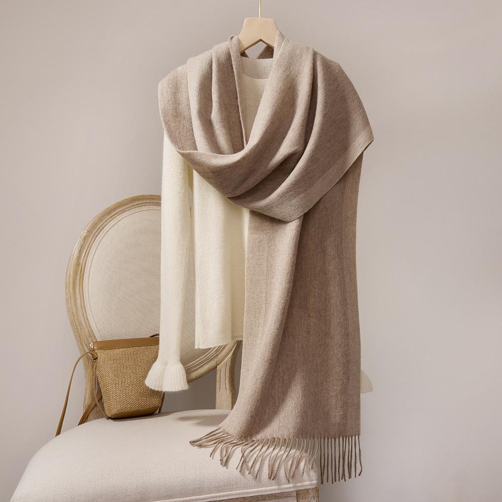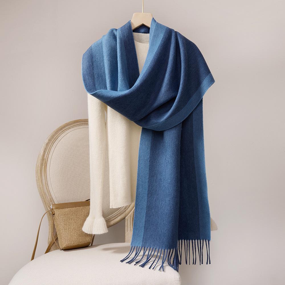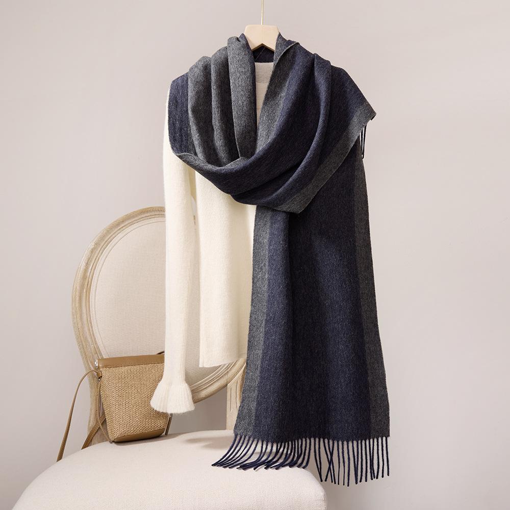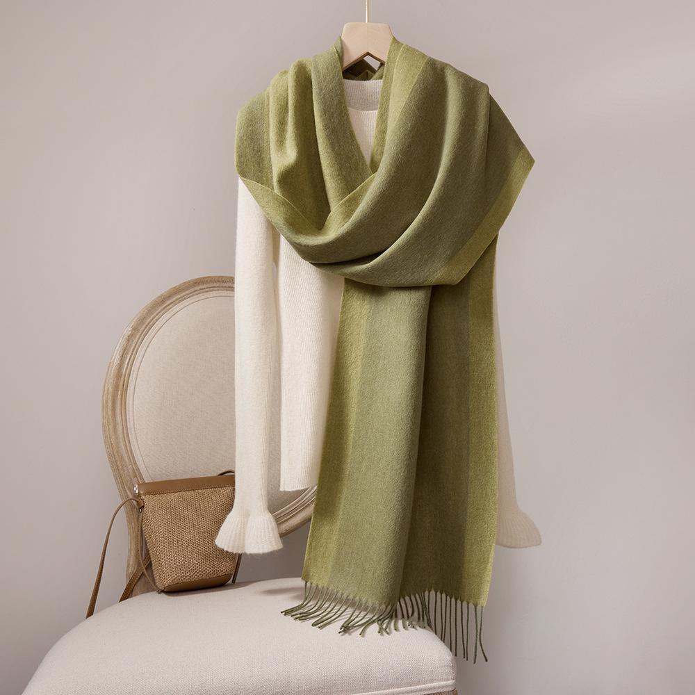 Bufanda de lana de Mongolia Interior con diferentes colores de urdimbre y trama.