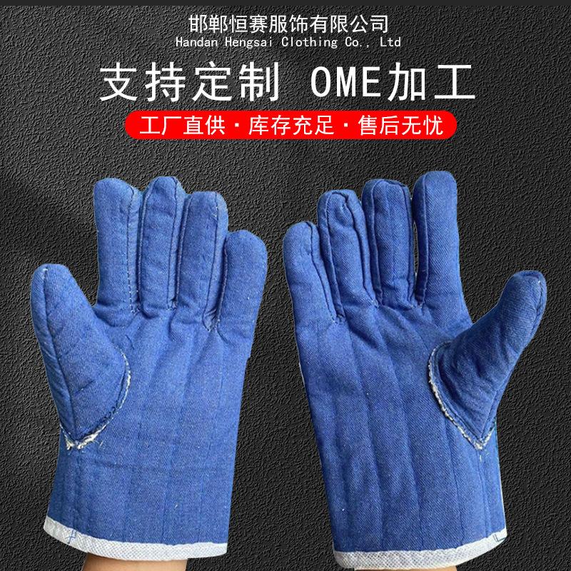 Guantes de soldadura personalizados de cinco dedos, guantes de mezclilla de algodón, guantes protectores gruesos resistentes al desgaste, guantes industriales