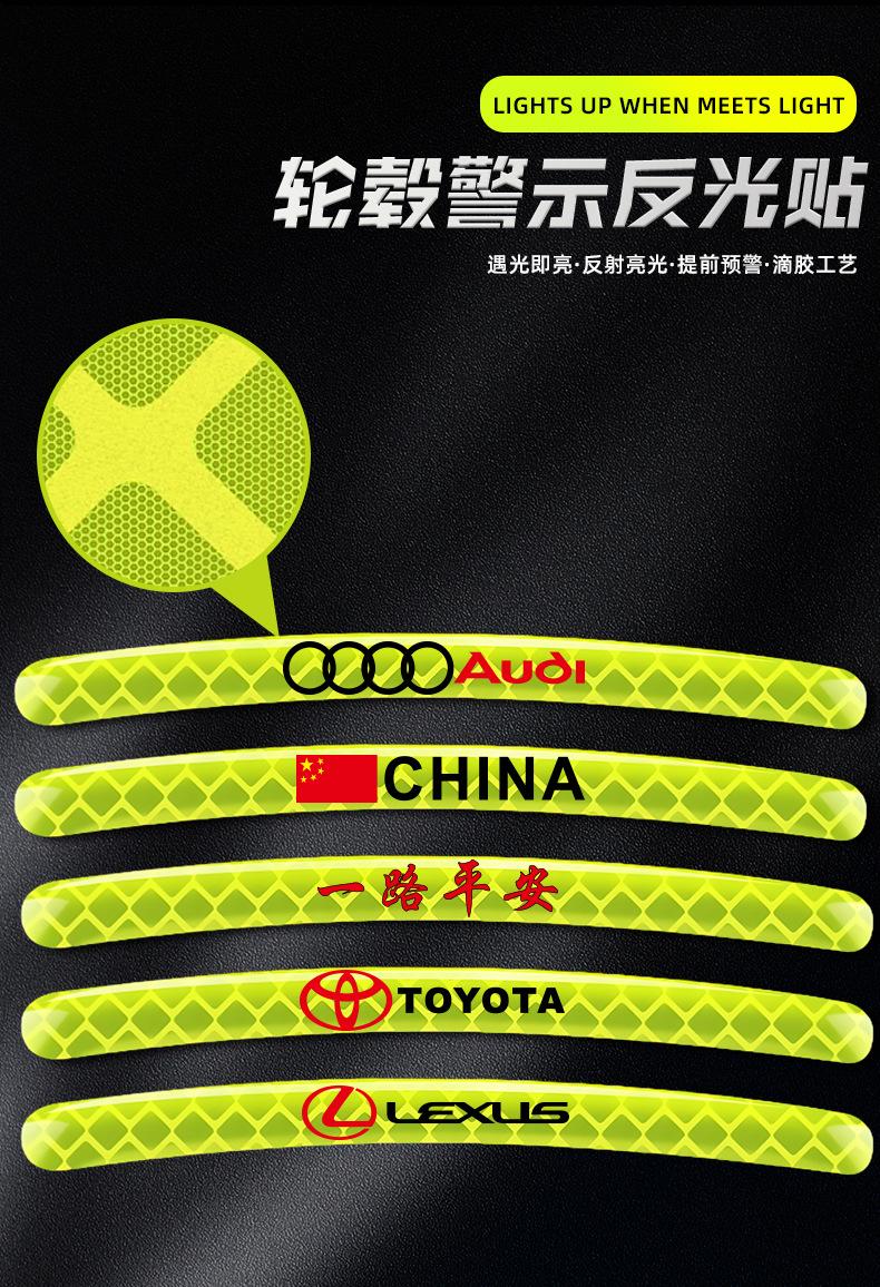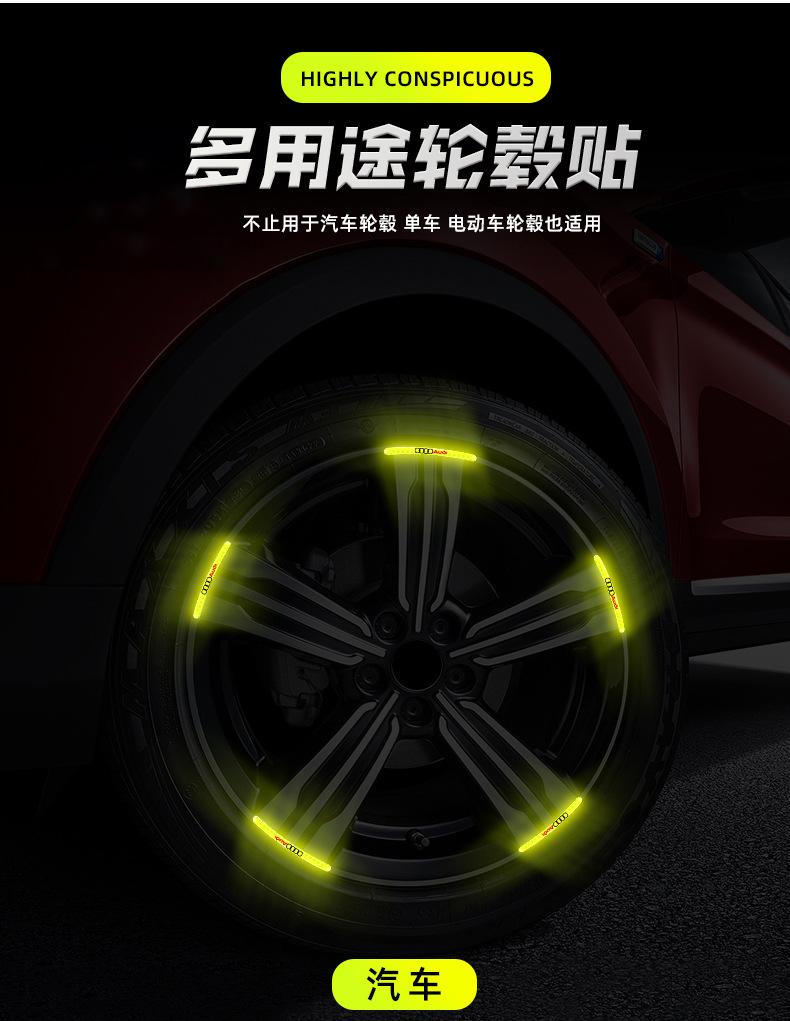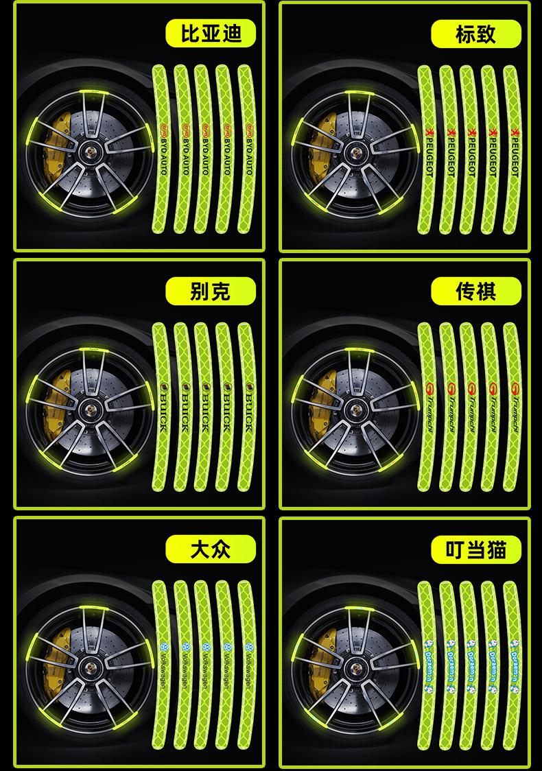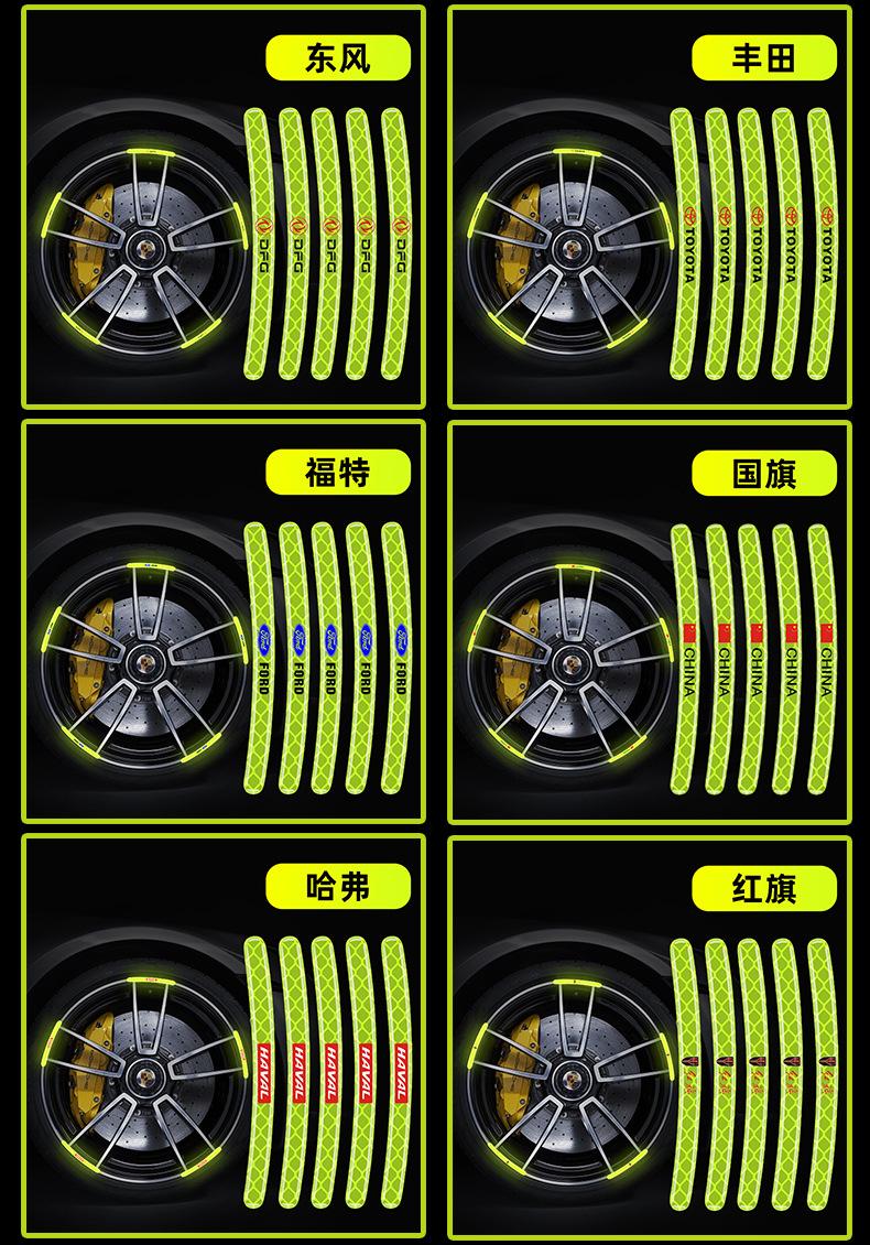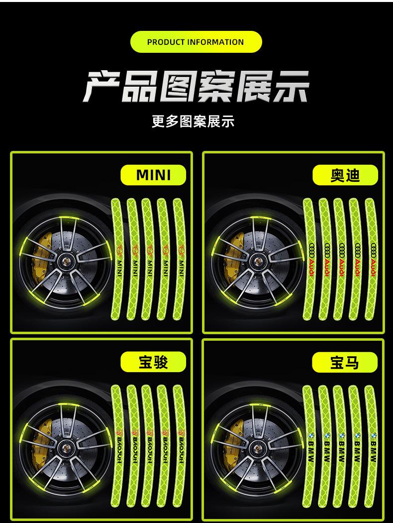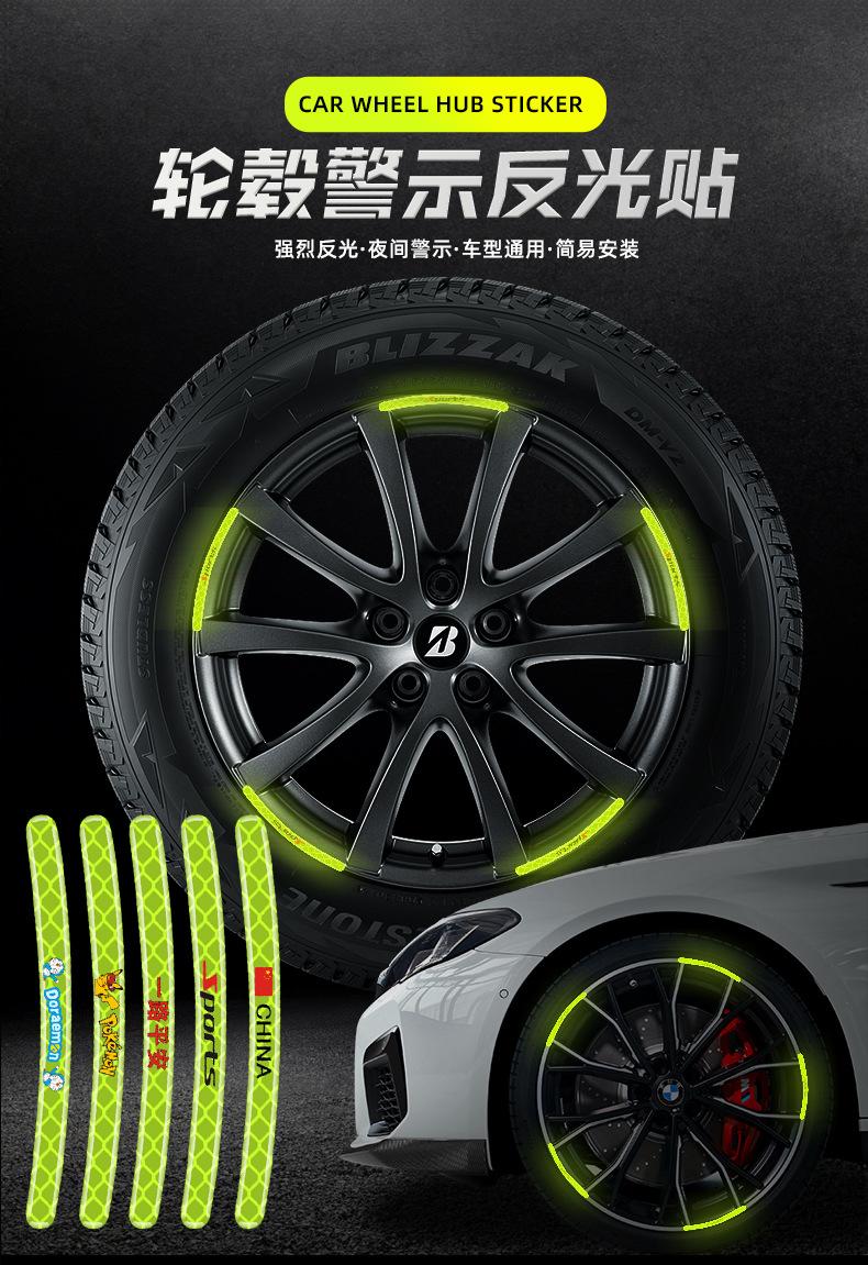 Pegatinas reflectantes para bujes de ruedas de coche, pegatinas de advertencia para neumáticos, pegatinas anticolisión, decorativas, verdes, personalizadas, creativas, para motocicletas y coches eléctricos.