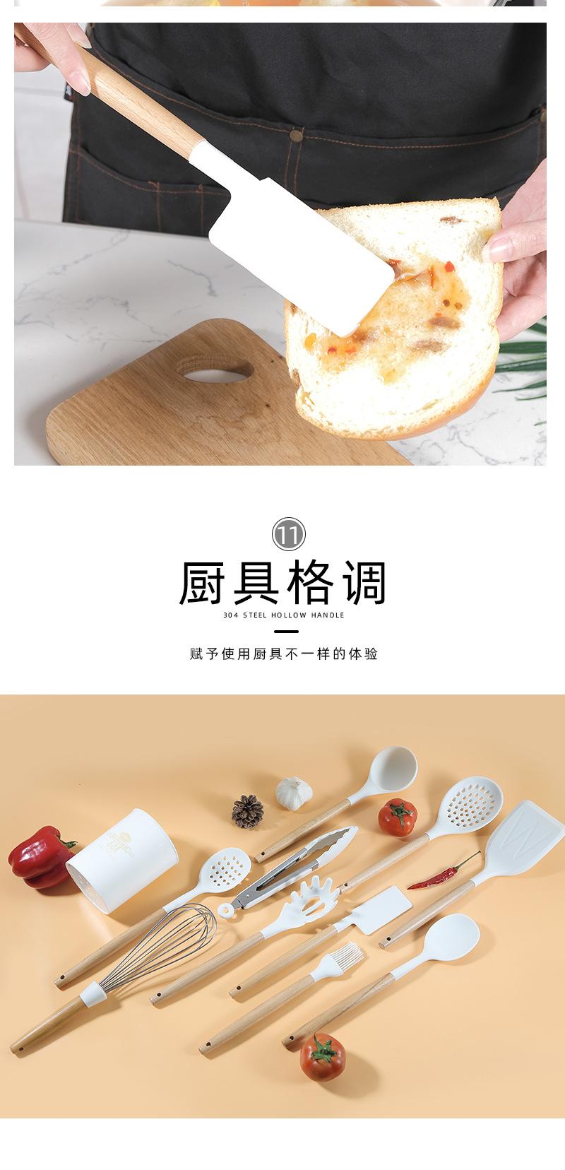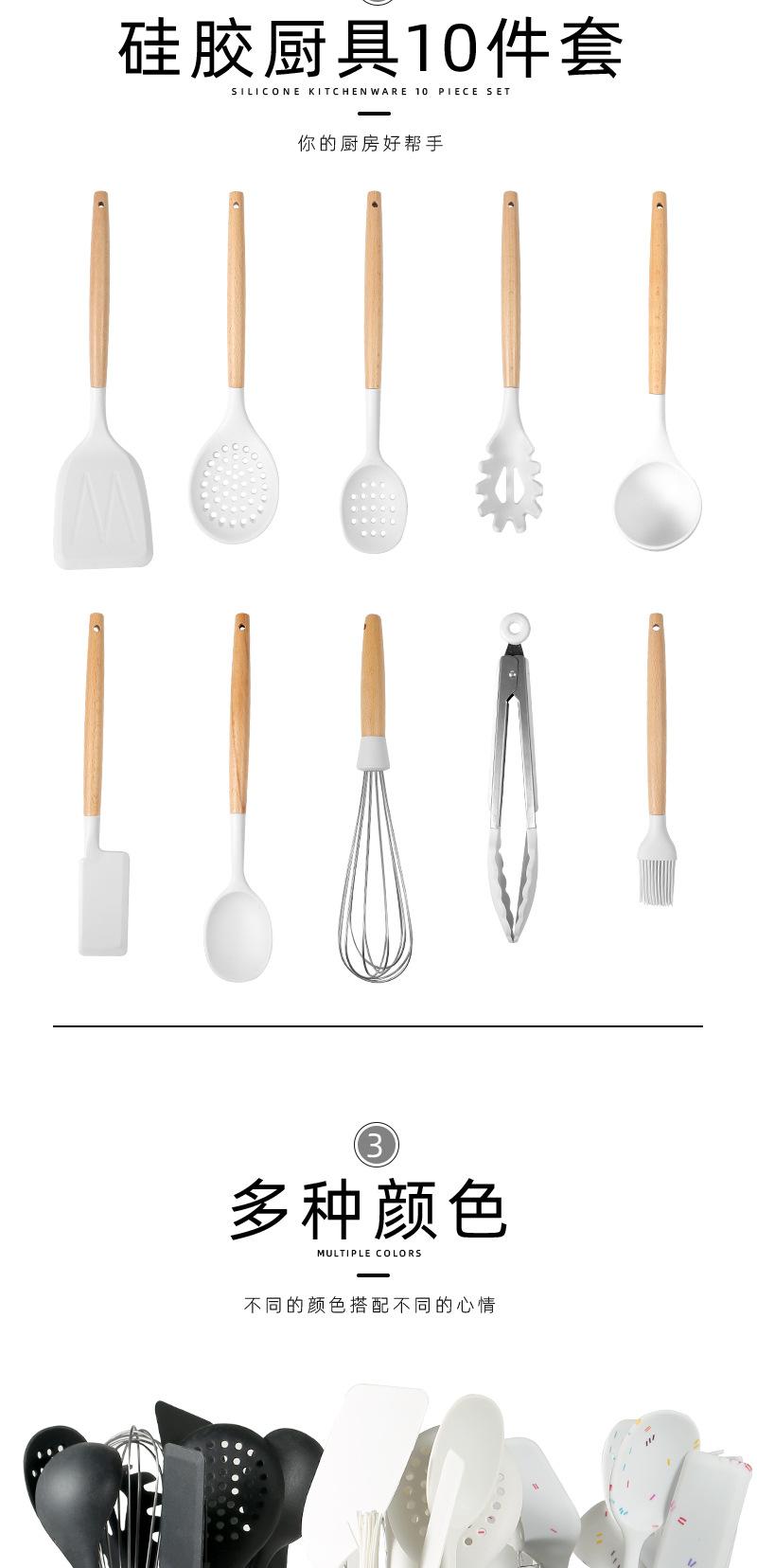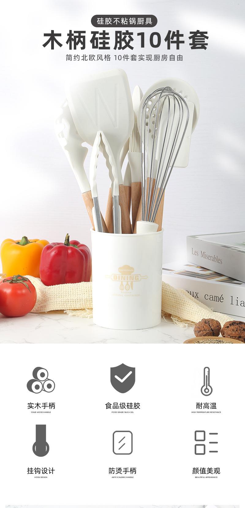 Nombre del producto: Juego de utensilios de cocina de silicona de 10 piezas con mango de madera