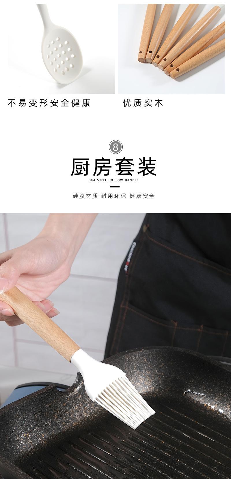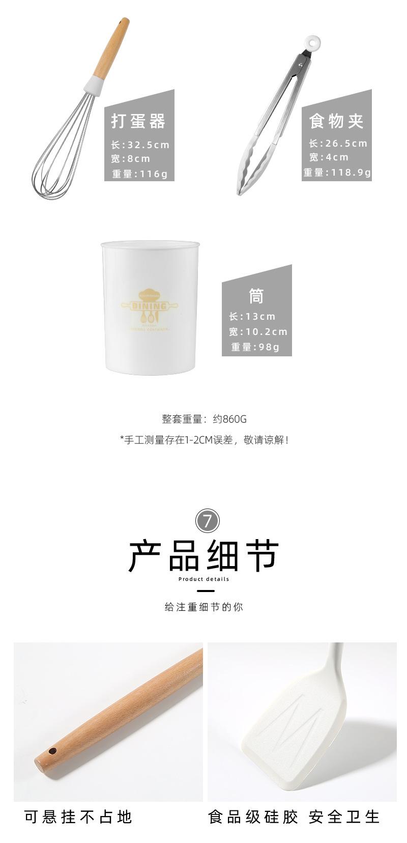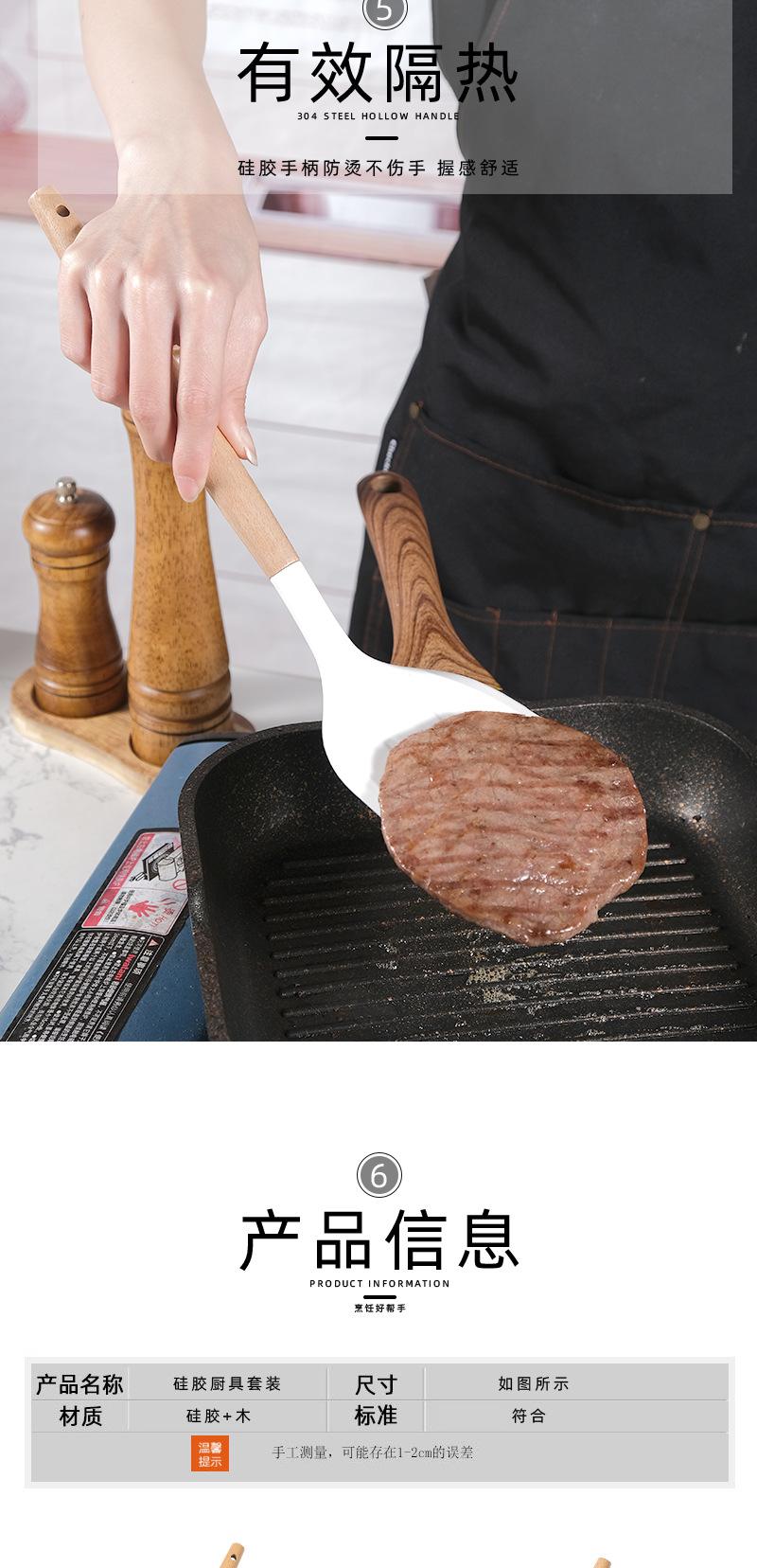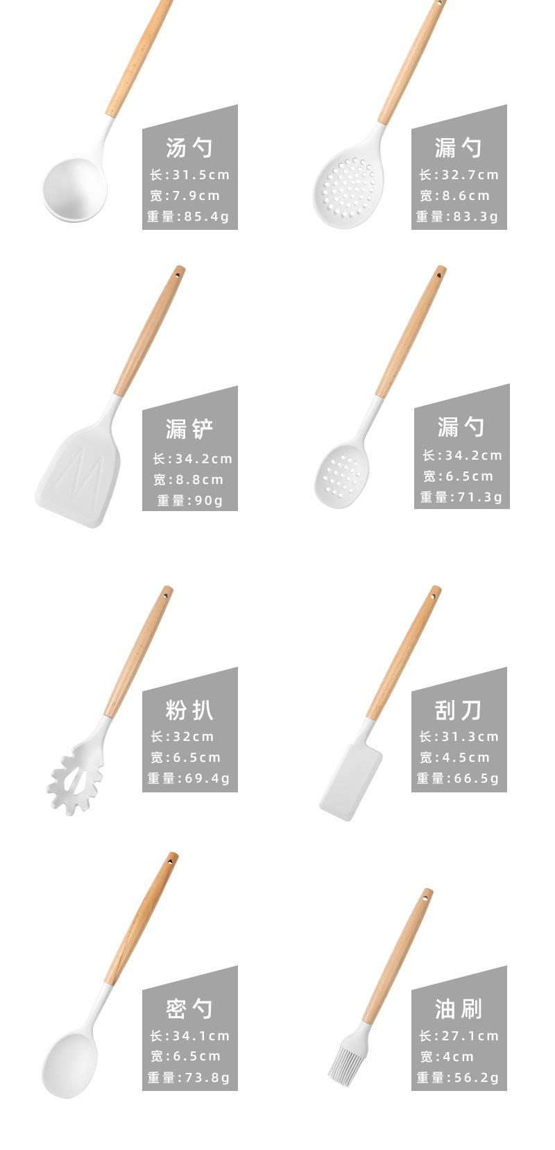 Nombre del producto: Juego de utensilios de cocina de silicona de 10 piezas con mango de madera