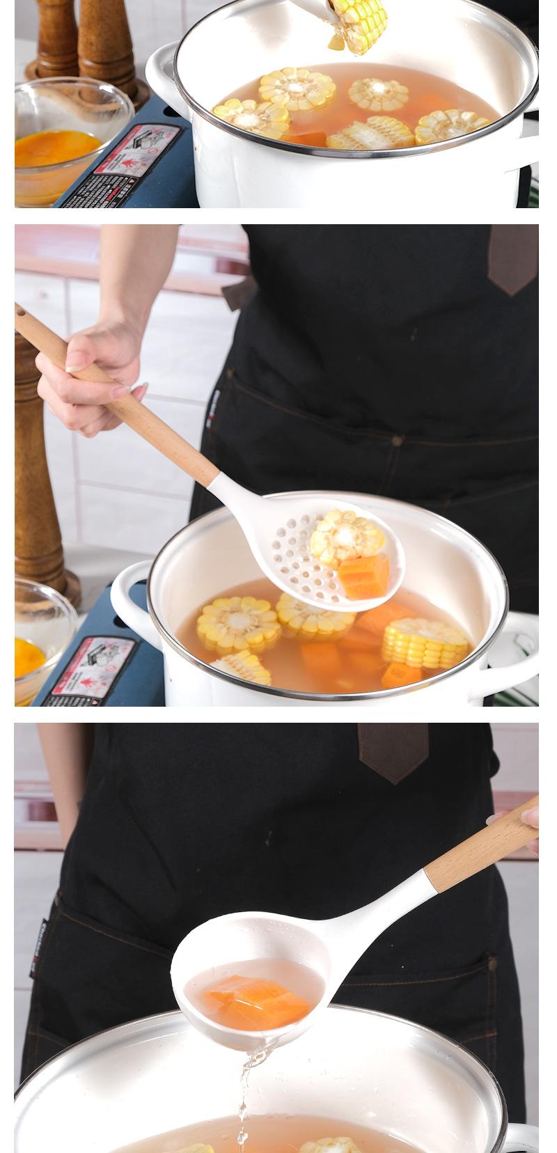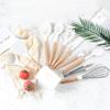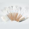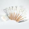 Juego de utensilios de cocina de silicona con mango de madera color blanco leche, juego de 10 piezas, herramientas de cocina nórdicas, cuchara para sopa, utensilios para cocinar, sartén antiadherente, resistente a altas temperaturas
