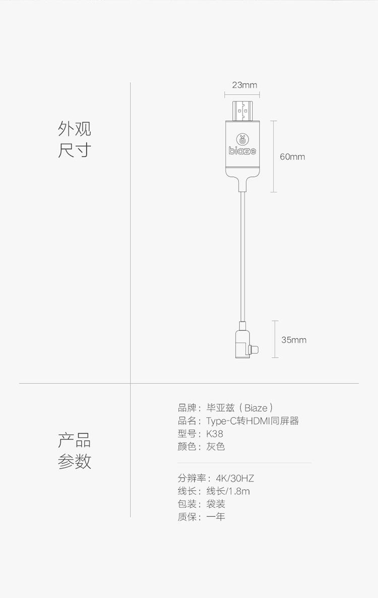 Compra Cable convertidor Biaz Tipo-C a HDMI, estación de acoplamiento, adaptador USB-C a HDMI k38-gris al por mayor en Joom.pro