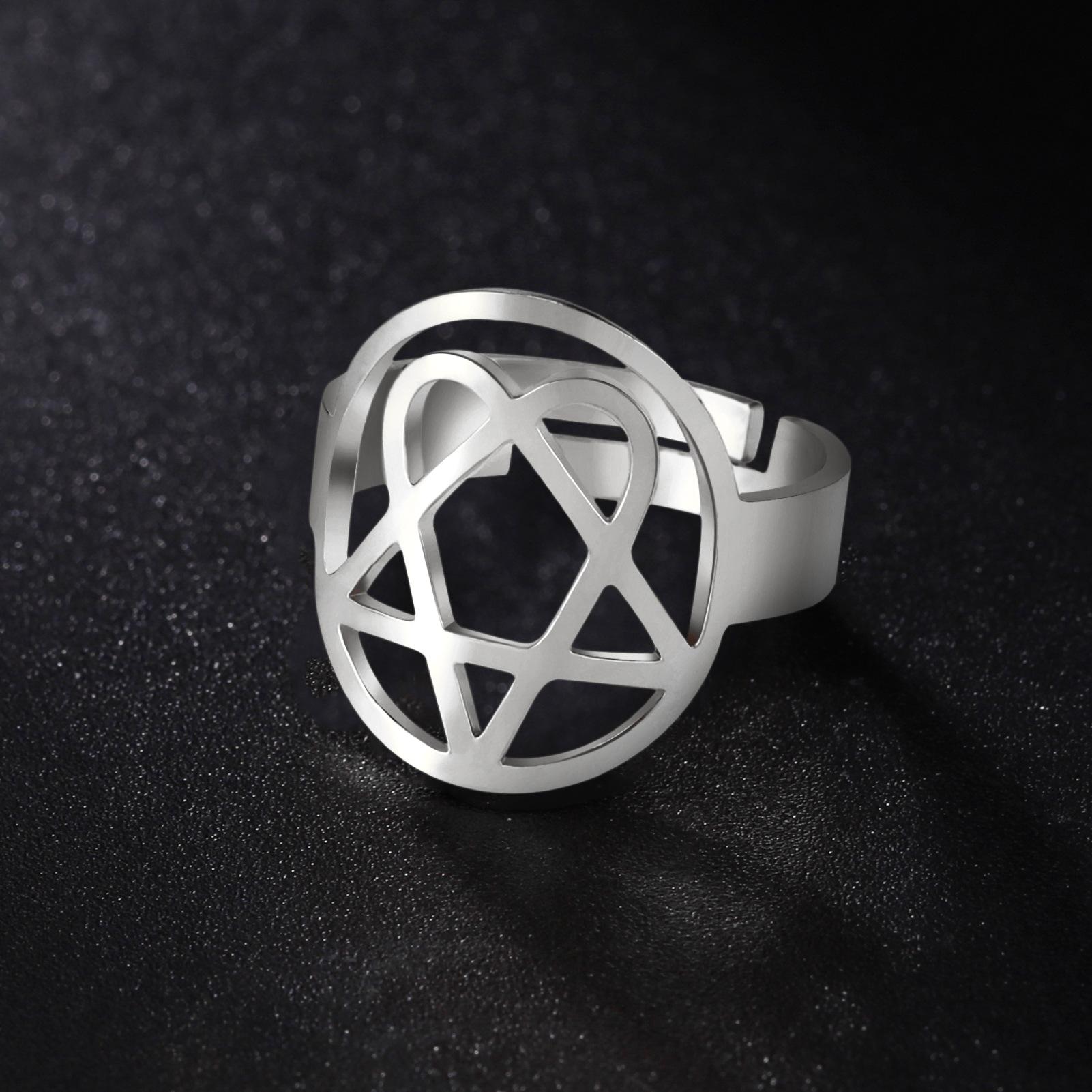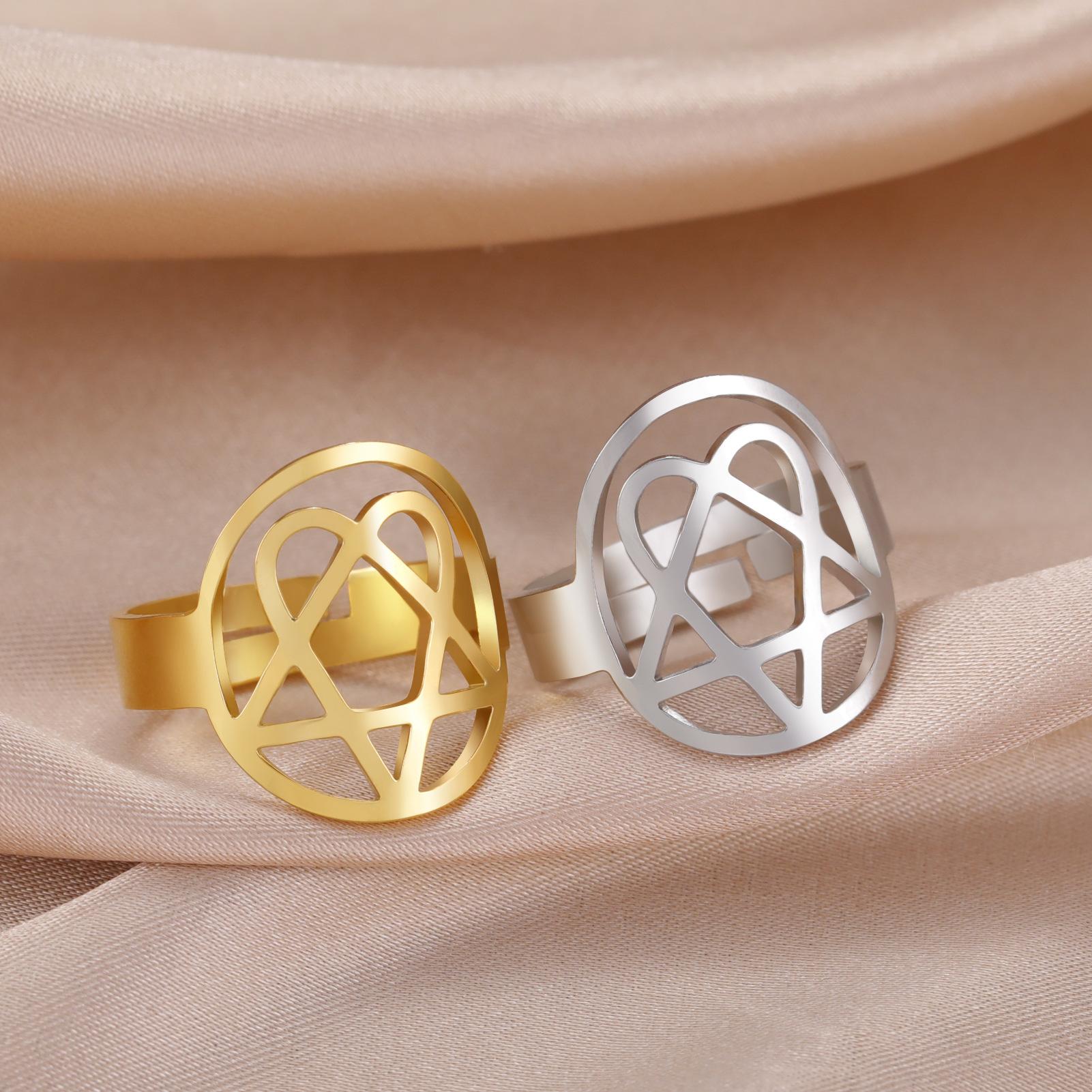 Anillo Transfronterizo Europeo y Americano en Forma de Corazón Anillo Ajustable de Acero Titanio para Mujer Anillo Abierto Geométrico Retro en Forma de Corazón de Acero Inoxidable