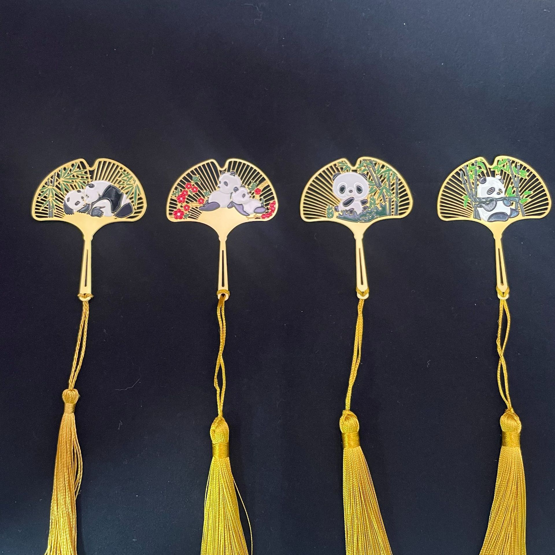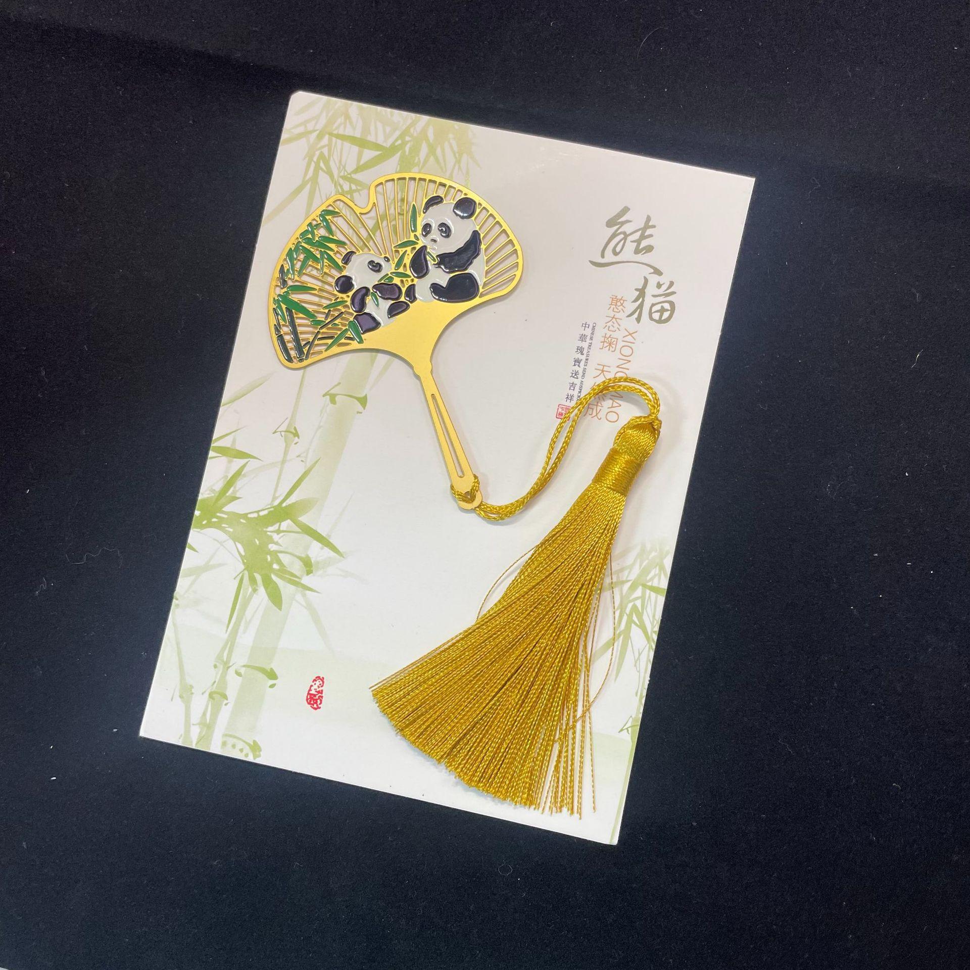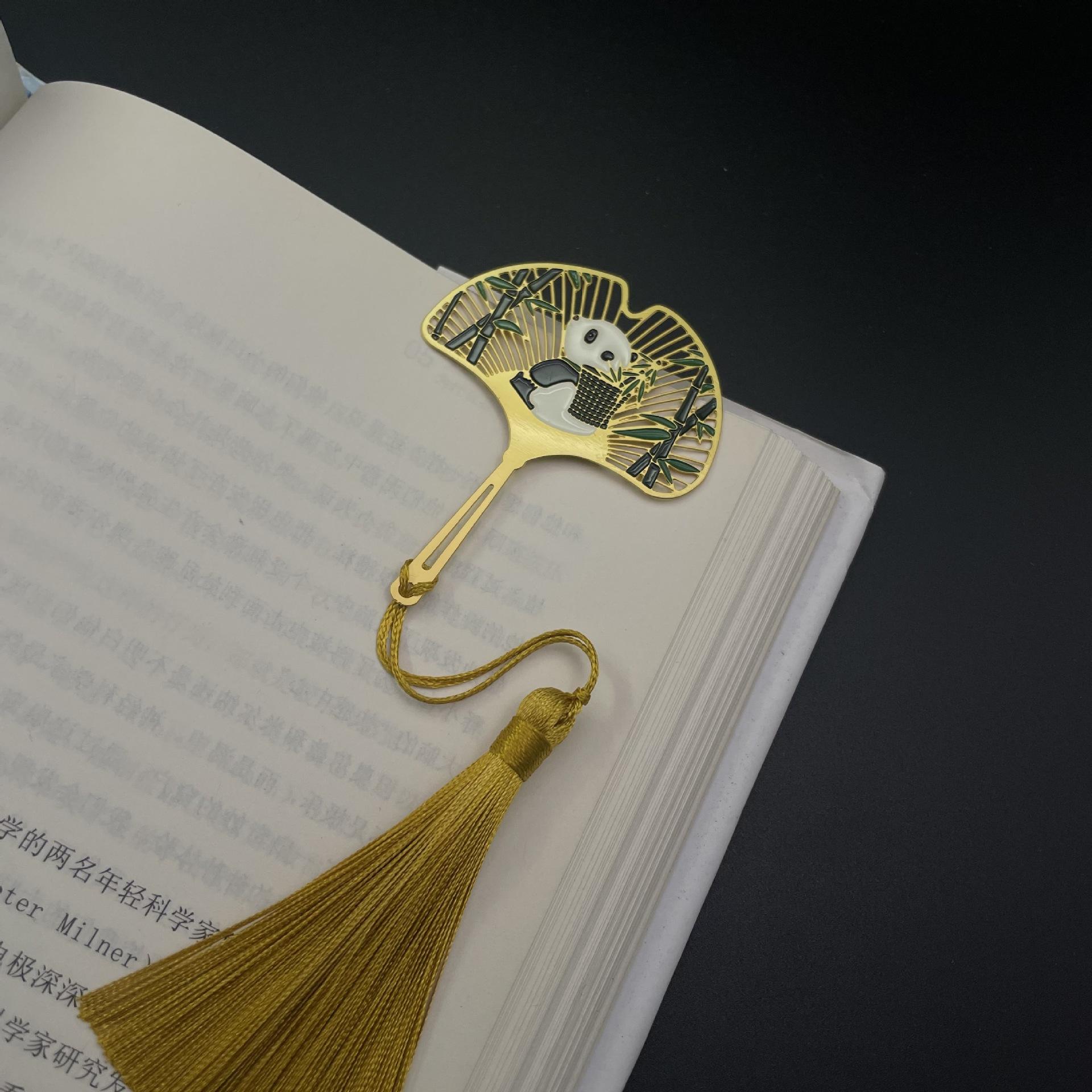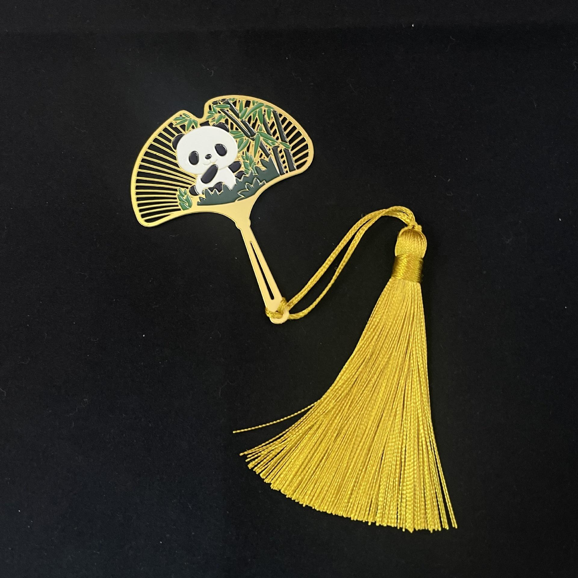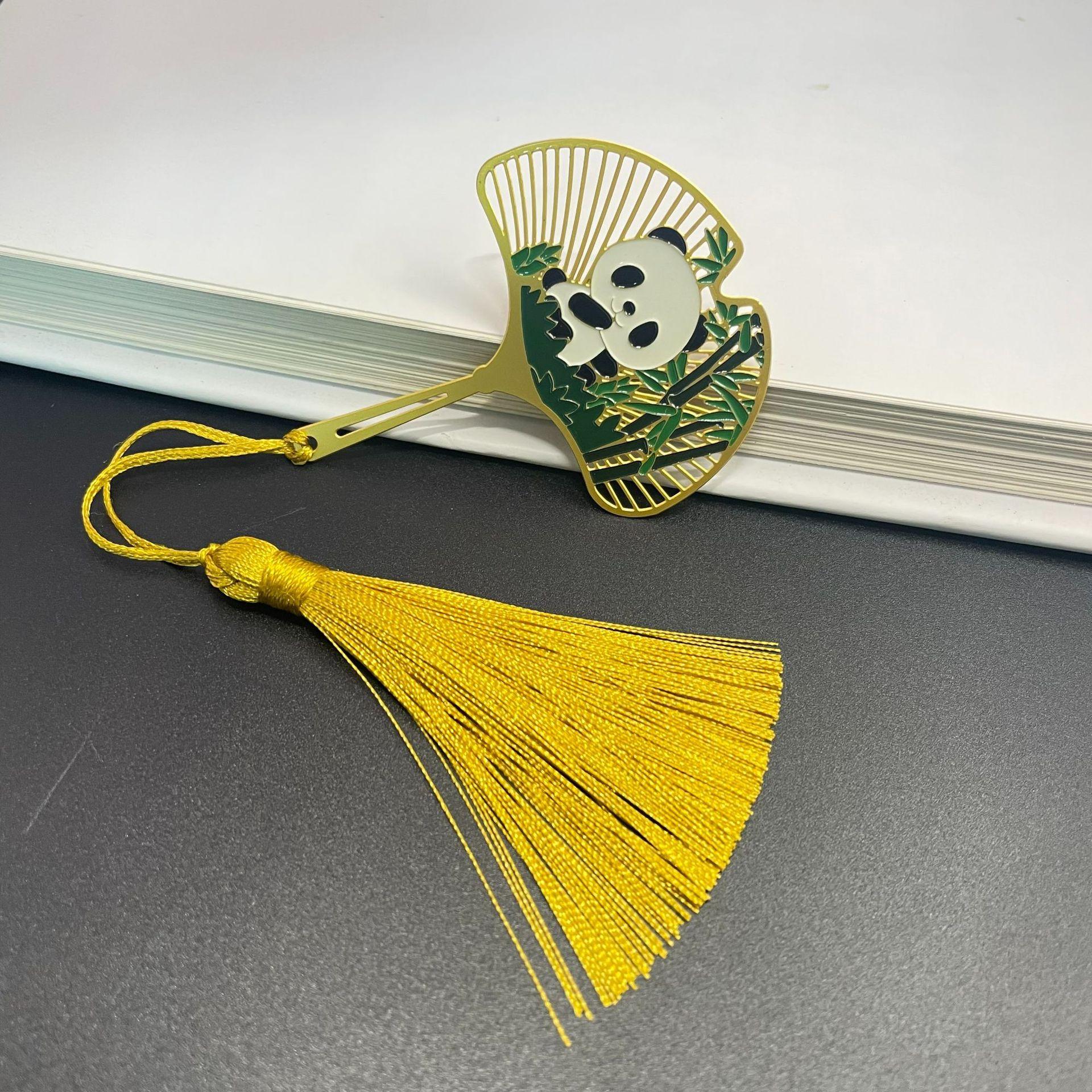 Separador de Libros Metálico de Panda Impresión de Chengdu Abanico de Bambú Colgante de Dibujos Animados Estilo Chino Borla Exquisita Etiqueta de Lectura