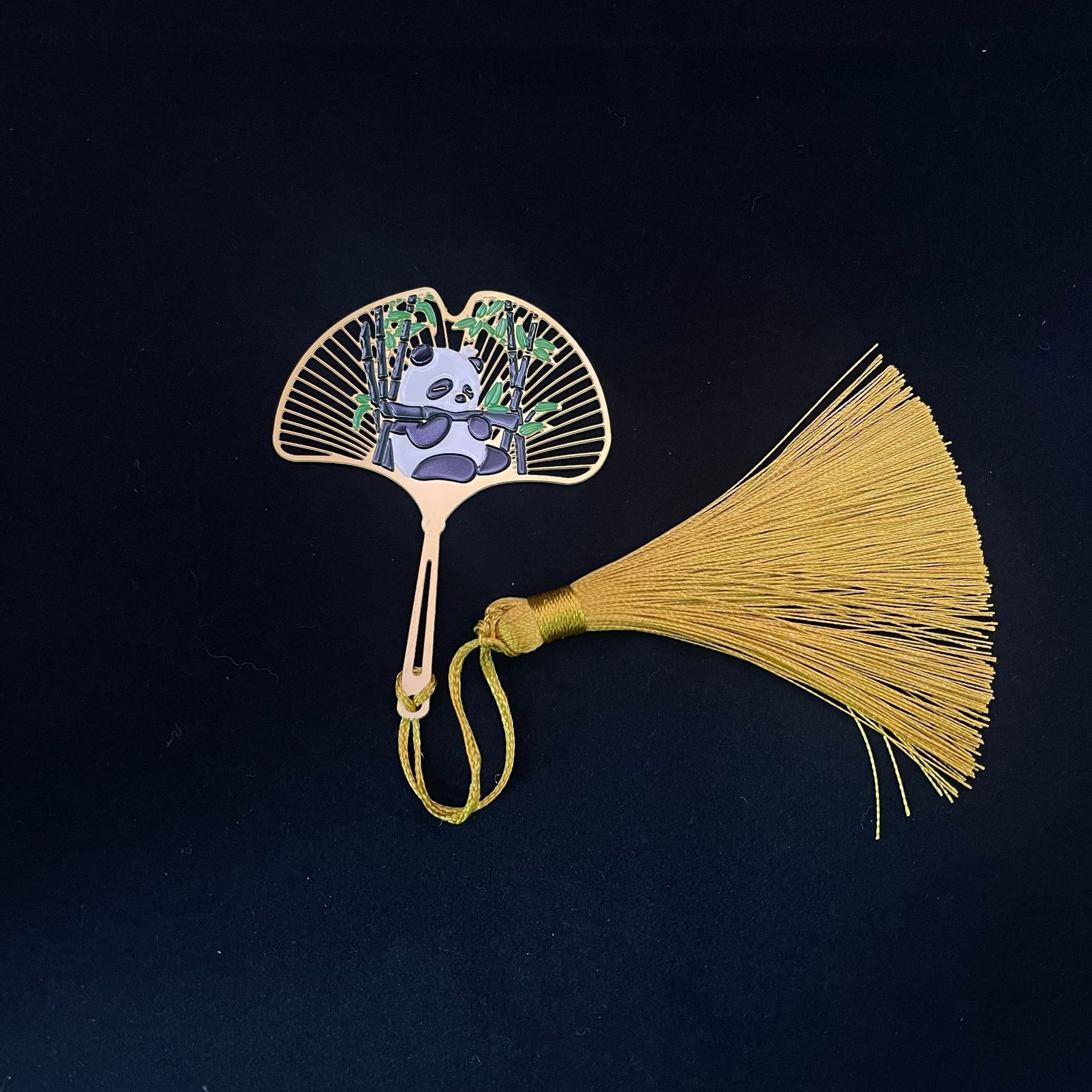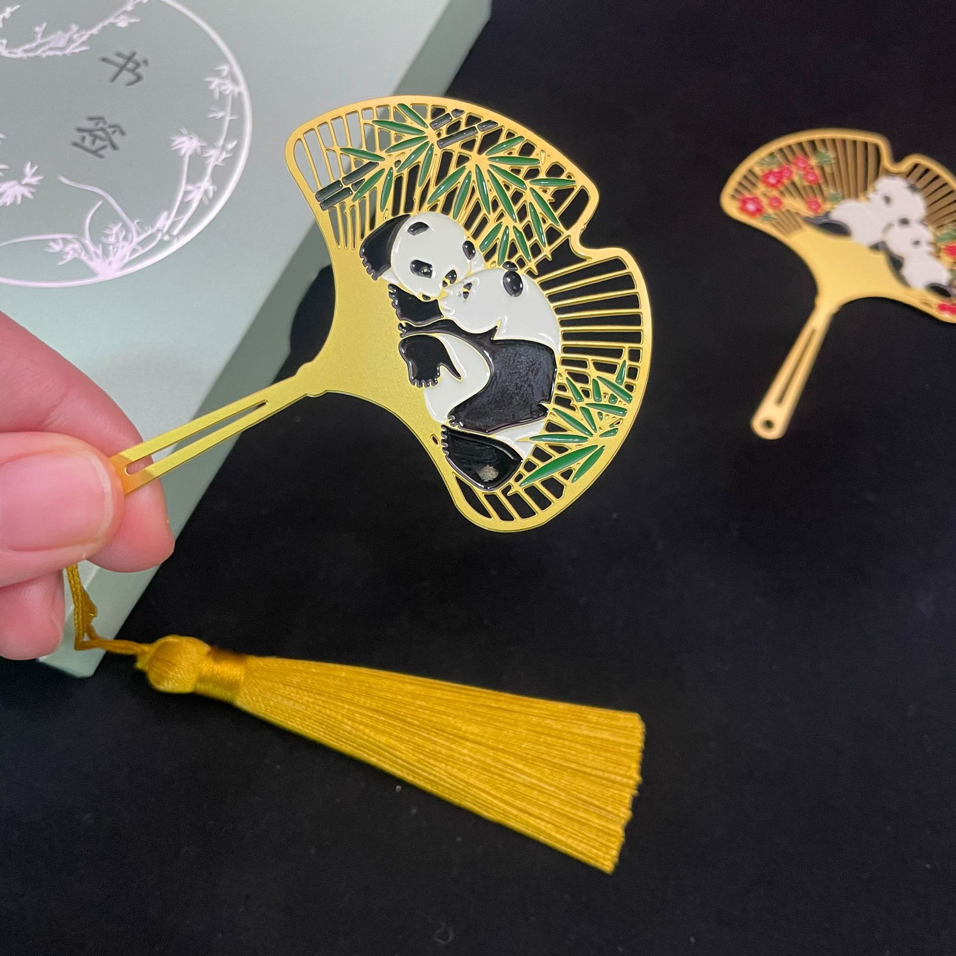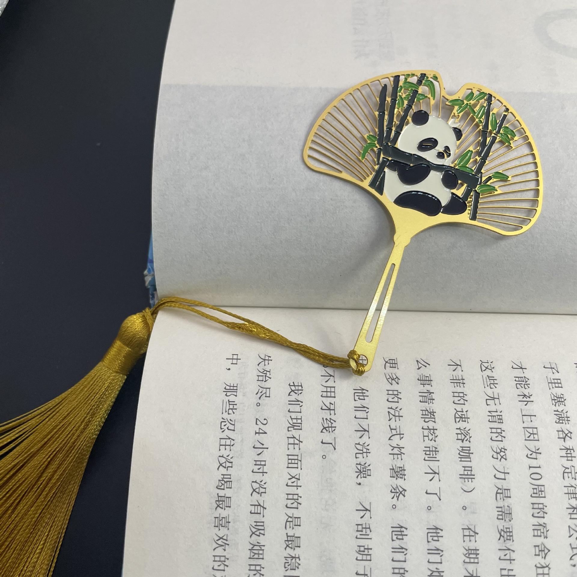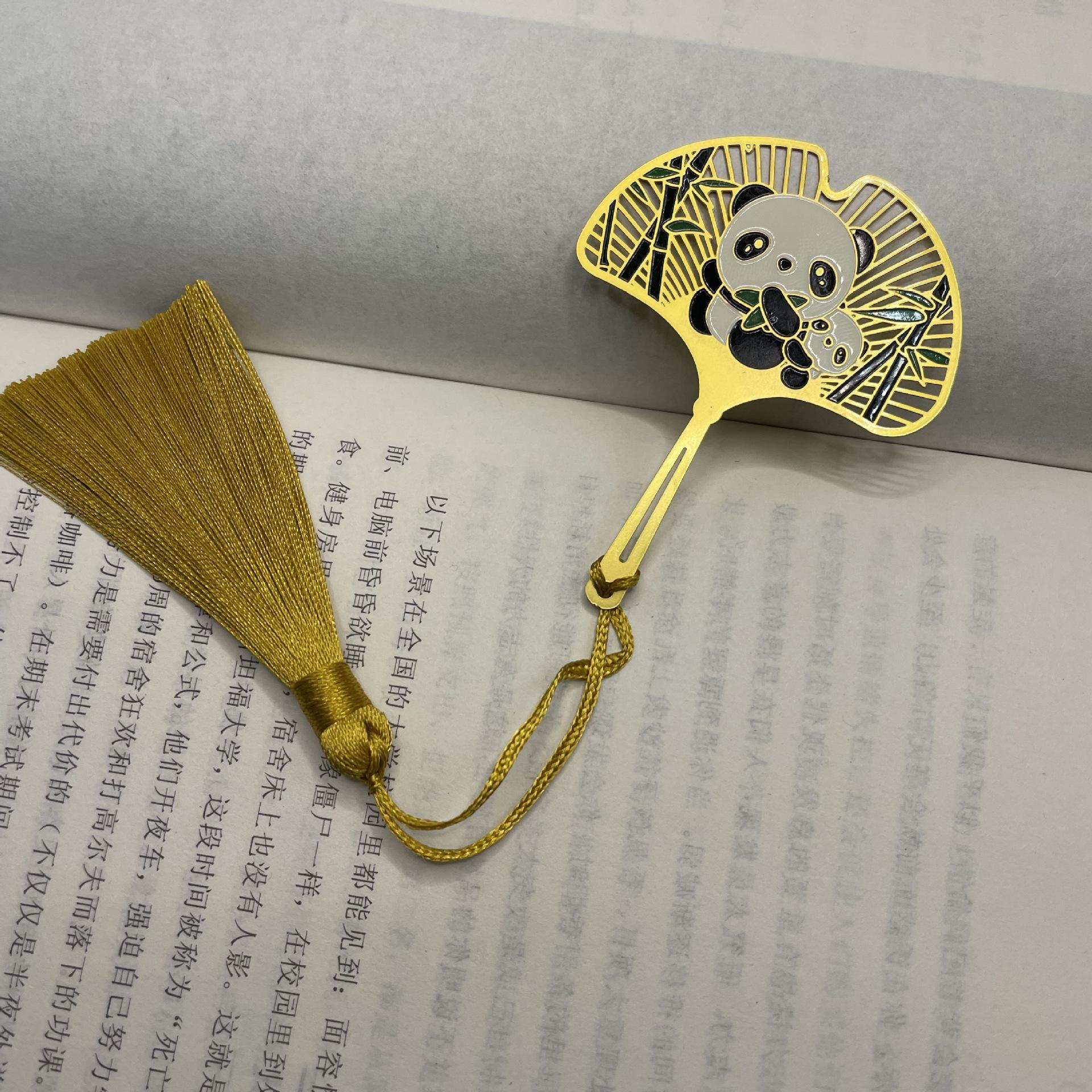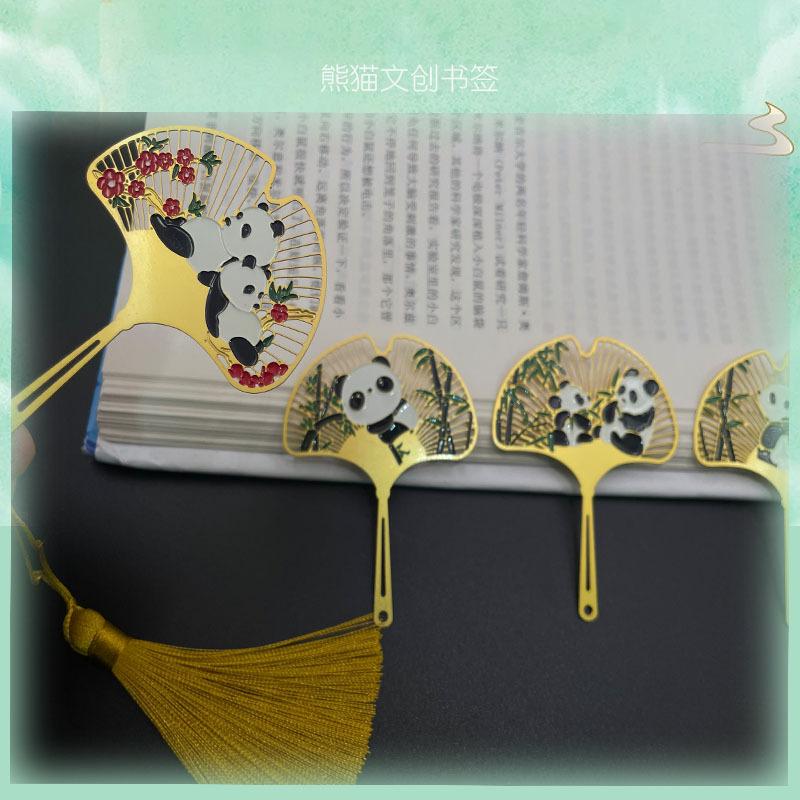 Separador de Libros Metálico de Panda Impresión de Chengdu Abanico de Bambú Colgante de Dibujos Animados Estilo Chino Borla Exquisita Etiqueta de Lectura