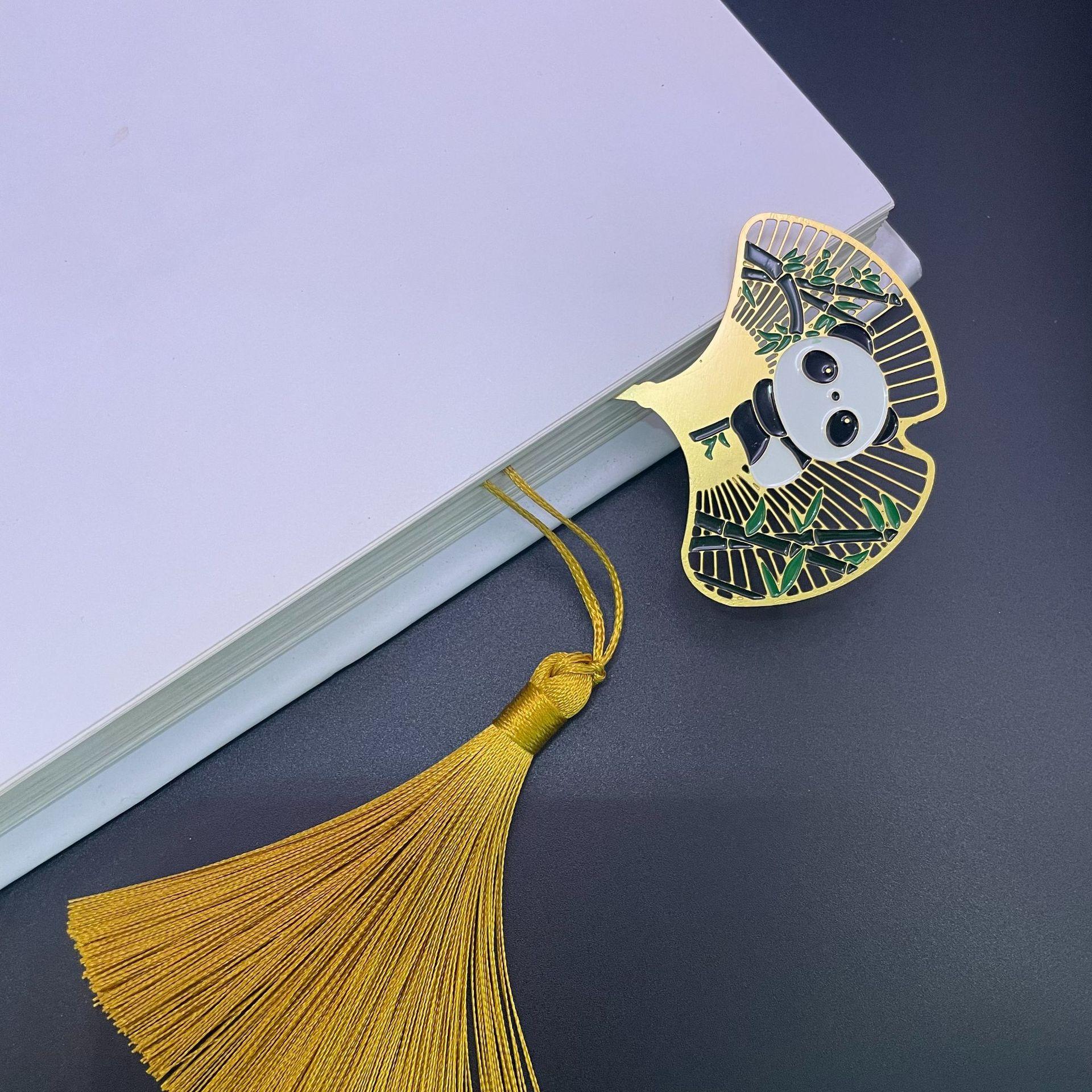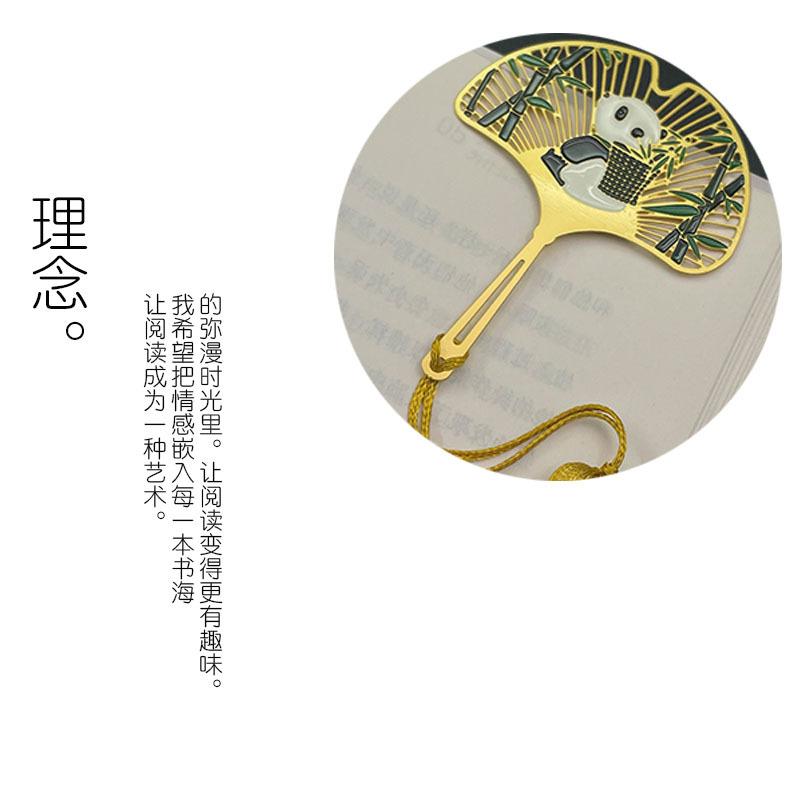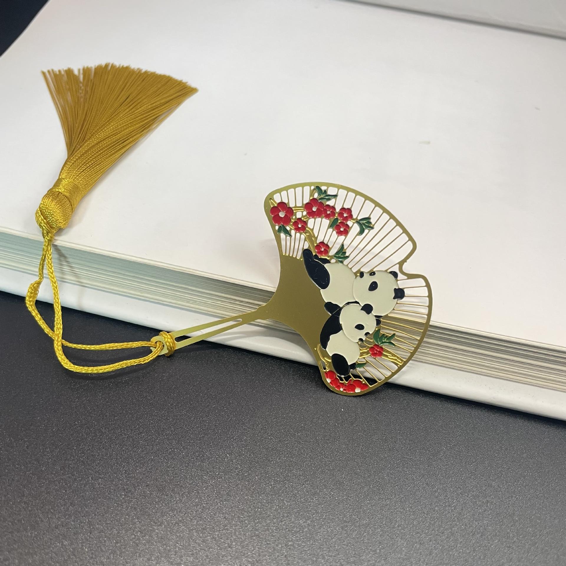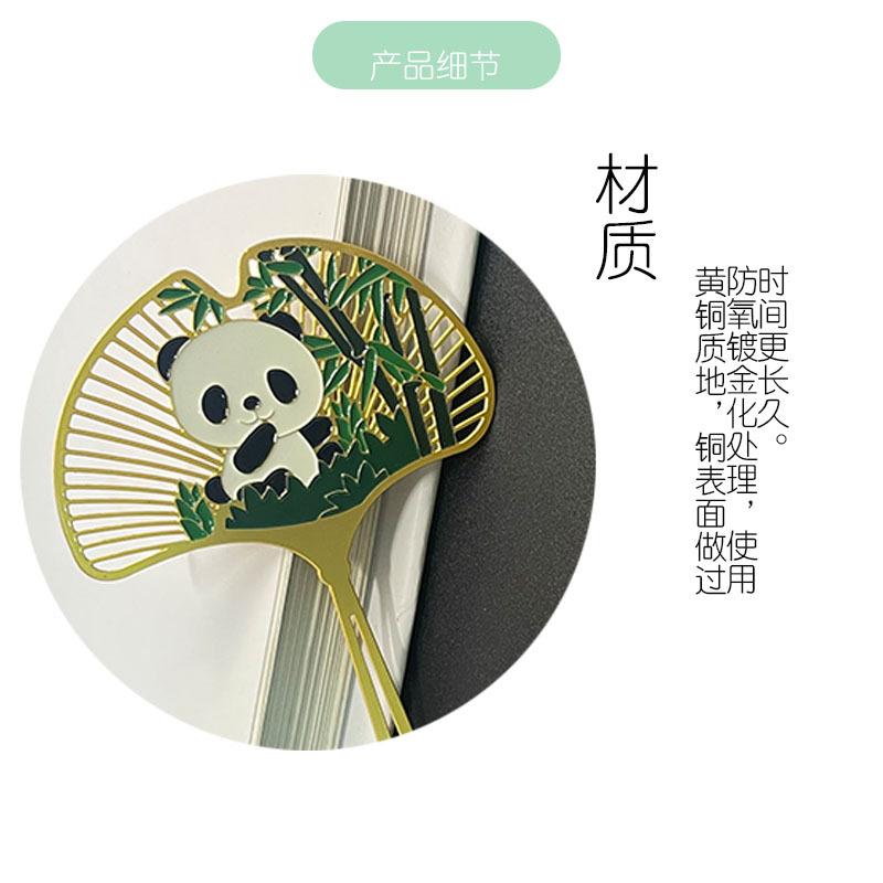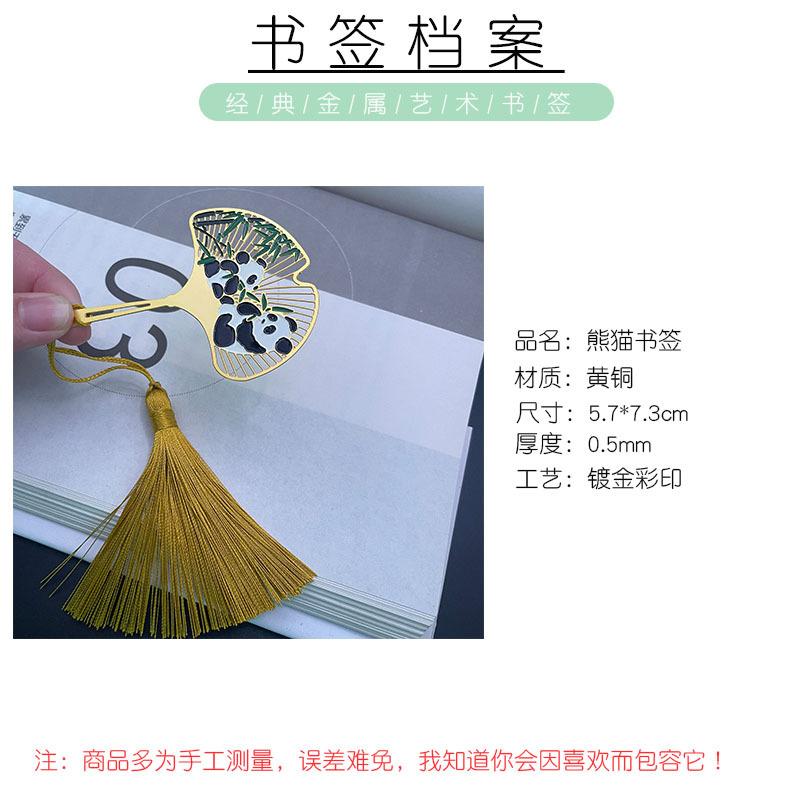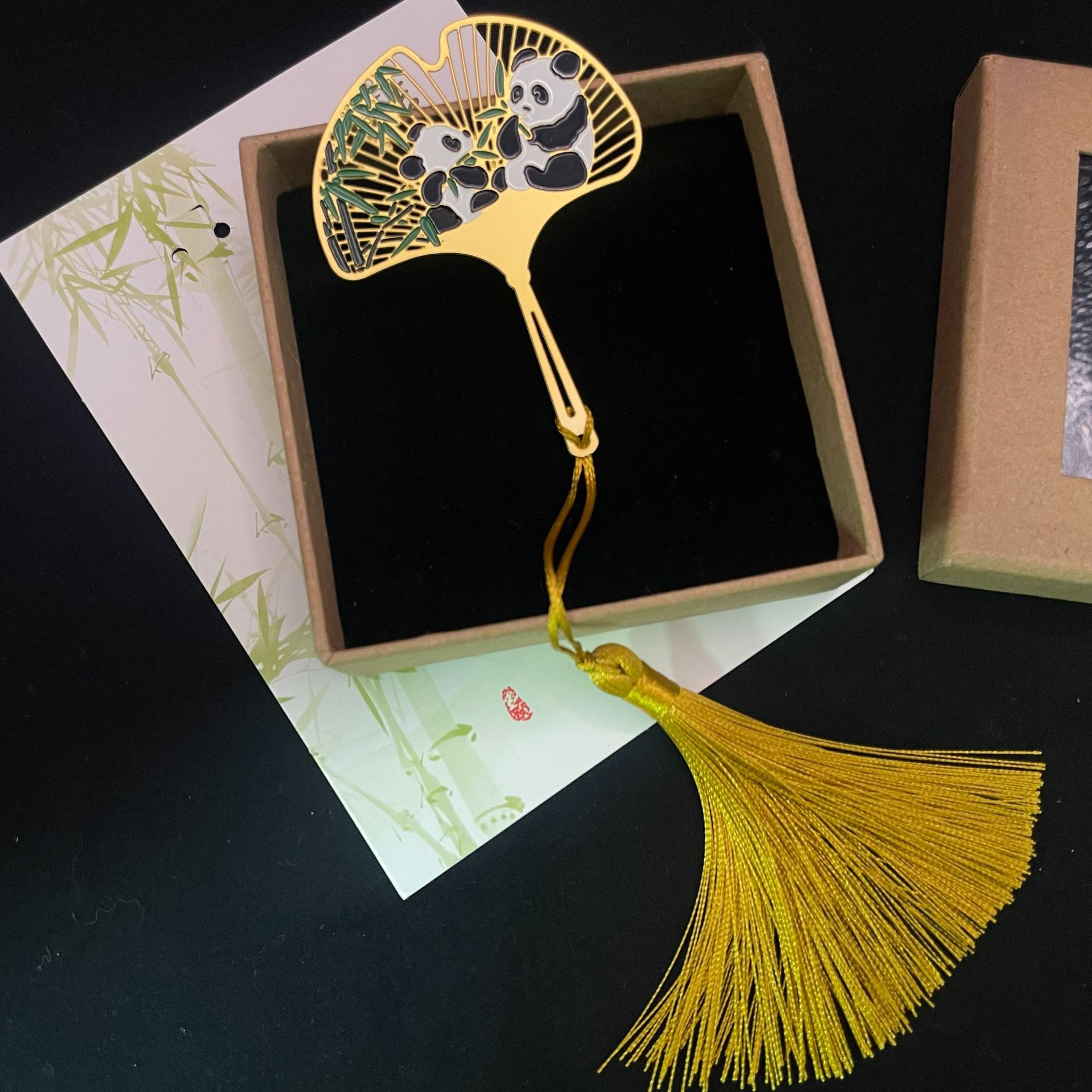 Separador de Libros Metálico de Panda Impresión de Chengdu Abanico de Bambú Colgante de Dibujos Animados Estilo Chino Borla Exquisita Etiqueta de Lectura