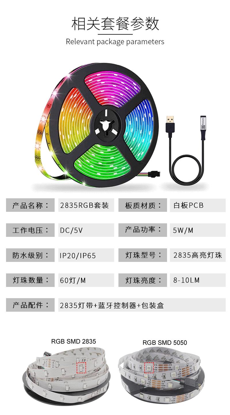 Tira de Luz Colorida Rgb 5V Bajo Voltaje 2835 Control Remoto Bluetooth Música Led5050 Tira de Luz Luz Decorativa para TV Regulable