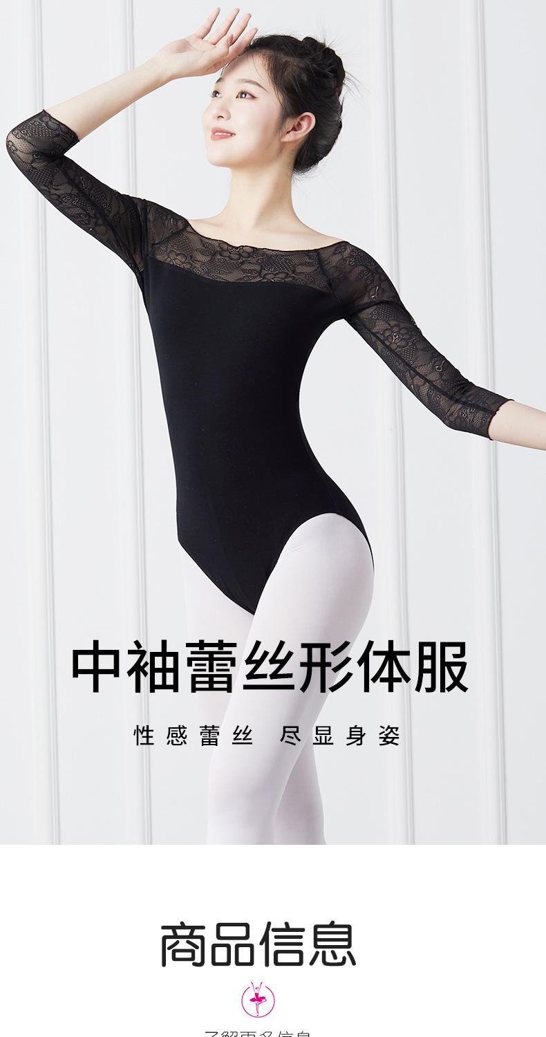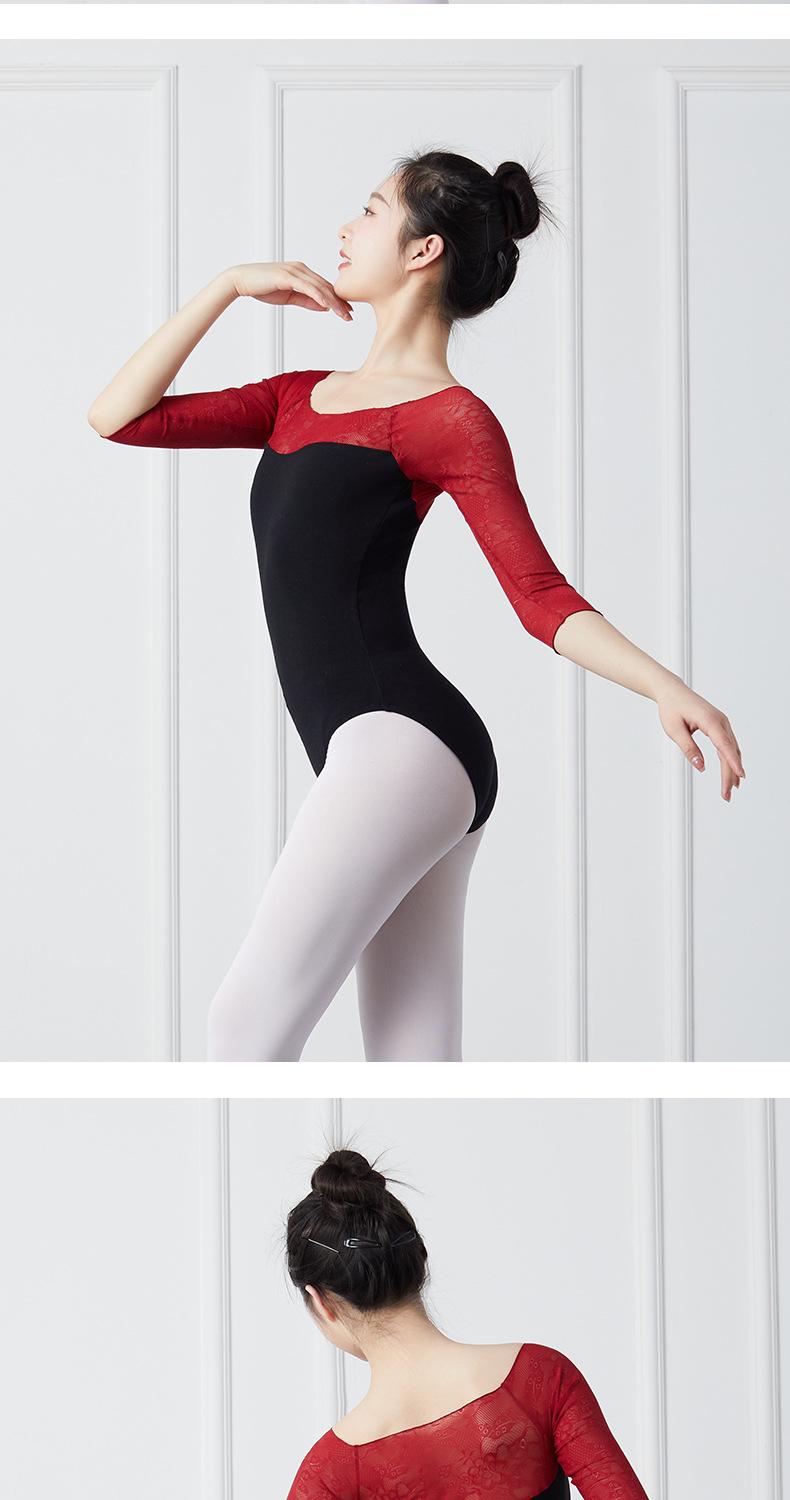 Compra Conjunto de Práctica de Ballet para Mujeres Adultas, Ropa de Danza para Entrenamiento Básico de Gimnasia, Maillot de Encaje de Manga Media, Algodón al por mayor en Joom.pro