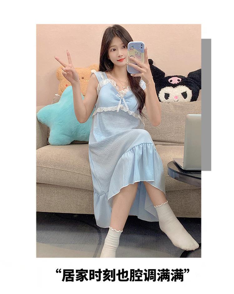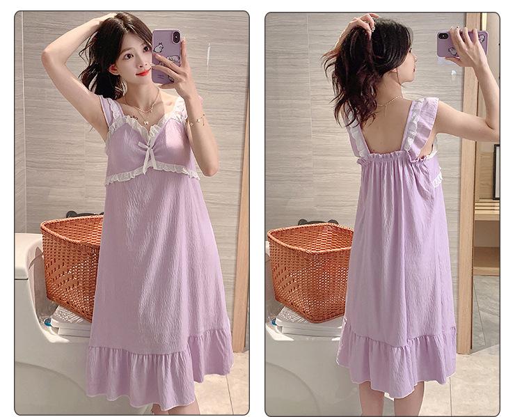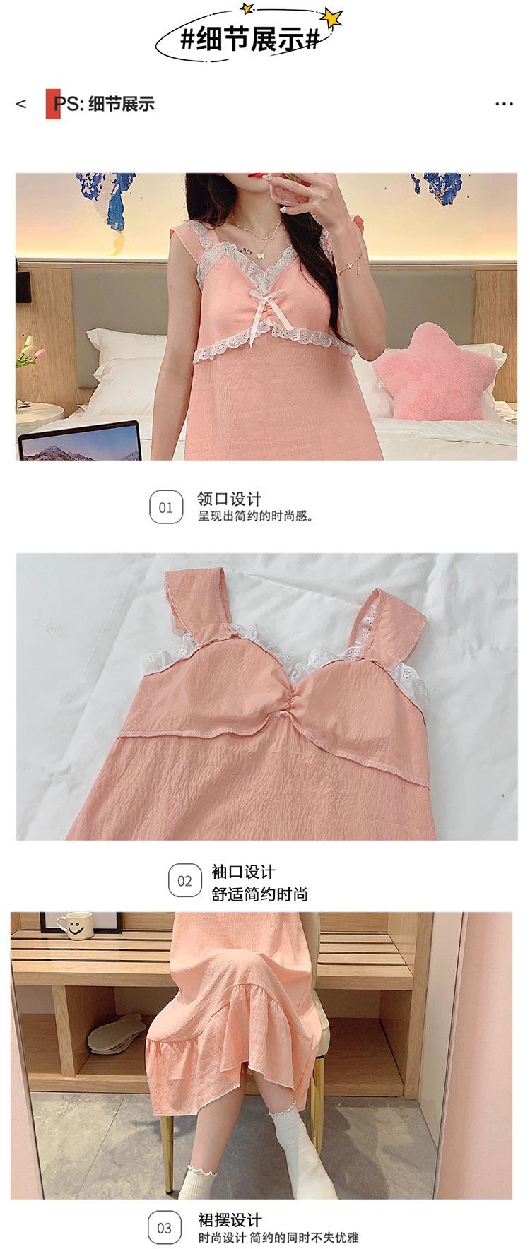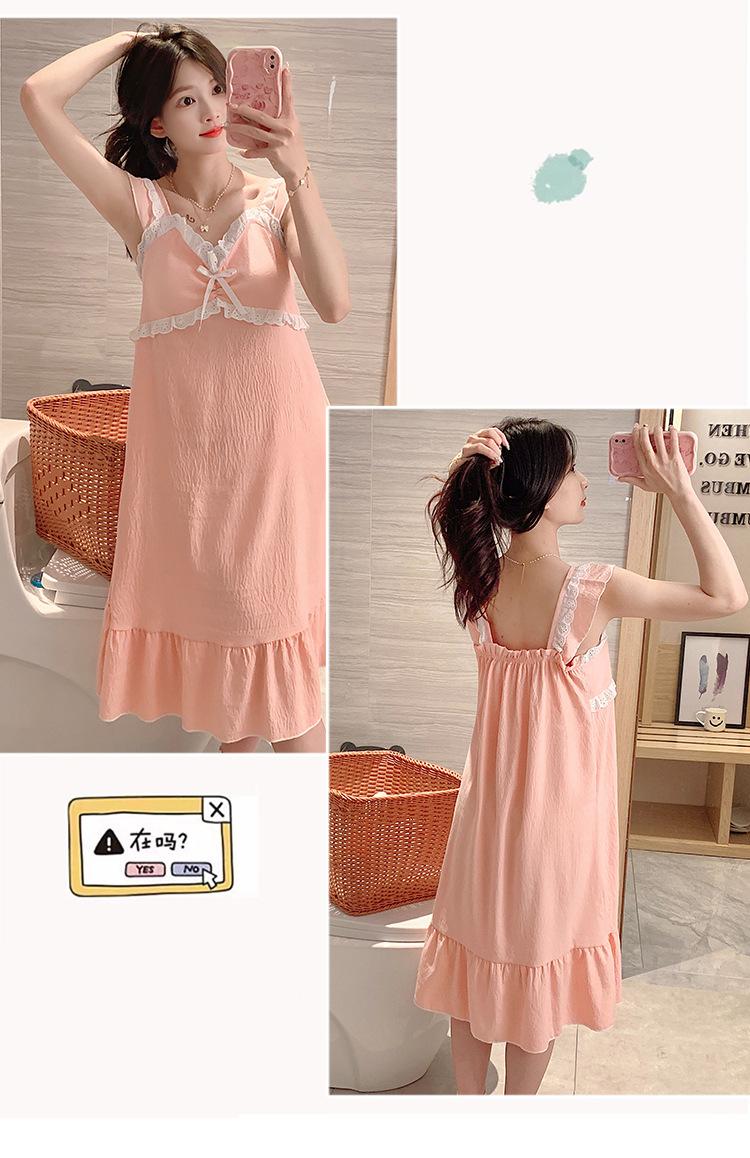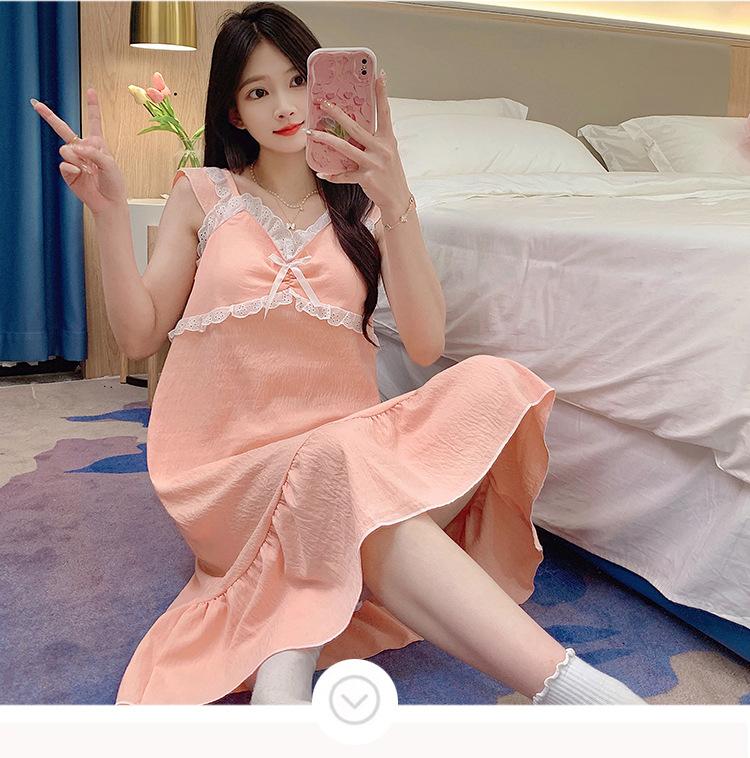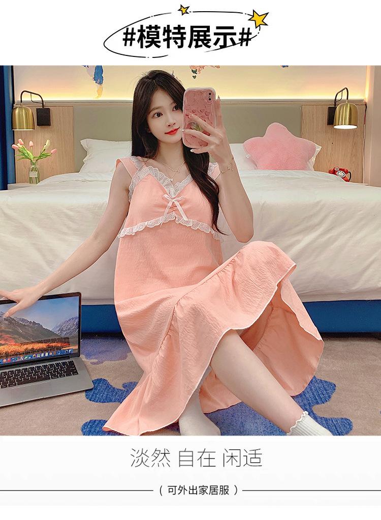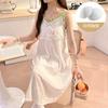 Camisón de verano para mujer, bonito y dulce, con almohadilla para el pecho, desmontable, de longitud media, holgado, para exteriores, ropa de casa