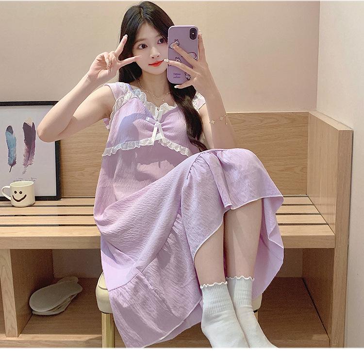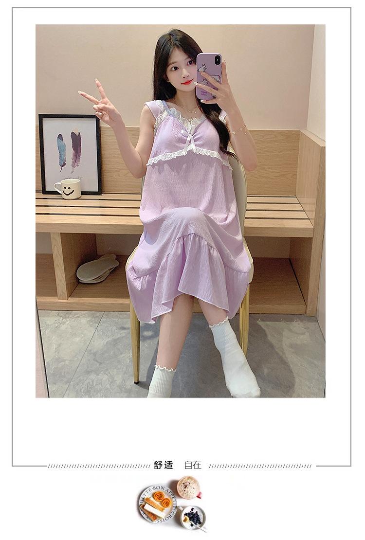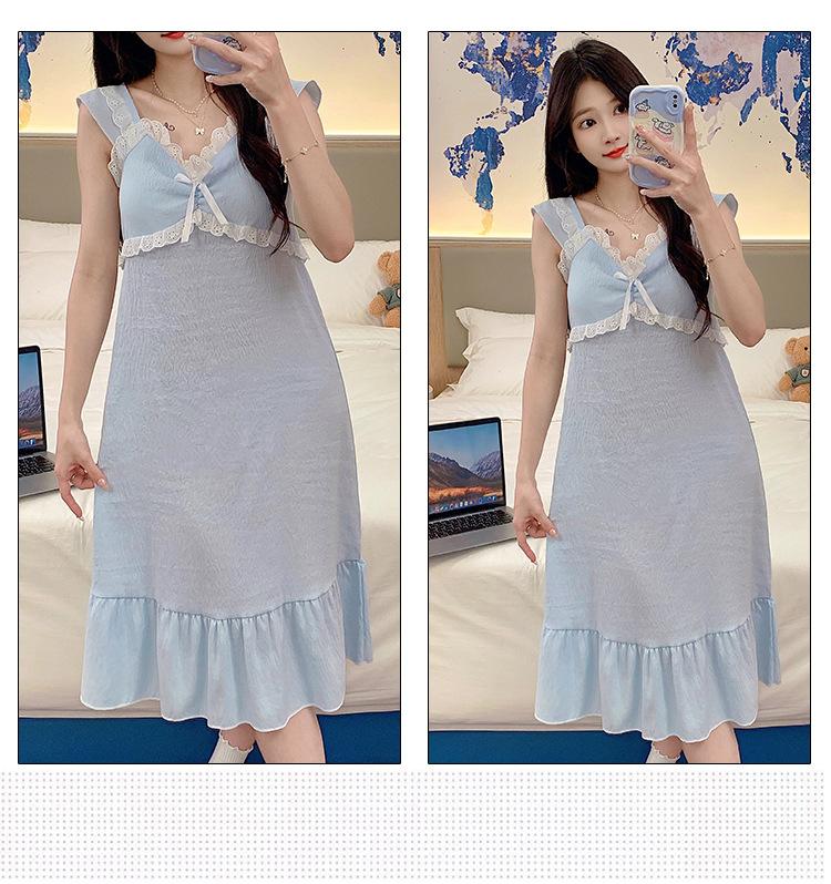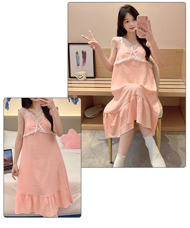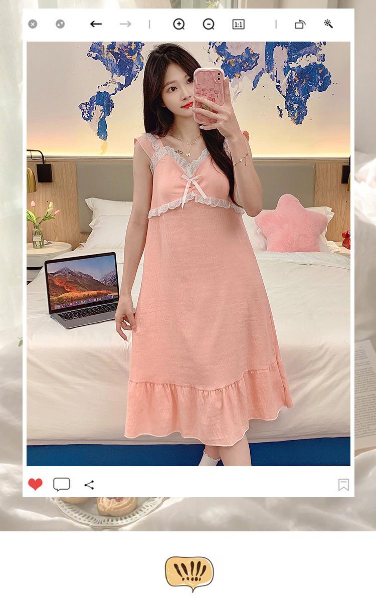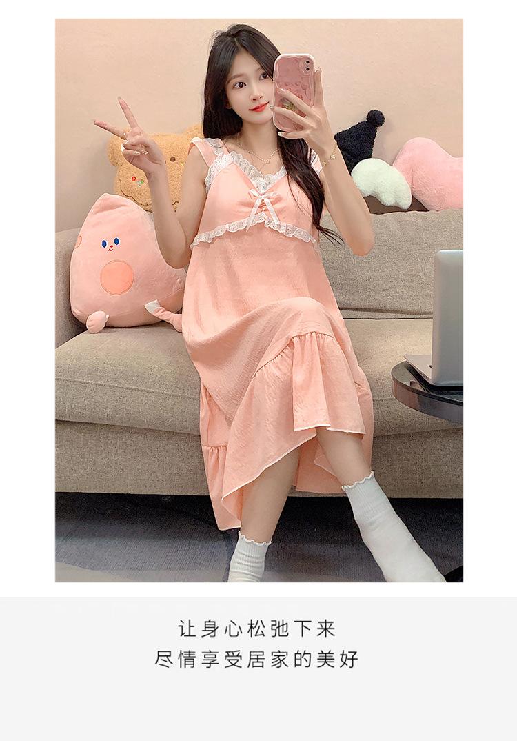 Camisón de verano para mujer, bonito y dulce, con almohadilla para el pecho, desmontable, de longitud media, holgado, para exteriores, ropa de casa