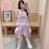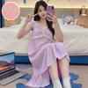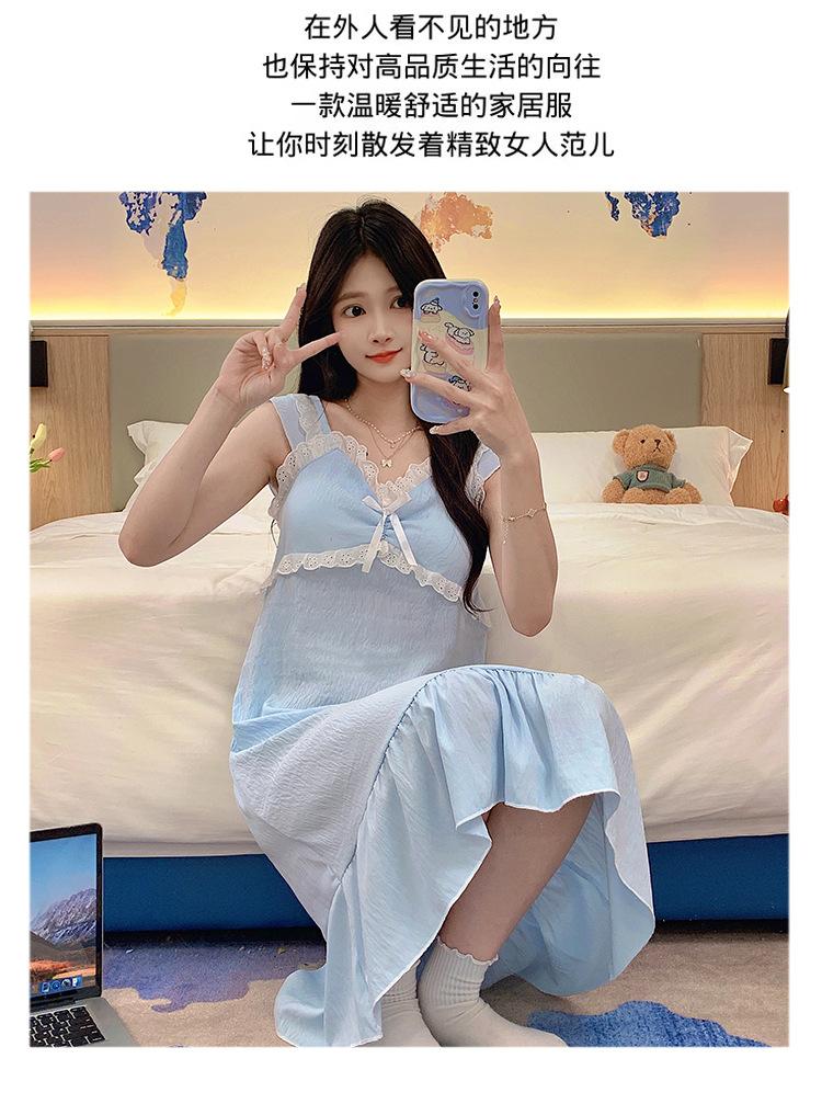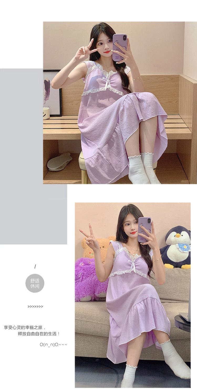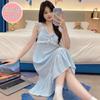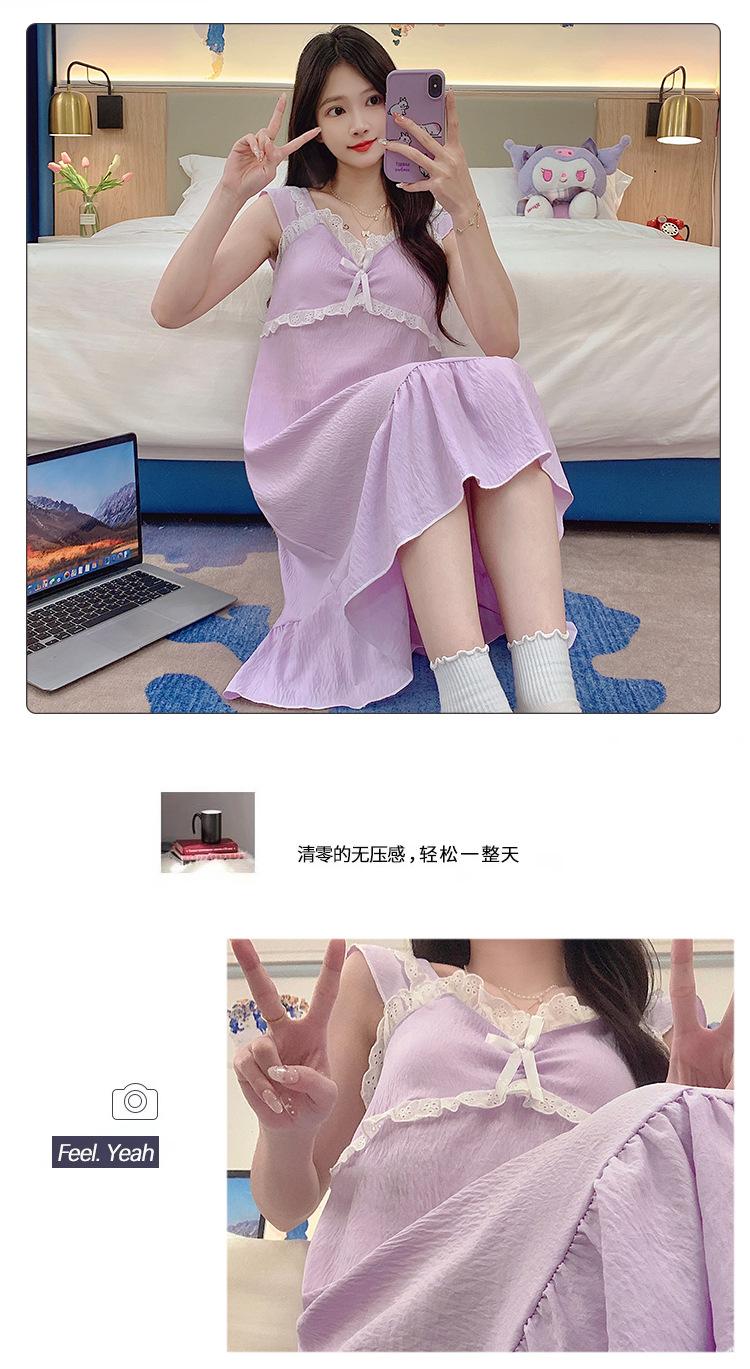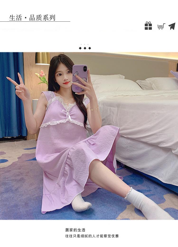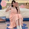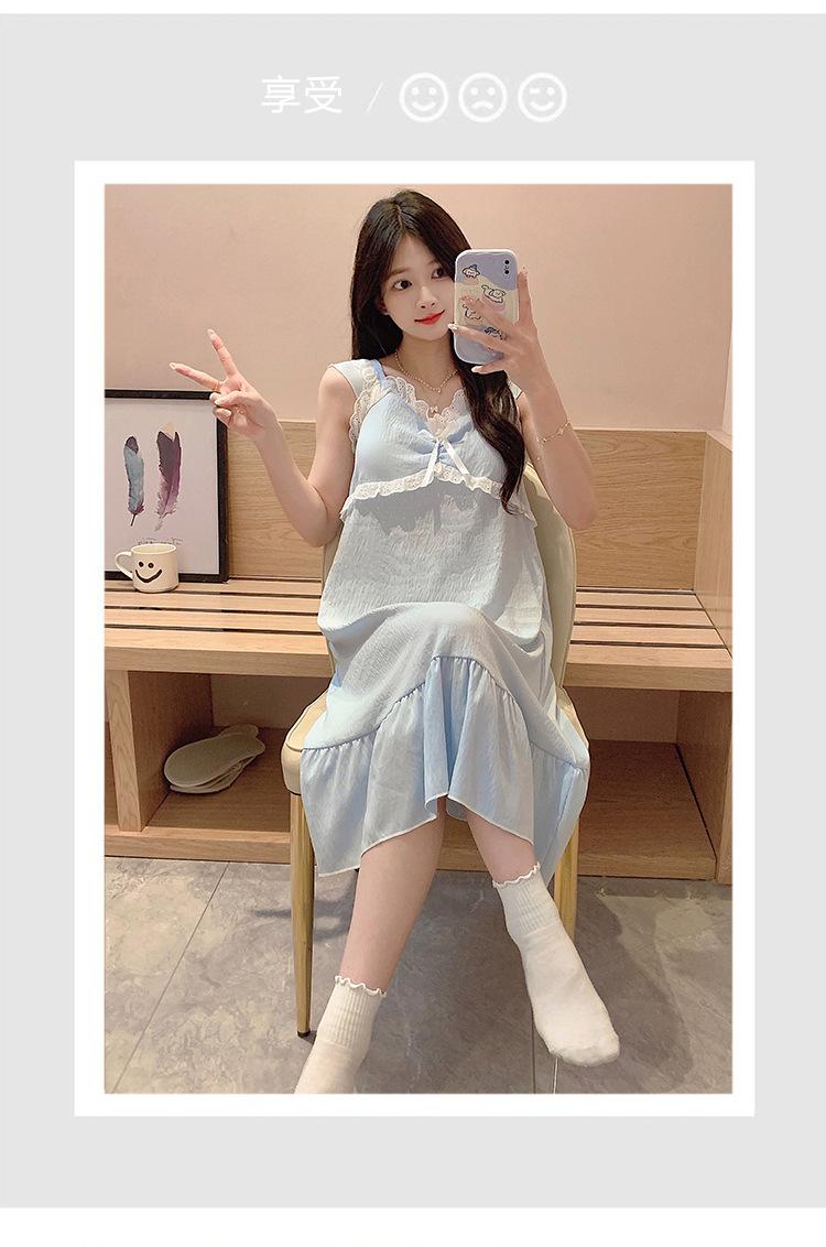 Camisón de verano para mujer, bonito y dulce, con almohadilla para el pecho, desmontable, de longitud media, holgado, para exteriores, ropa de casa