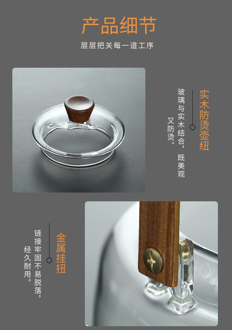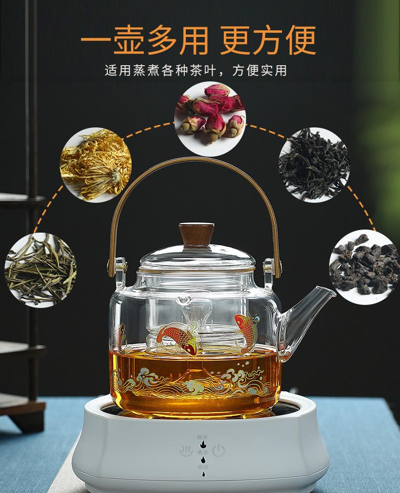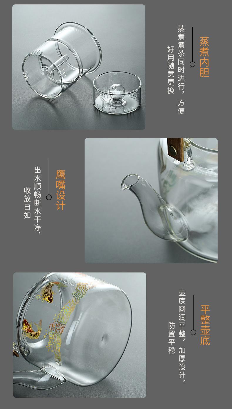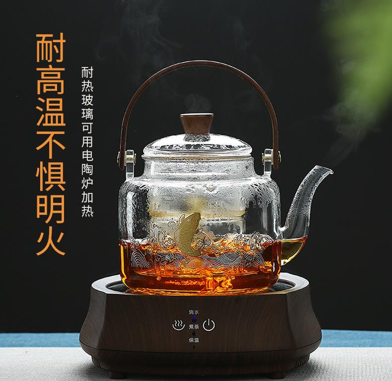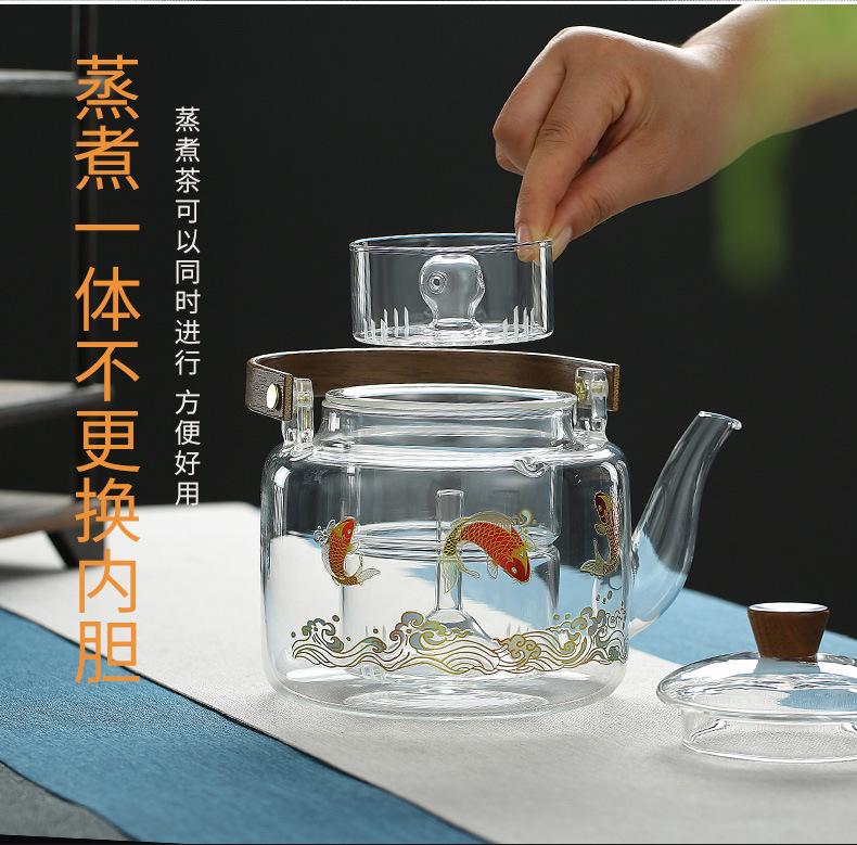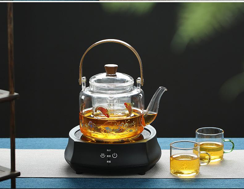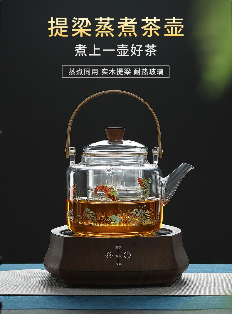 Tetera de vidrio con viga elevadora al por mayor, tetera para hervir té, tetera para cocinar, olla doble para cocinar, tetera integrada, tetera de punto