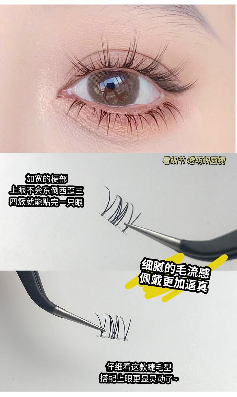 Pestañas Inferiores Dopamine Girl Pestañas Postizas Racimo Individual Segmentadas Tallo Transparente Pequeño Demonio Naturales Artificiales Tipo Madre