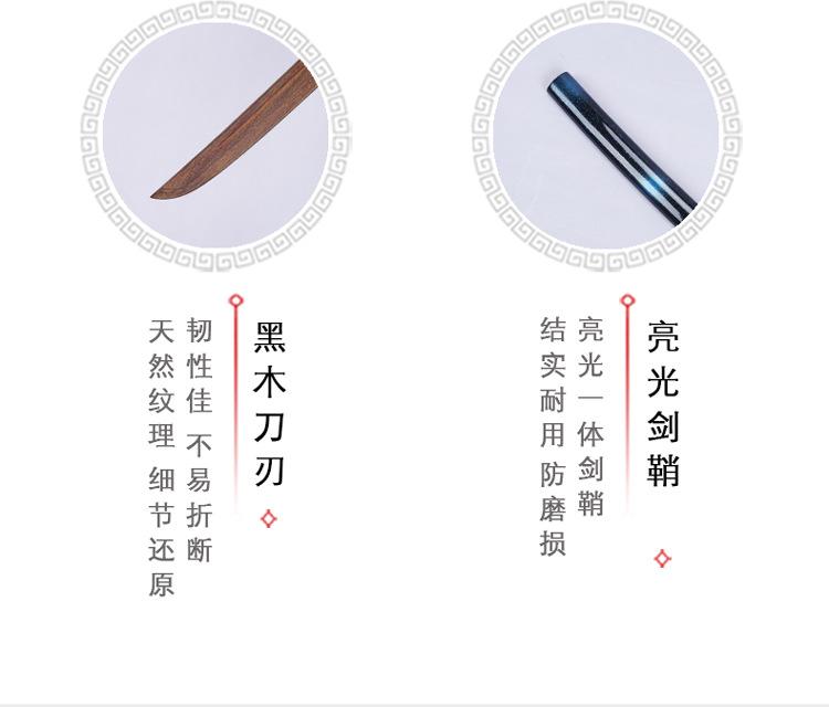 Hoja fantasma de ala de pollo de madera negra, hoja de bambú de anime de madera, accesorios, cuchillo de madera, hoja periférica sin abrir, venta al por mayor, dibujos animados