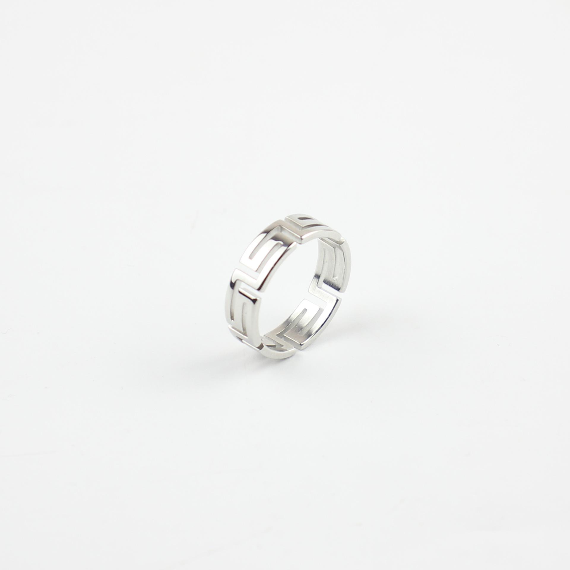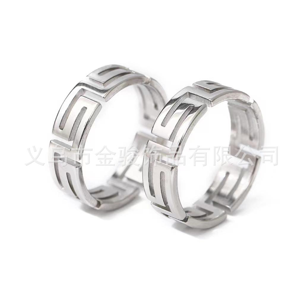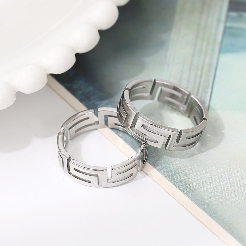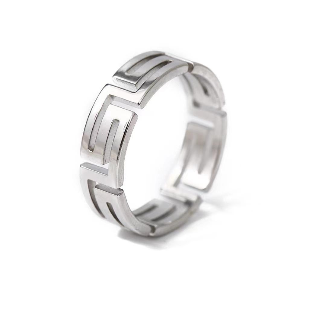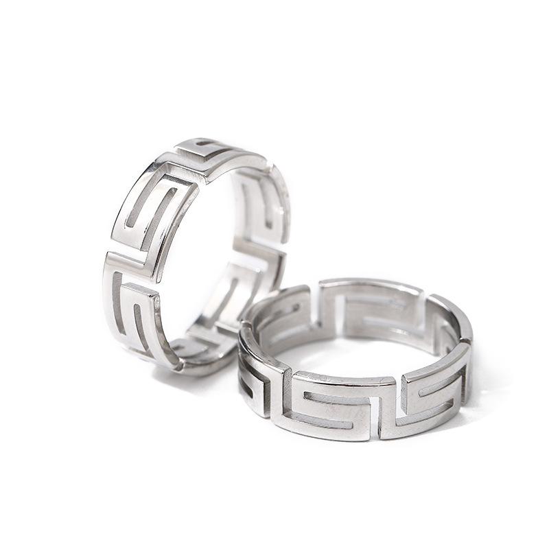 Anillo de Acero de Titanio con Corte Láser Frío Tide Patrón Gran Muralla Luz Lujo Nicho Acero Inoxidable Hueco Palindrómico