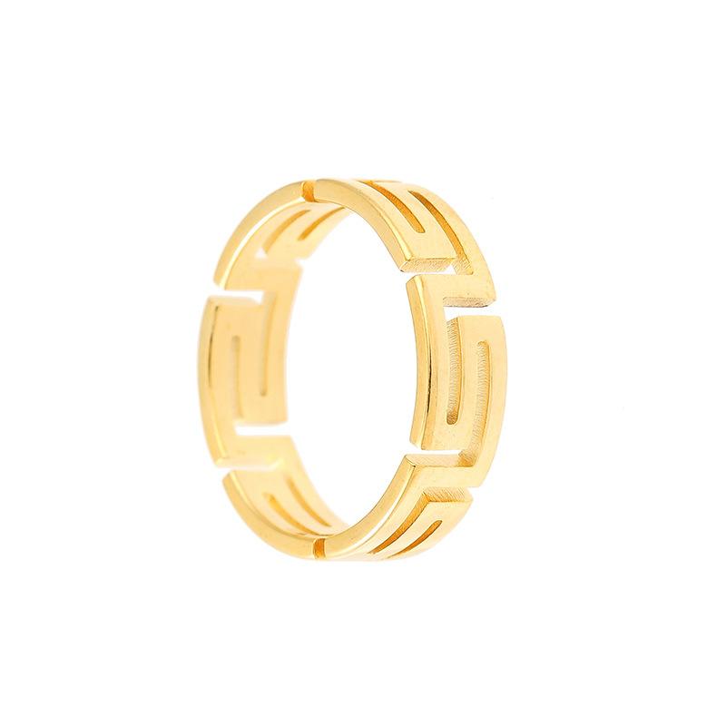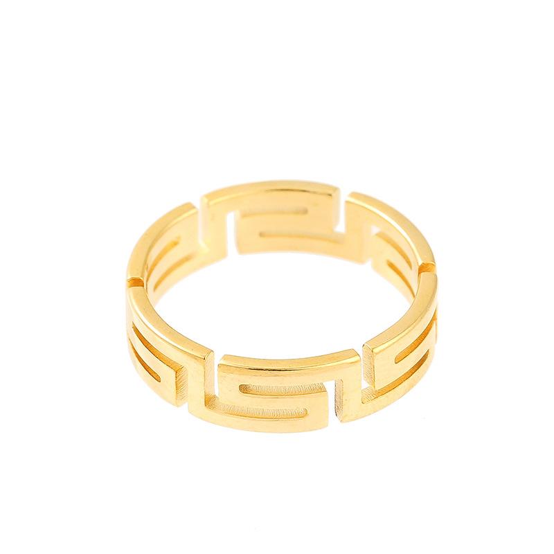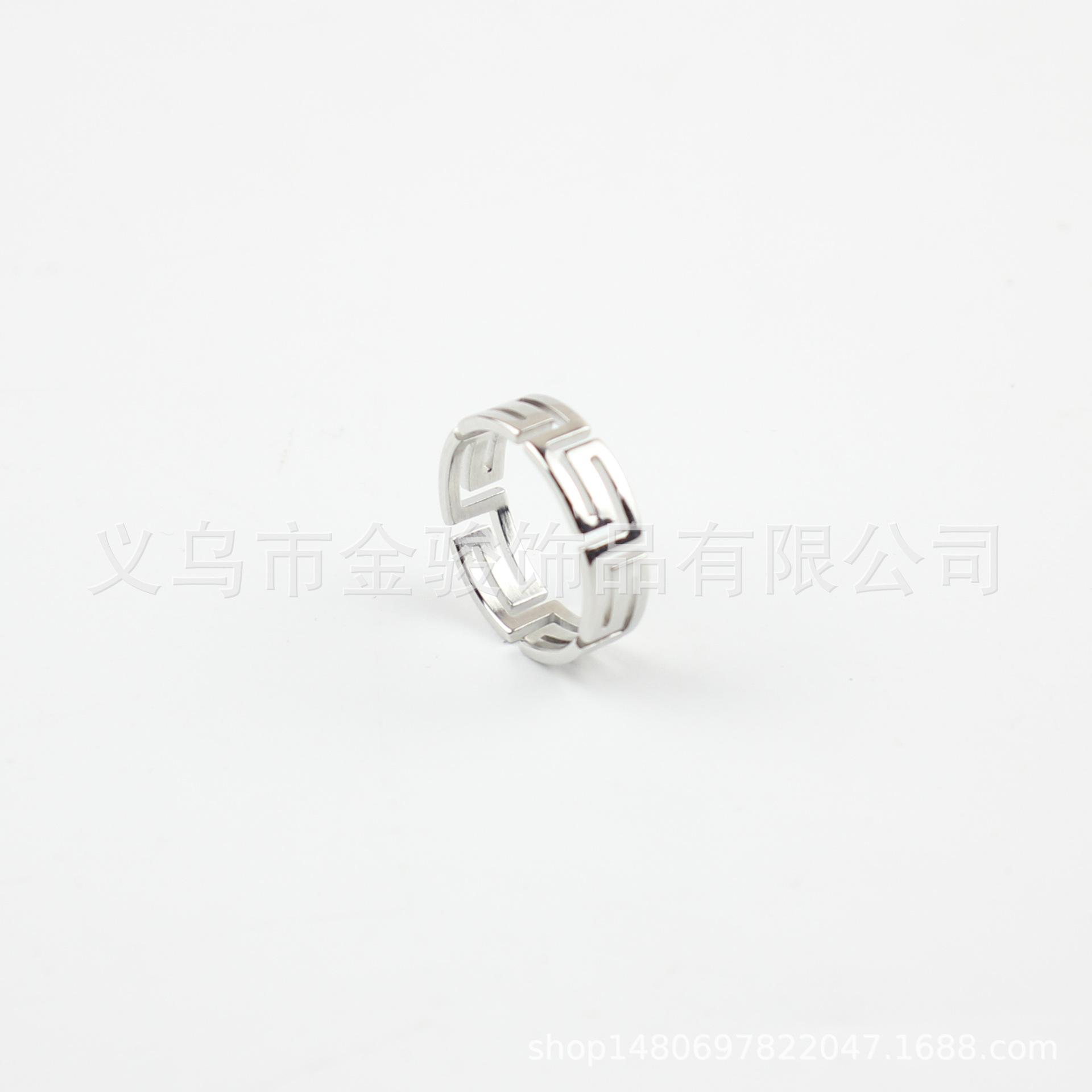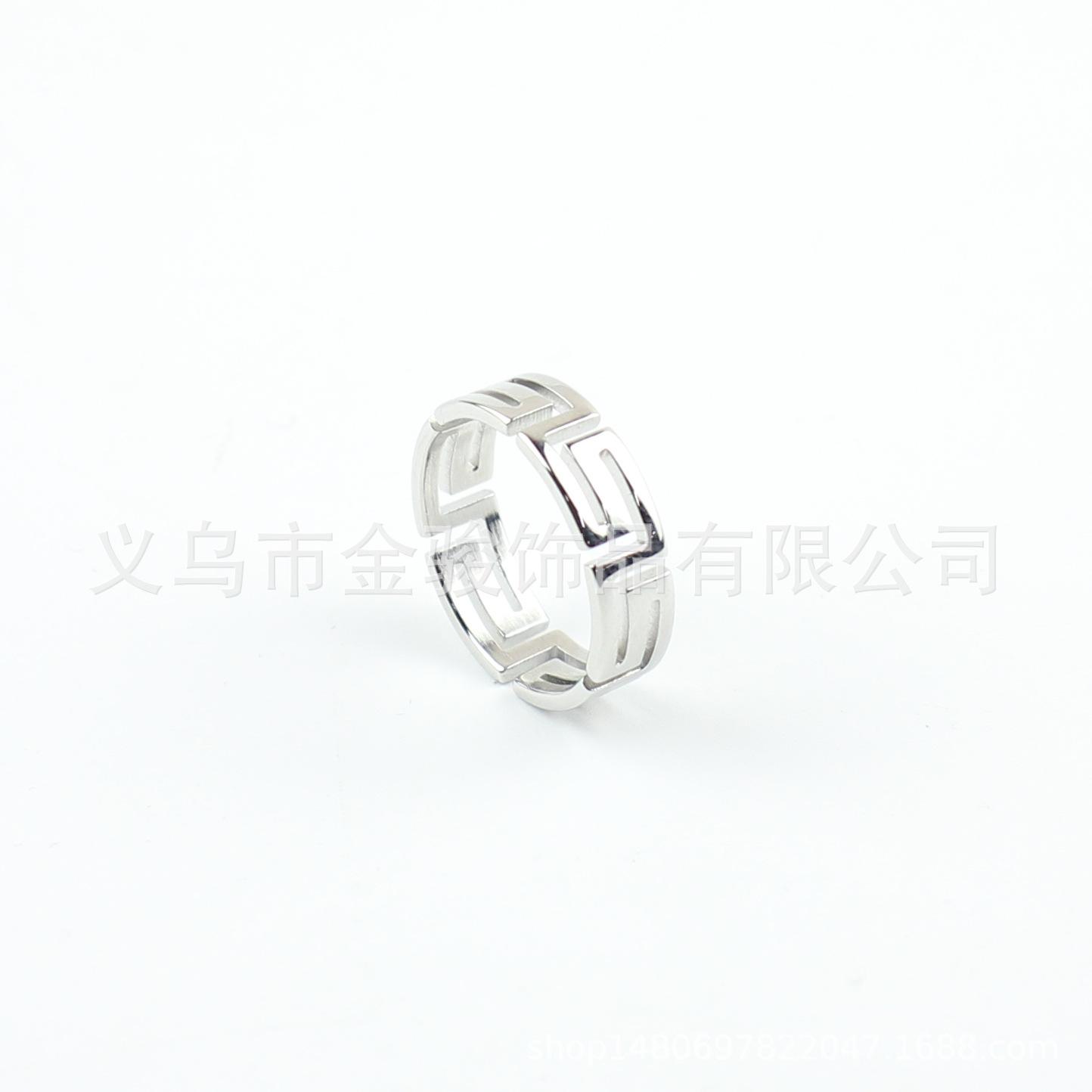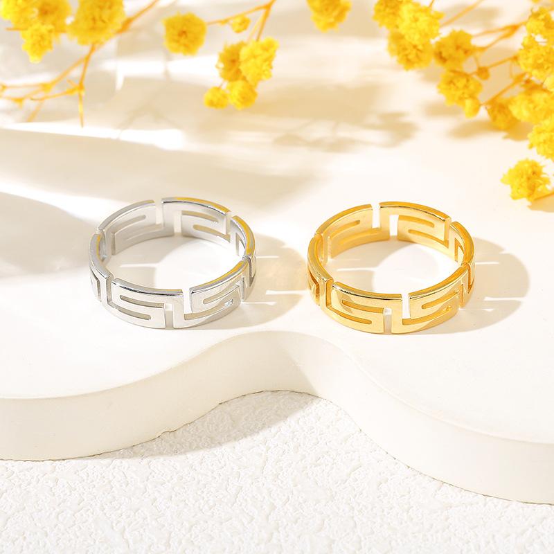 Anillo de Acero de Titanio con Corte Láser Frío Tide Patrón Gran Muralla Luz Lujo Nicho Acero Inoxidable Hueco Palindrómico