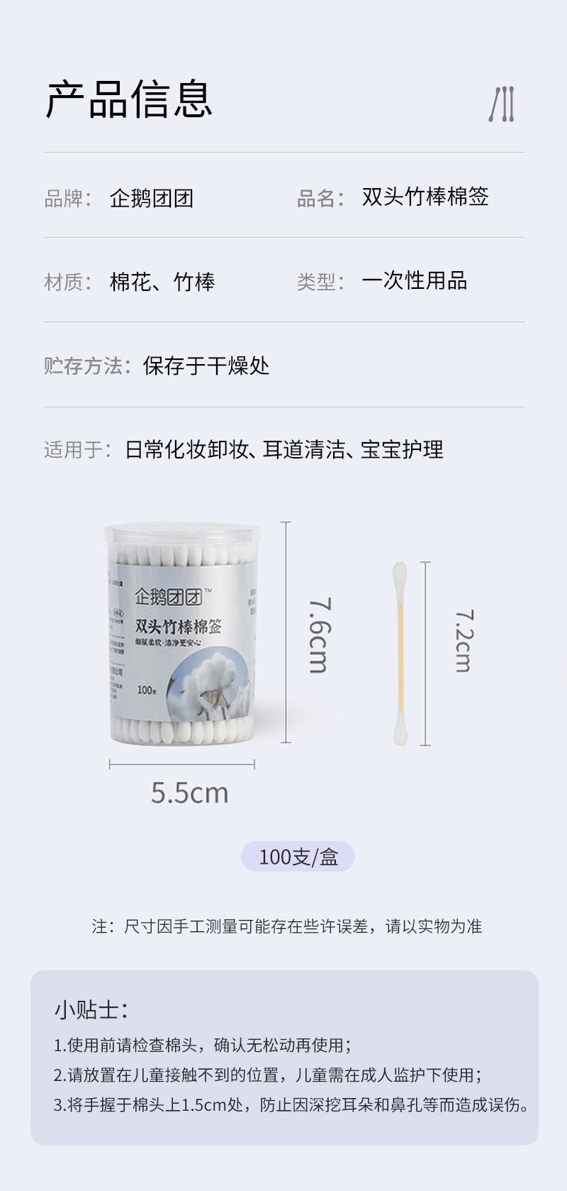 100/bag double-headed cotton swabs, 100 pcs/box of double-headed cotton swabs