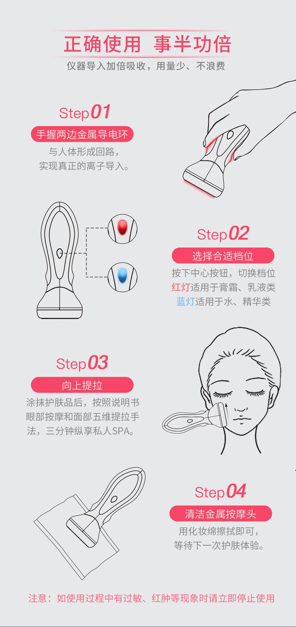 Respuesta: El instrumento se utiliza en conjunto con cosméticos para promover la absorción de los productos para el cuidado de la piel y potenciar sus efectos. ¡No se recomienda usarlo solo!