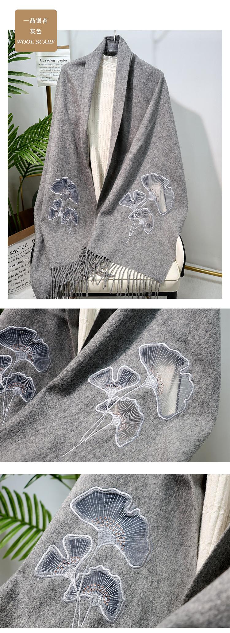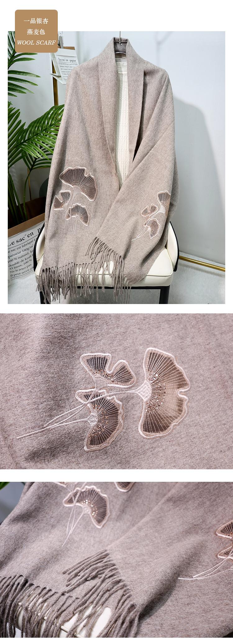 Bufanda de lana para mujer otoño e invierno 2024 con bordado pesado y bufanda cálida para personas mayores, madres, novias, chales exteriores, nuevos estilos