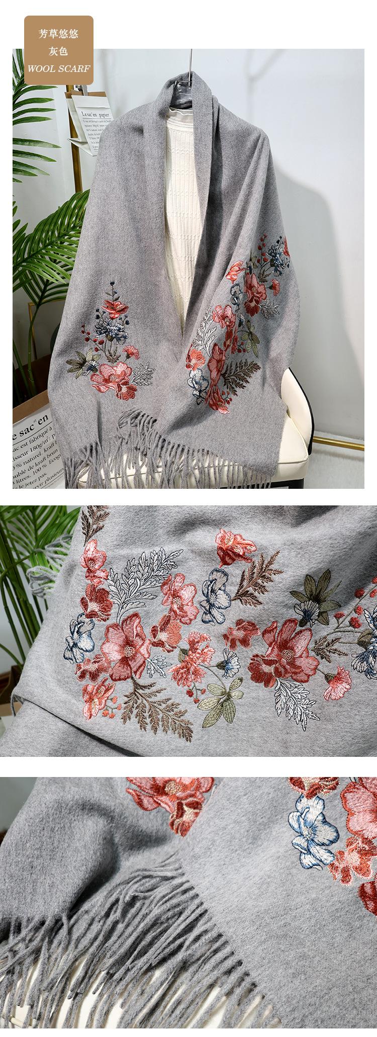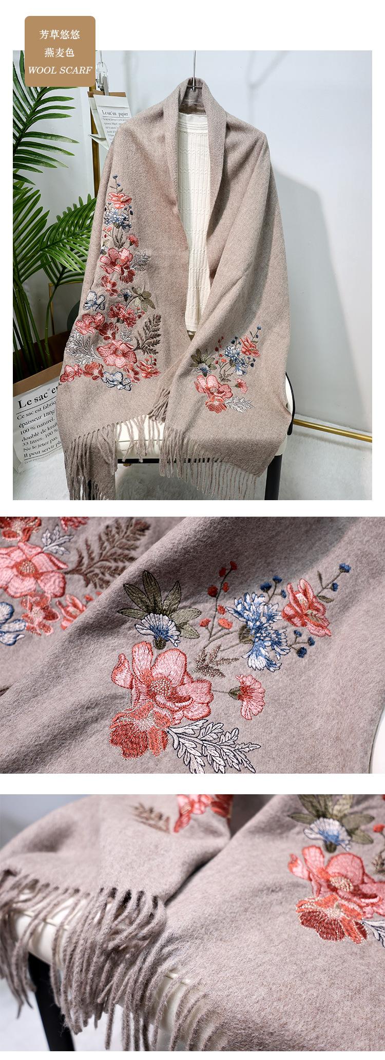 Bufanda nueva de otoño e invierno para mujer chal de lana de oveja bordado de flores bufanda larga gruesa y cálida para viaje exterior regalo