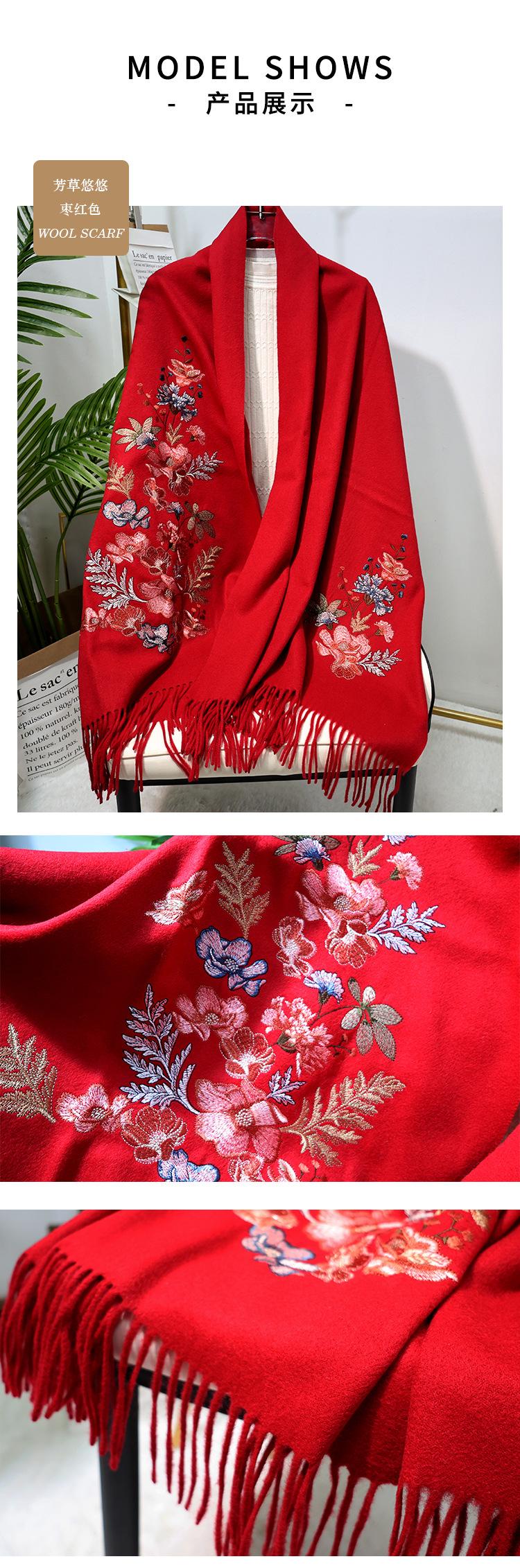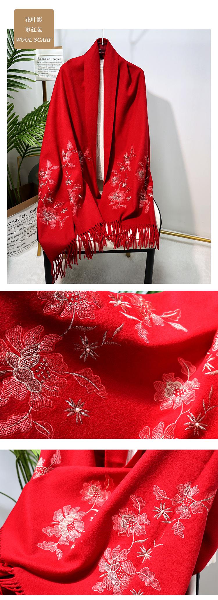 Una variedad de exquisitas bufandas de lana con borlas largas y flores bordadas, chal rojo de la abuela feliz, vestido cheongsam, ropa exterior, bufanda gruesa y cálida, Taobao Pinduo comercio electrónico, venta al por mayor caliente, se puede enviar una pieza