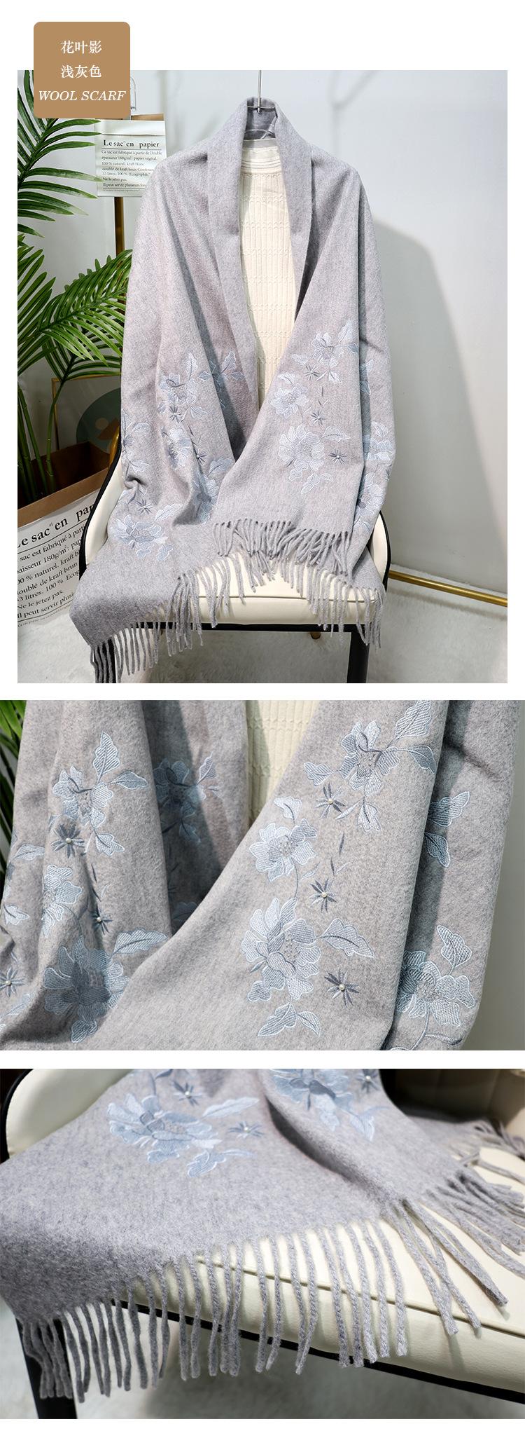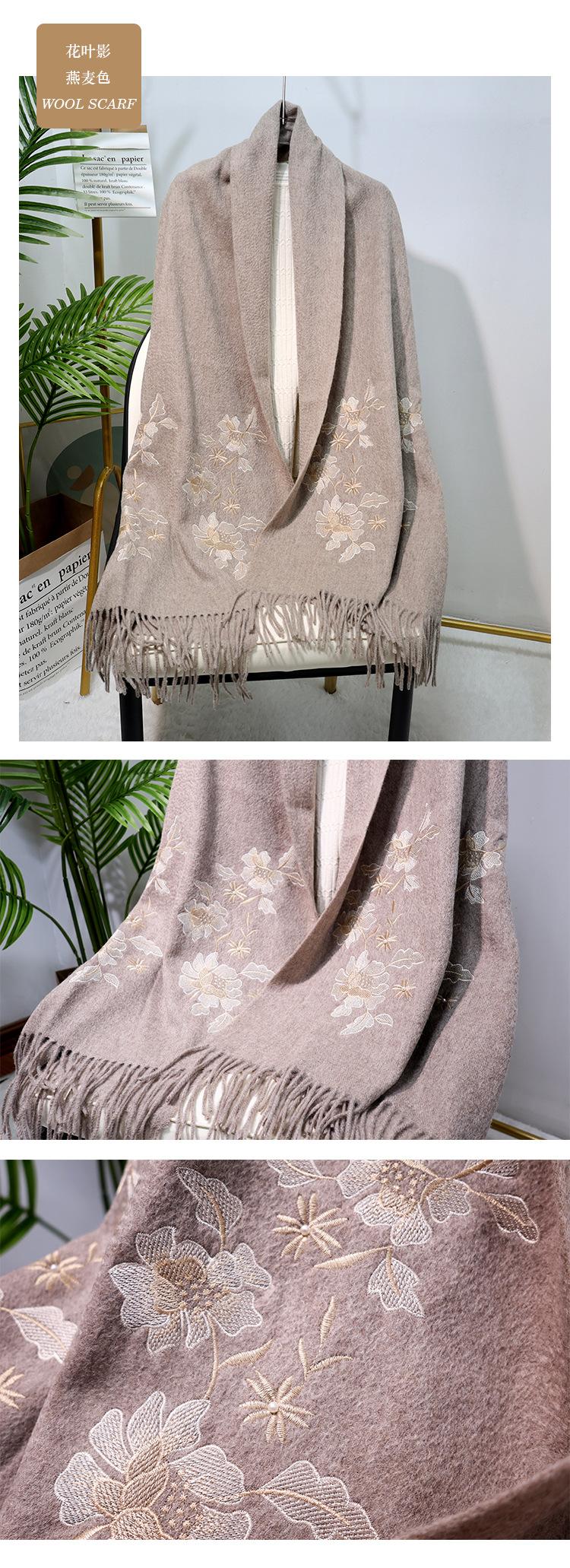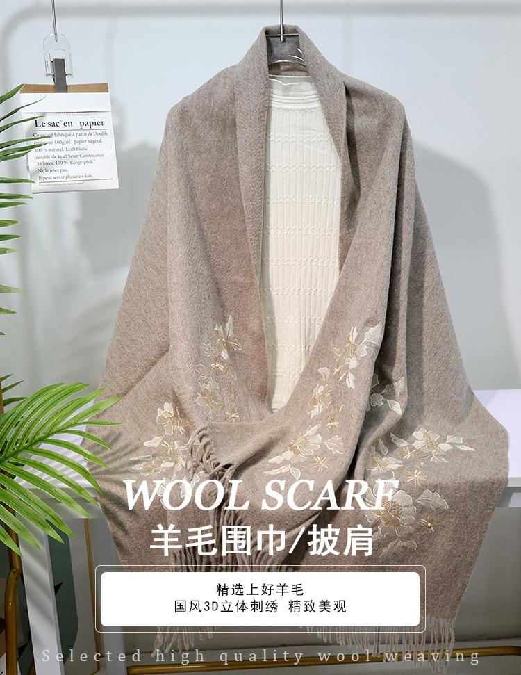 Bufanda de lana bordada de otoño e invierno para mujer, bordado estilo Su, combinable con todo, chal grueso y cálido para boda y vestido exterior de suegra