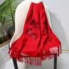 Bufanda de lana cálida bordada de tendencia nacional 2024 otoño e invierno nueva rojo chino regalo para que la usen los mayores bufanda con borlas al por mayor